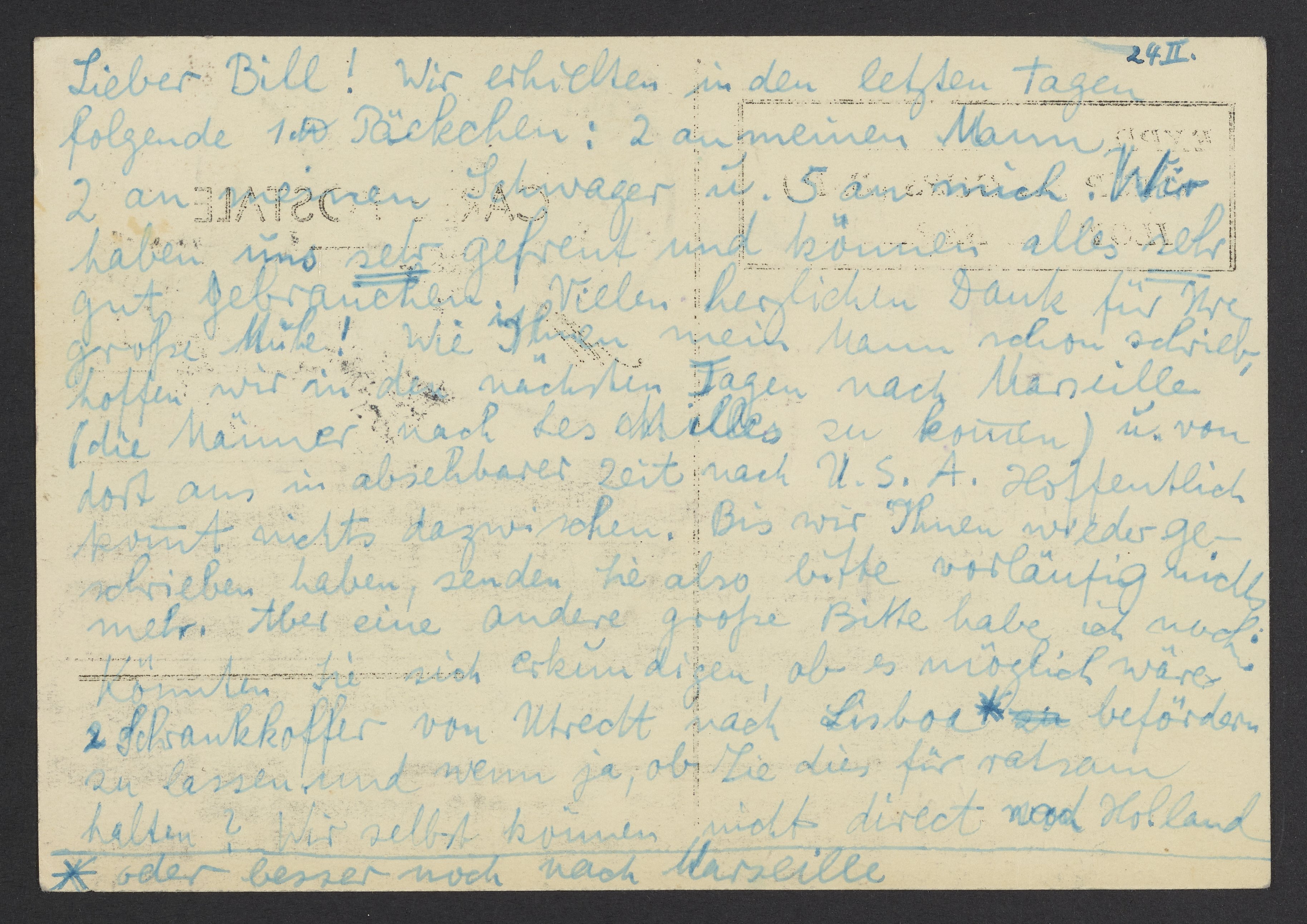 Postcard from Marianne Homburger to Bill Fuchs, February 24, 1941