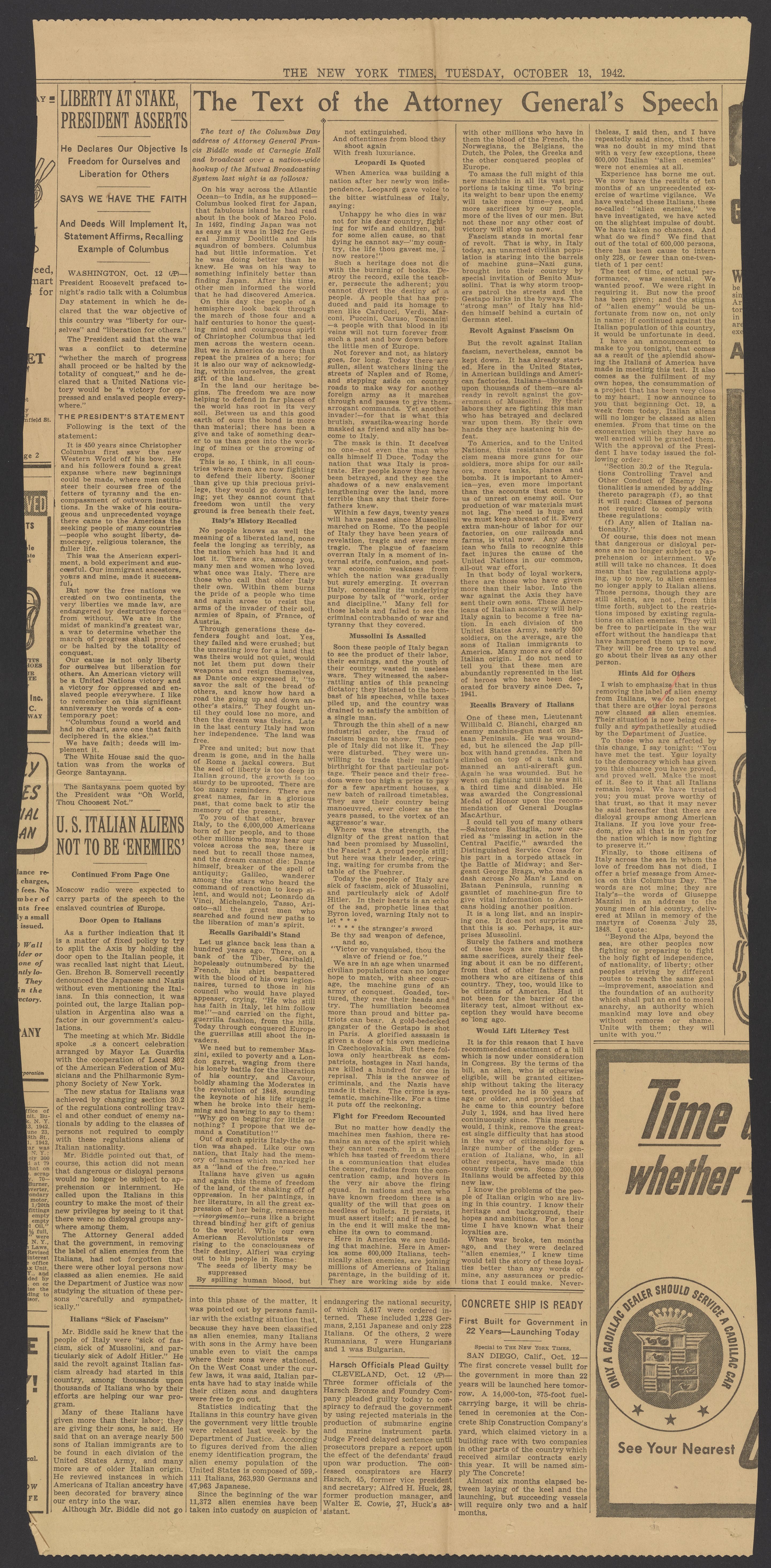 The Text of the Attorney General's Speech