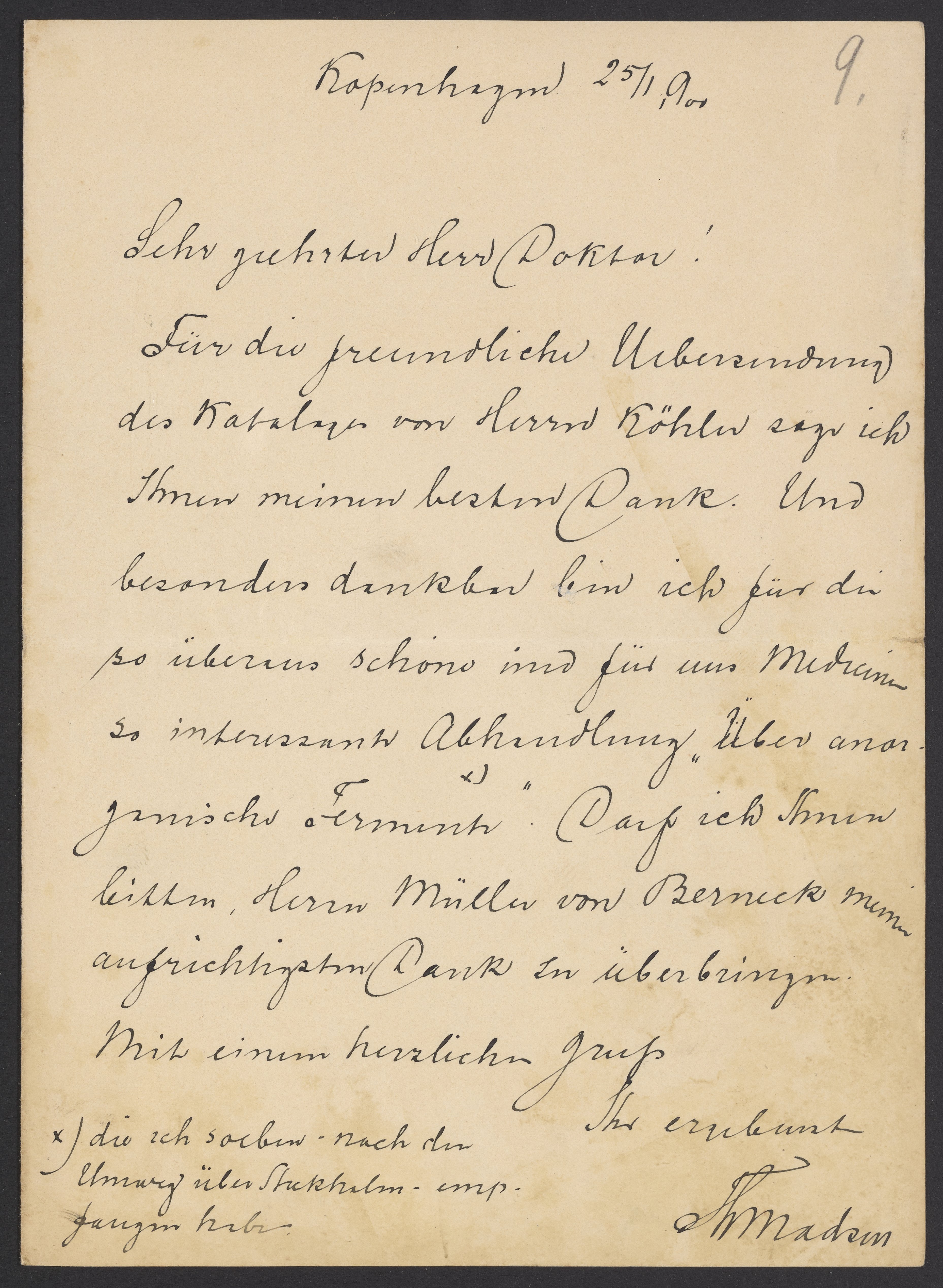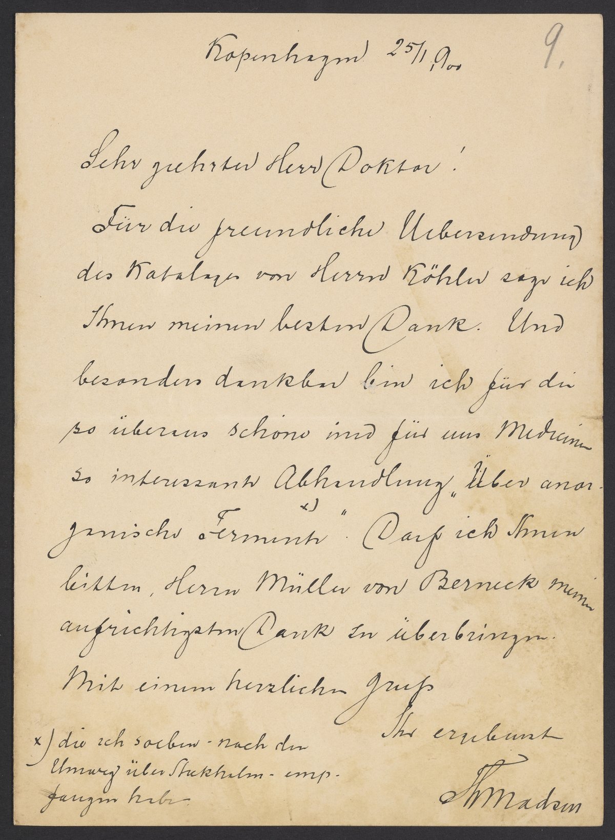 Letter from Thorvald Madsen to Georg Bredig, January 1900