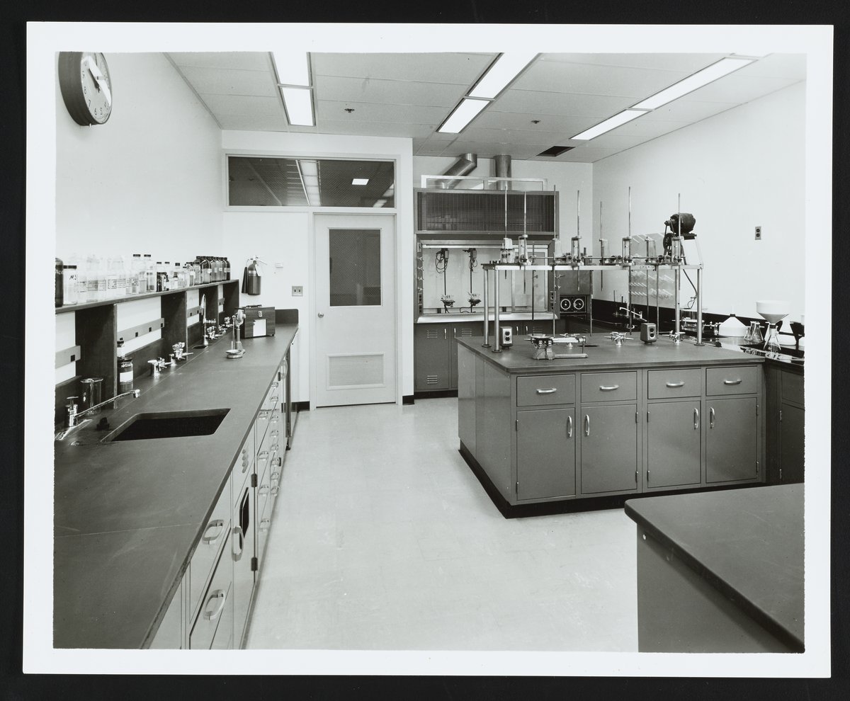 “Laboratory No. 4 at the Crompton & Knowles Research Center,” 1966. Photographs from the Records of the Althouse, Bates, and Crompton Chemical Companies, Box 1. Science History Institute. Philadelphia. https://digital.sciencehistory.org/works/nk322d33s.
