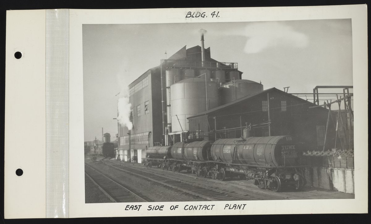 Rohm and Haas Company. “East Side of Sulphuric Acid Contact Plant.” Exterior Views of Charles Lennig and Company Plant in Bridesburg, 1931. Rohm & Haas Company Archives, Box 27 (Photographs), Folder 8. Science History Institute. Philadelphia. https://digital.sciencehistory.org/works/nk322f14s.