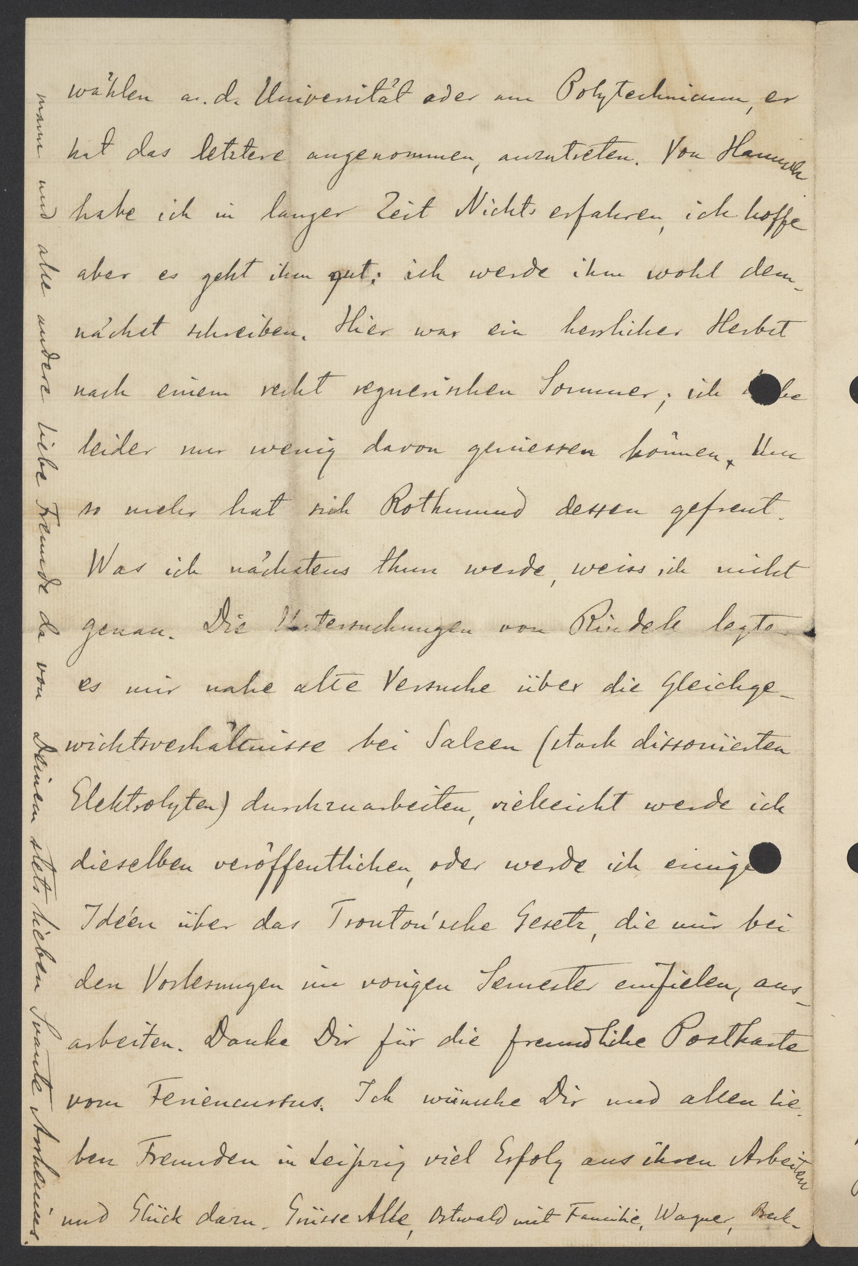 Letter from Svante Arrhenius to Georg Bredig, September 1898
