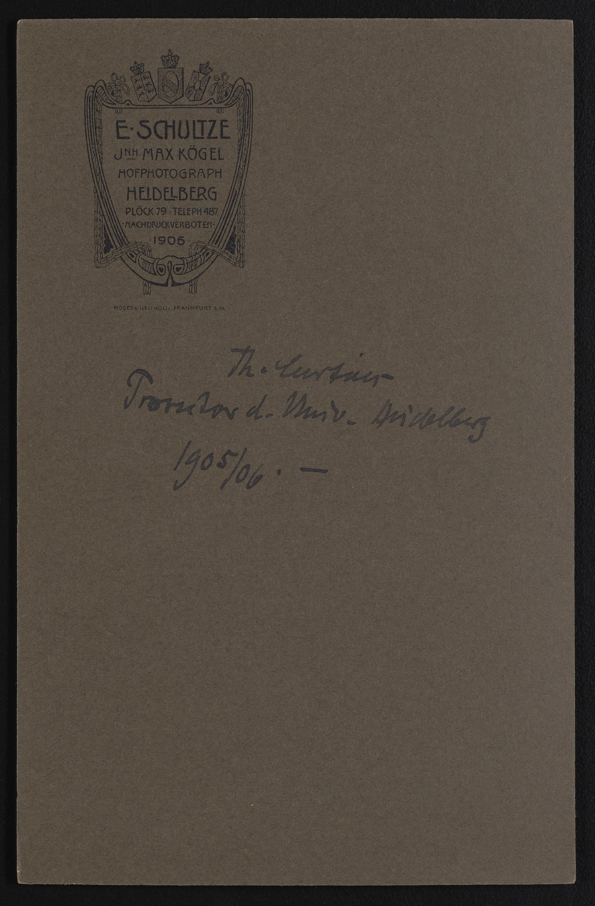 Small JPG1200 x 1823px — 238 KBFull-sized JPG2844 x 4321px — 1.3 MBOriginal fileTIFF — 2844 x 4321px — 35.2 MBPortrait of Theodor Curtius (1857-1928) dressed in academic regalia taken at E. Schultze photography studio.