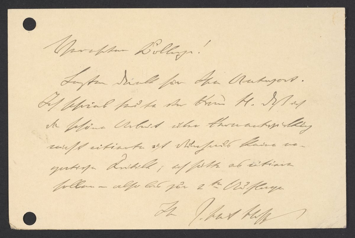 Hoff, J. H. van 't (Jacobus Henricus). “Postcard from Jacobus H. Van 't Hoff to Georg Bredig, October 1902,” October 28, 1902. Papers of Georg and Max Bredig, Box 2, Folder 1. Science History Institute. Philadelphia. https://digital.sciencehistory.org/works/nv0hn7l.