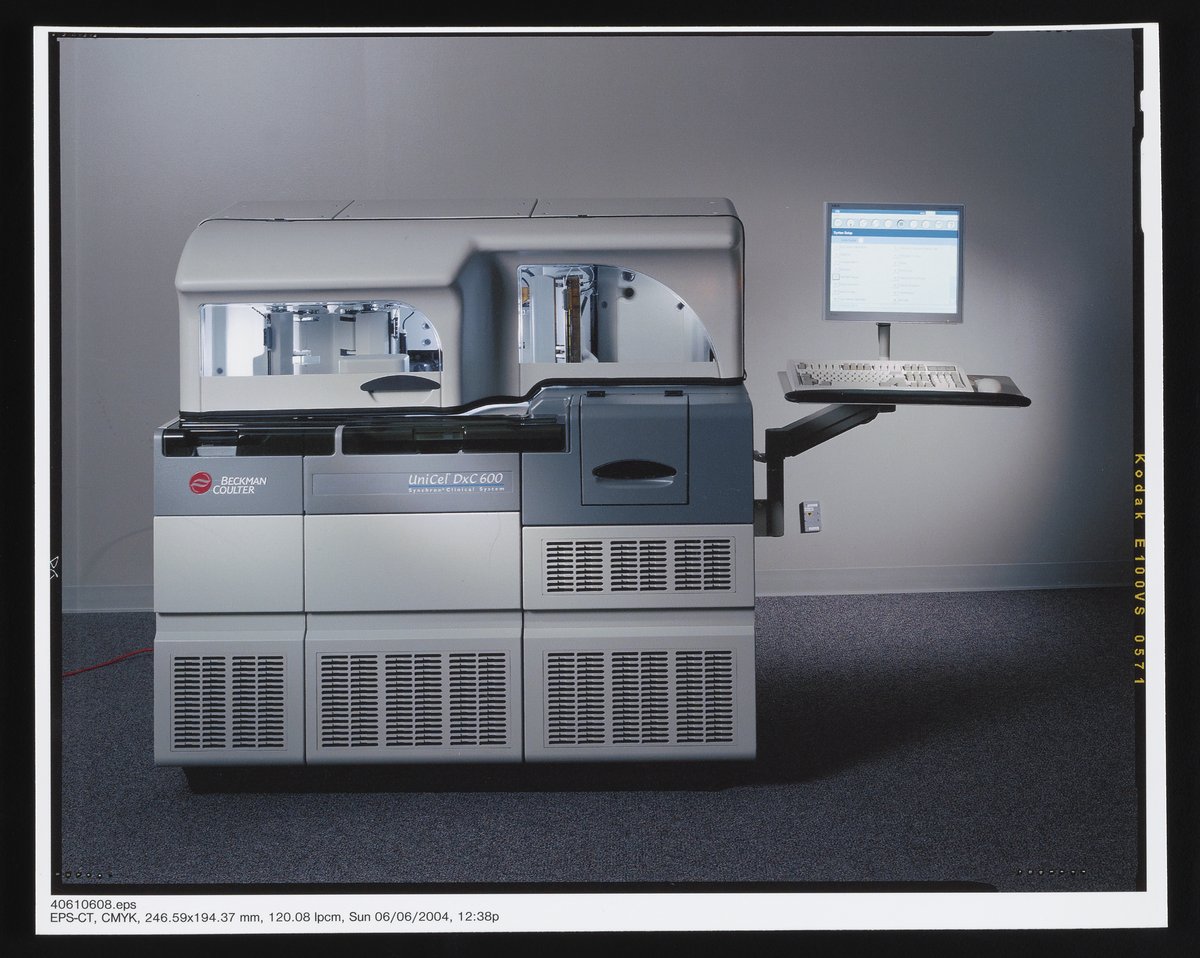“UniCel DxC 600 Synchron Clinical System,” 2000–2009. Beckman Historical Collection, Box 78. Science History Institute. Philadelphia. https://digital.sciencehistory.org/works/nv9352948.
