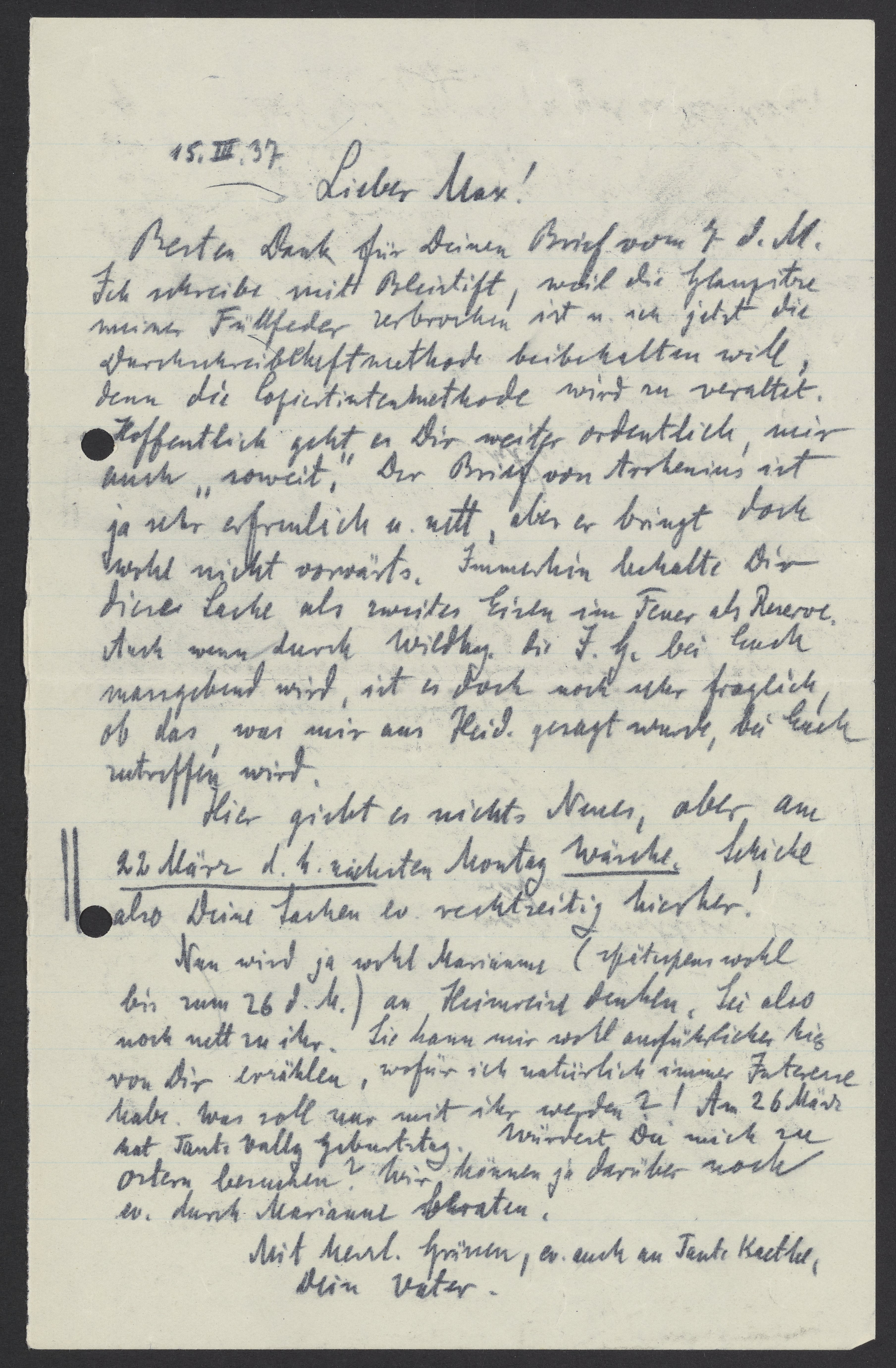 Letter from Georg Bredig to Max Bredig, March 15, 1937