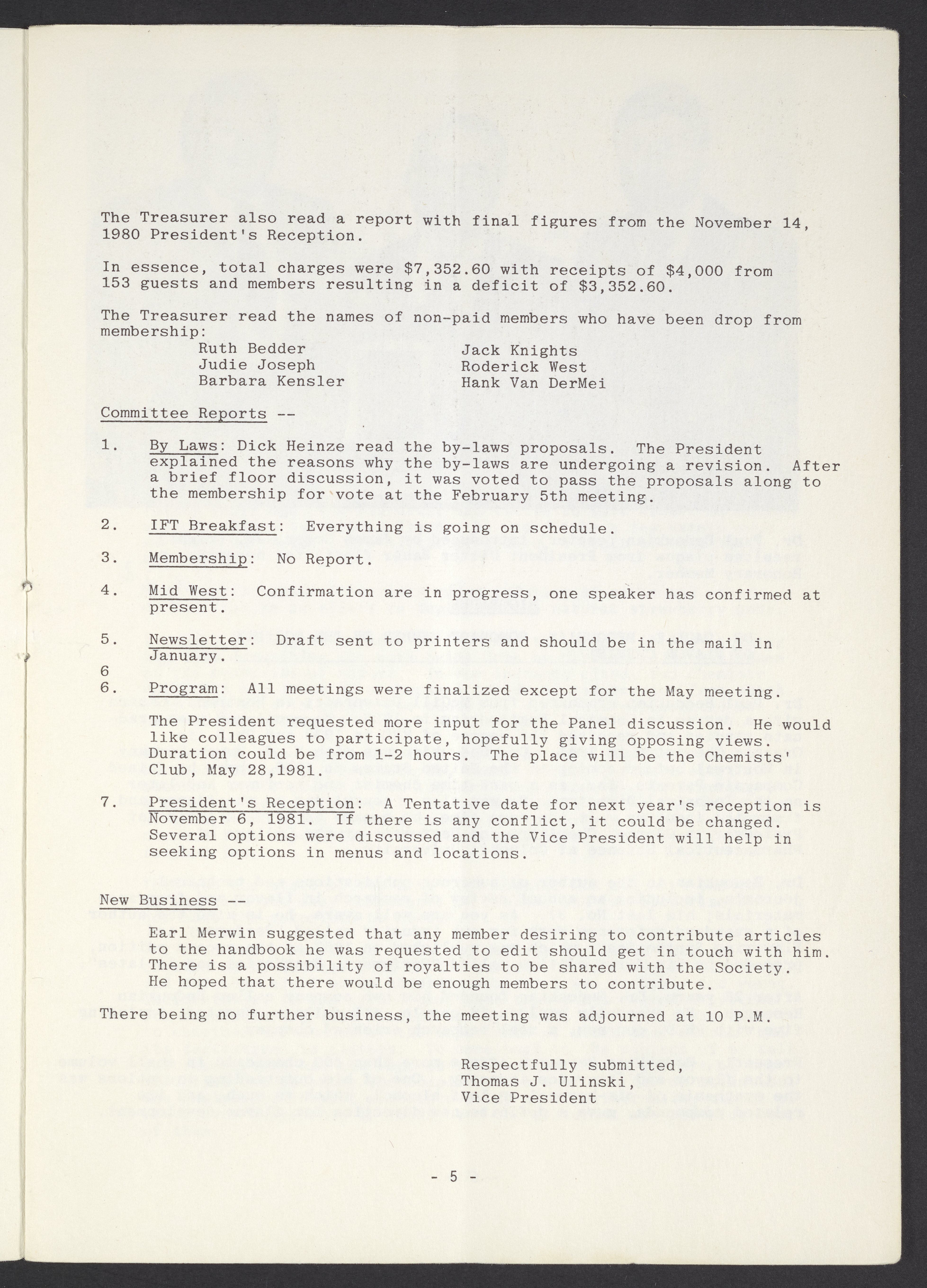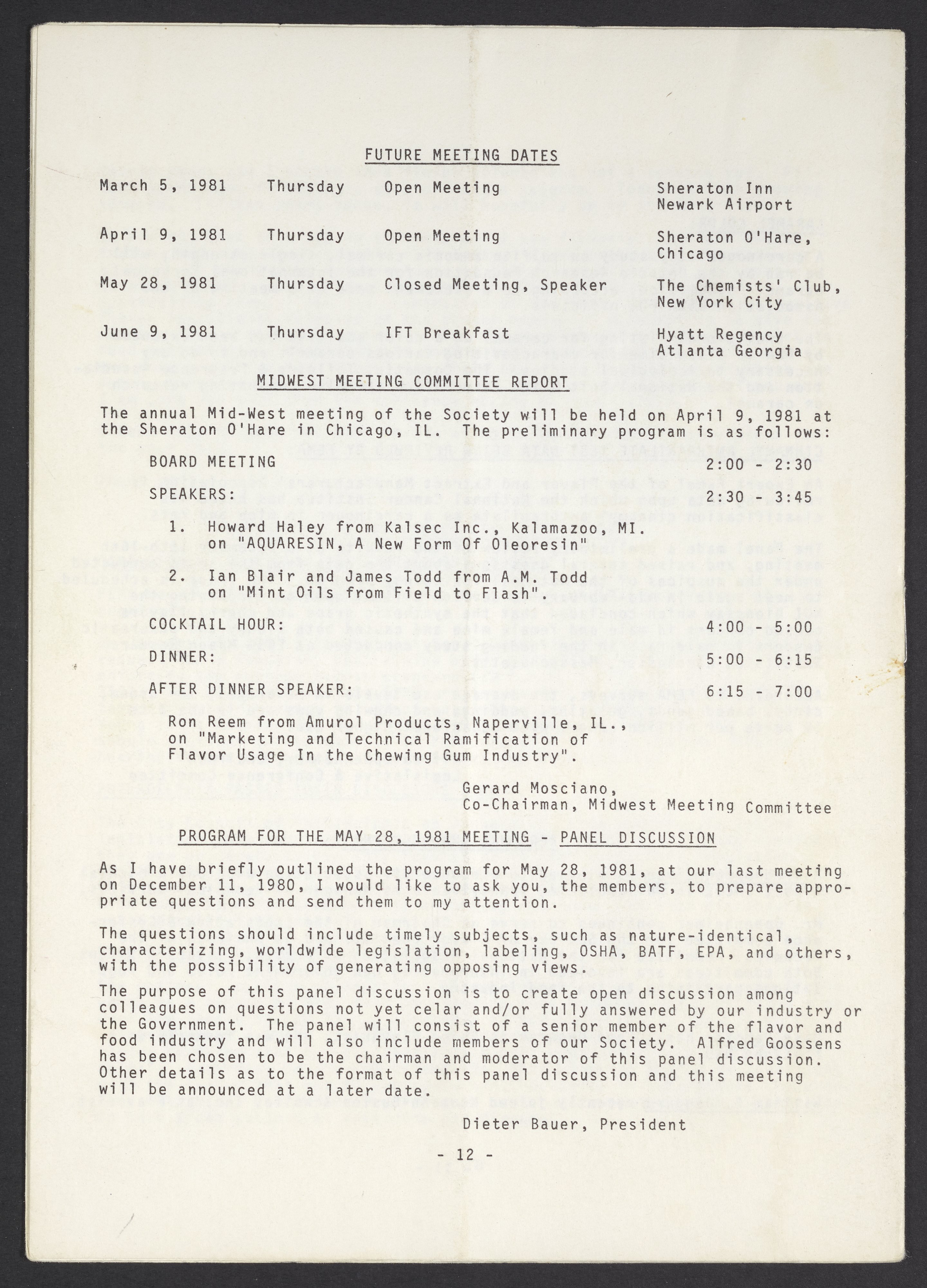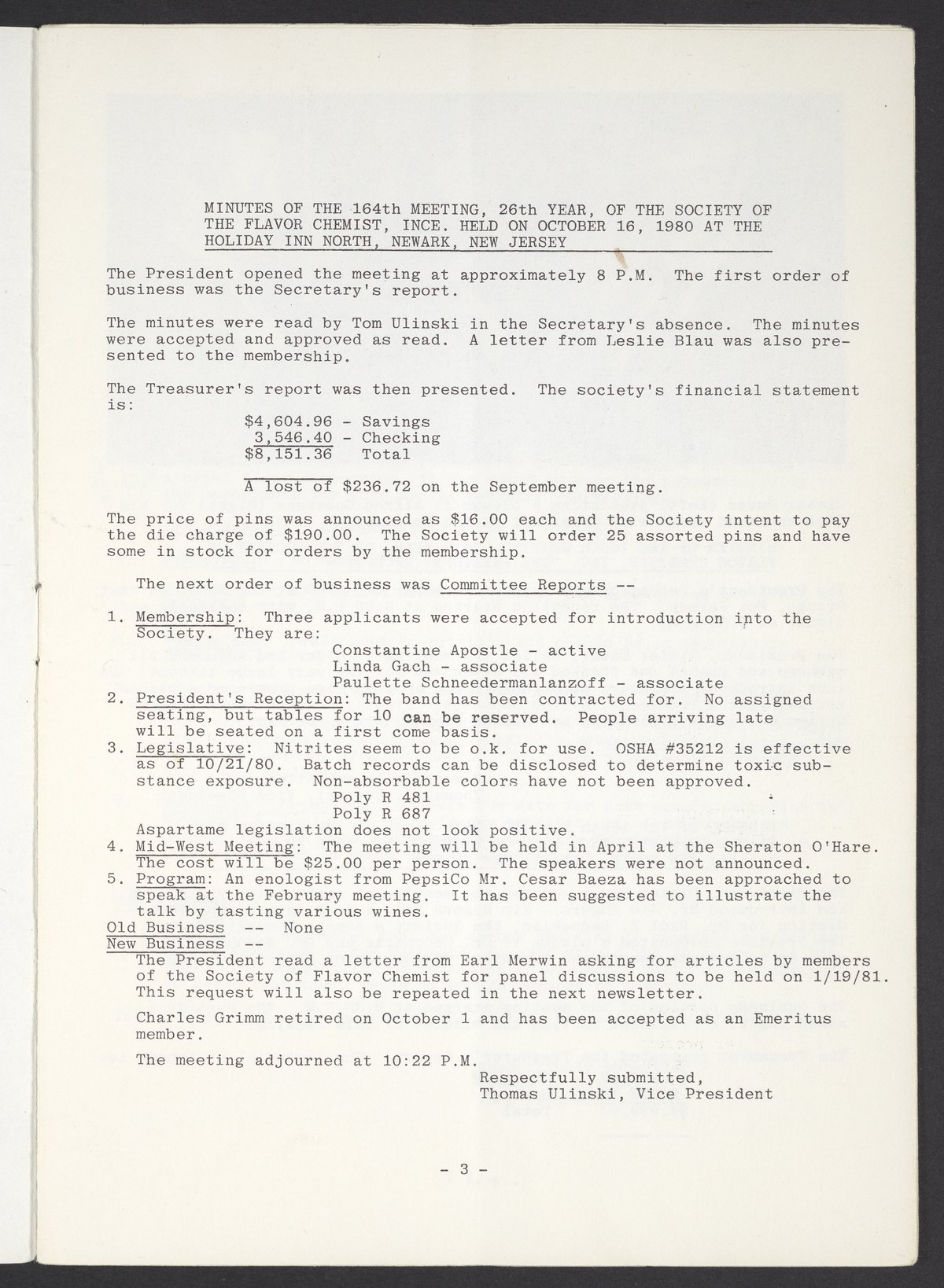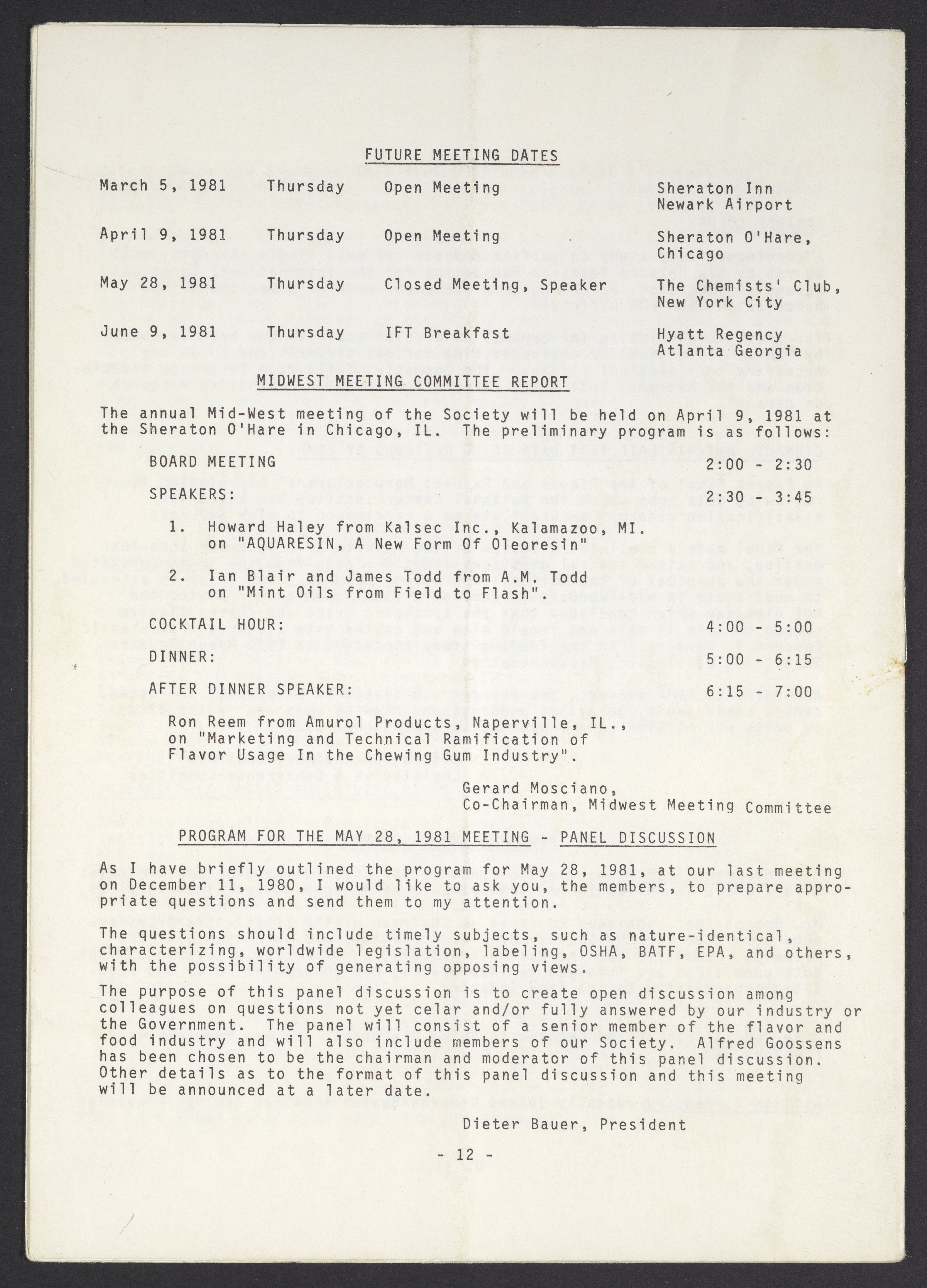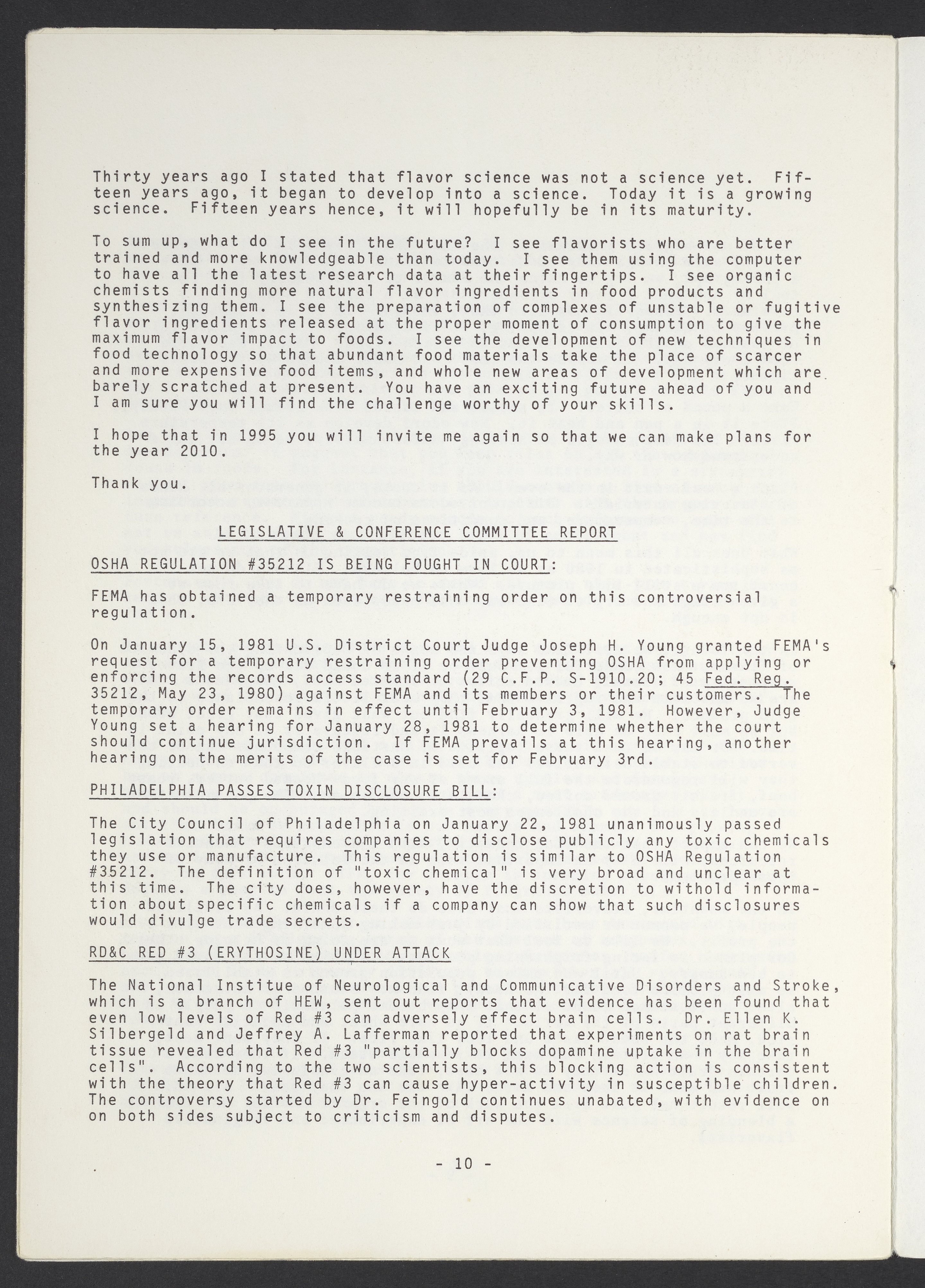 Society of Flavor Chemists. “Society of Flavor Chemists Newsletter, February 1981,” February 2, 1981. Society of Flavor Chemists Newsletters and Certificate of Incorporation, Box 1, Folder 1. Science History Institute. Philadelphia. https://digital.sciencehistory.org/works/o4z8ync.