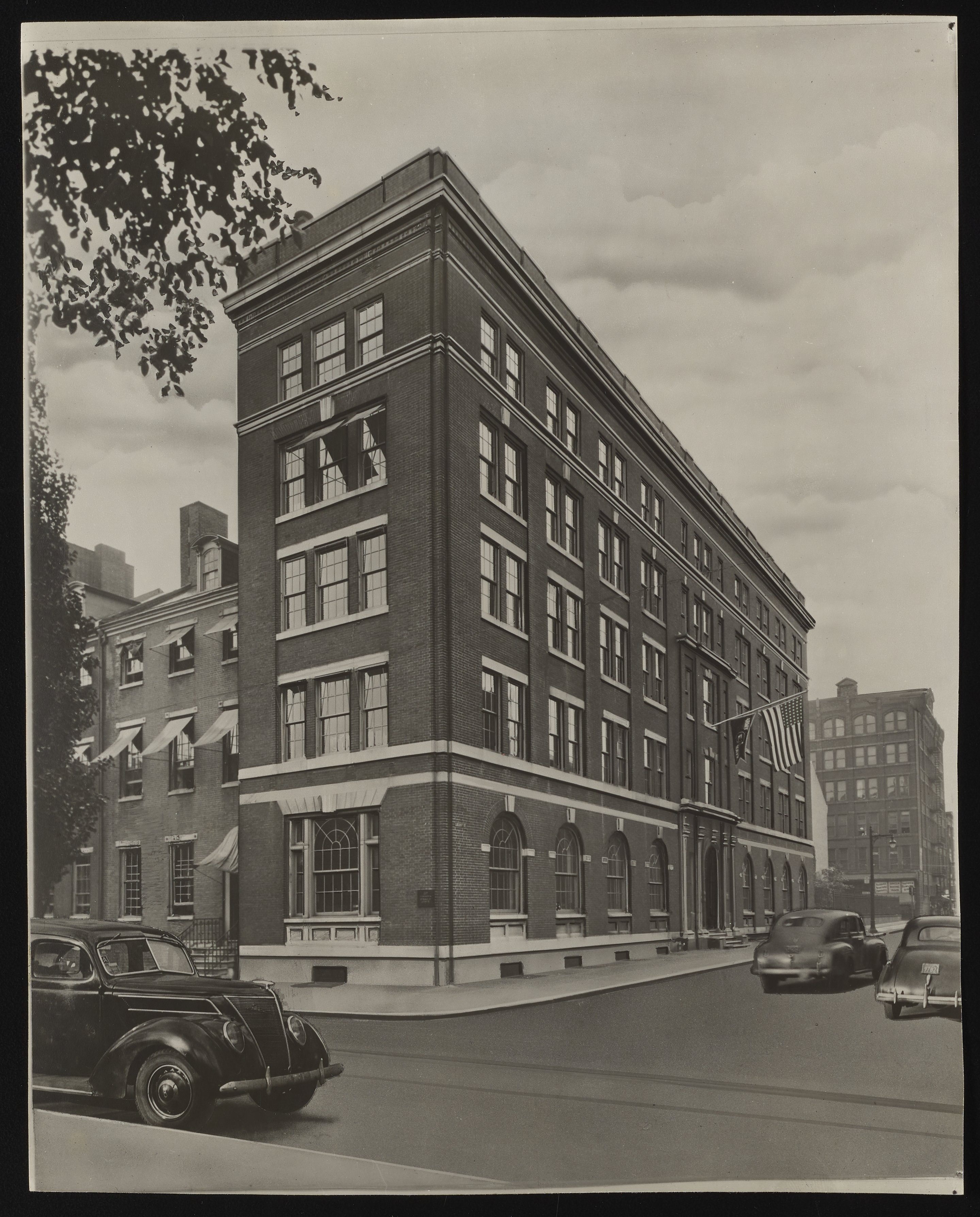 Rohm and Haas Company. “Exterior View of Rohm and Haas Home Office,” n.d. Rohm & Haas Company Archives, Box Photos 2, Folder 1. Science History Institute. Philadelphia. https://digital.sciencehistory.org/works/o6bpoew.