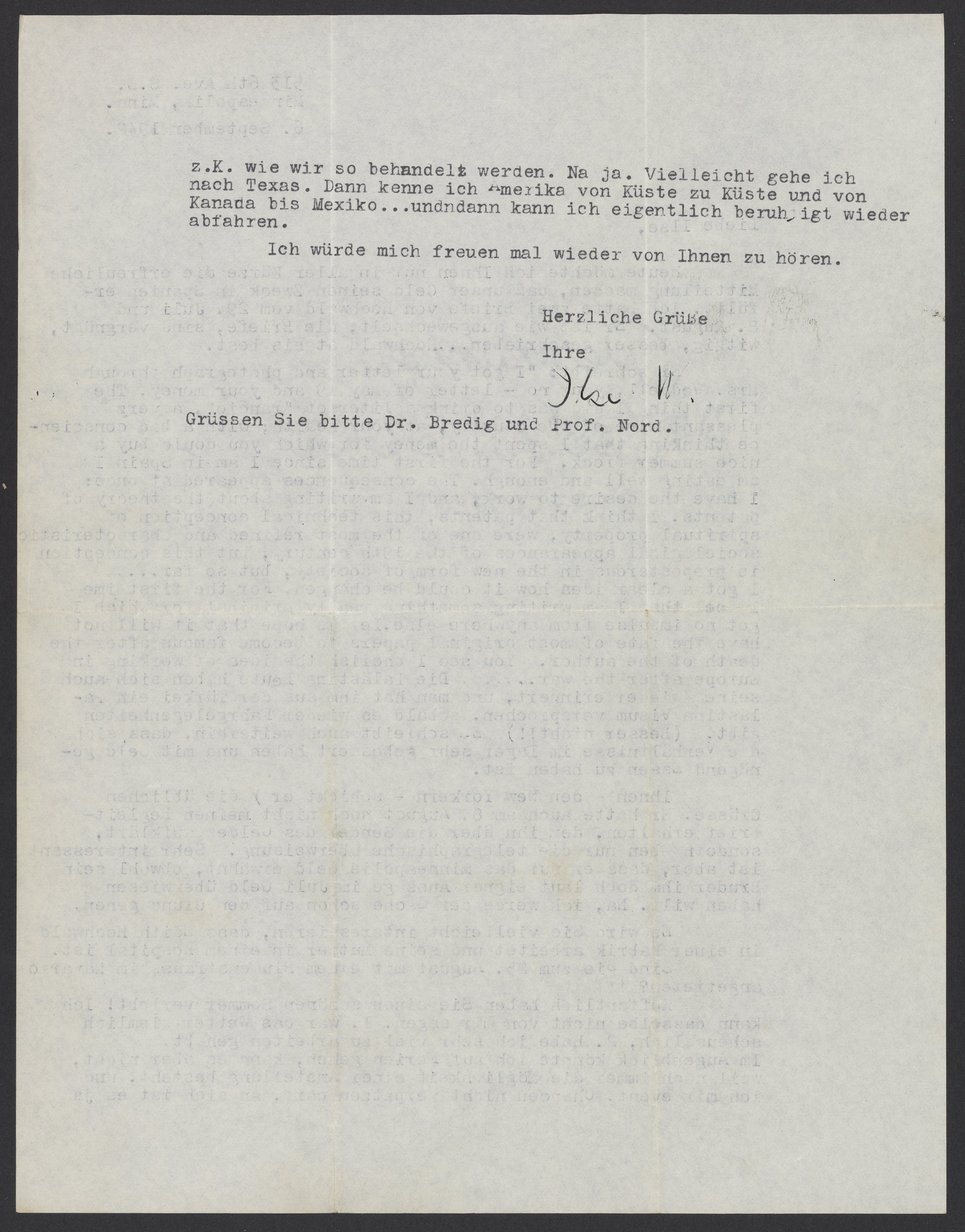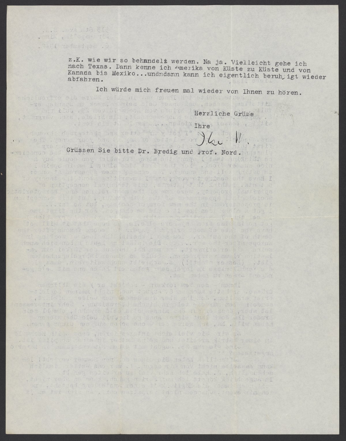 Grüssen Sie bitte Dr. Bredig und Prof. Nord.