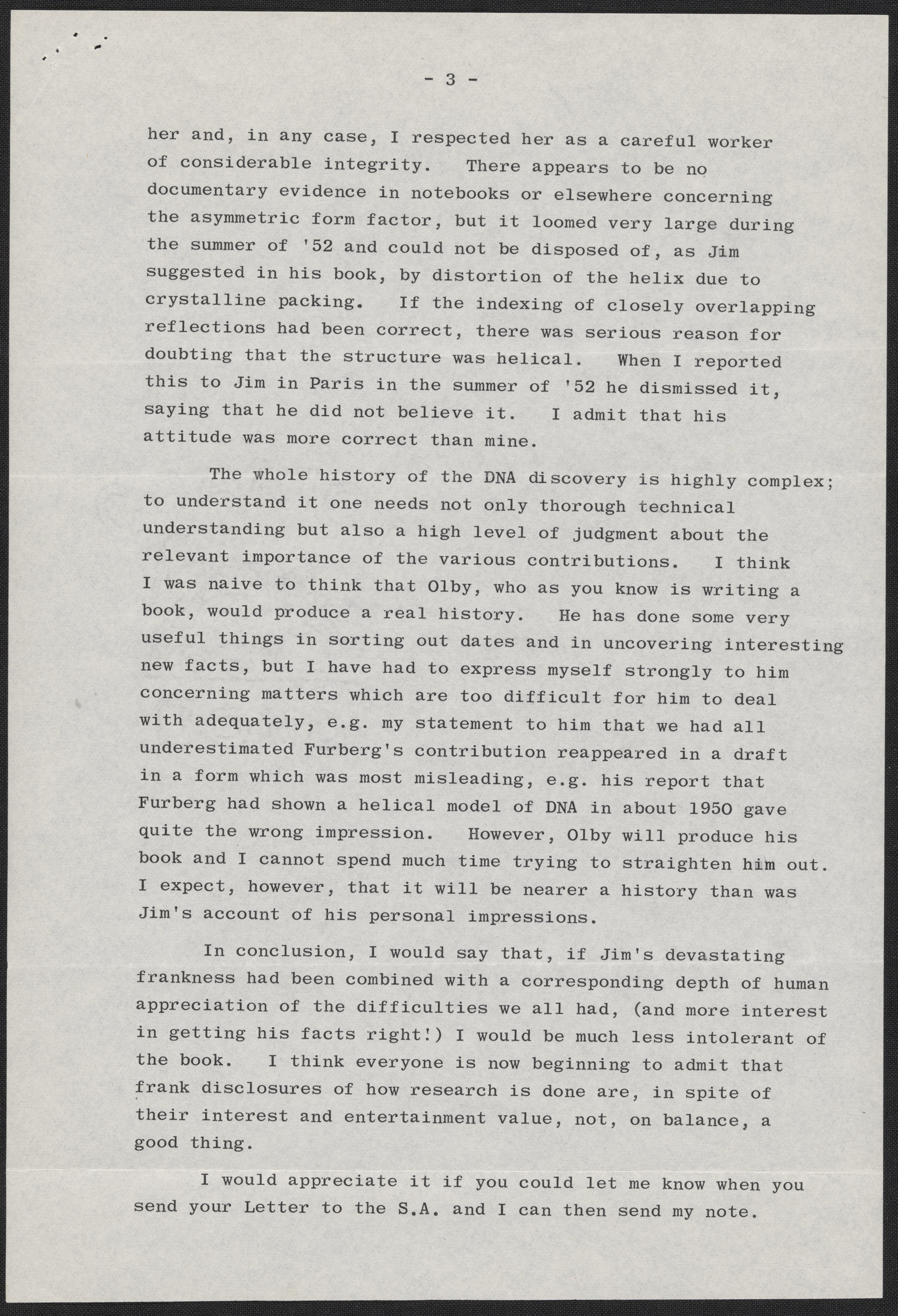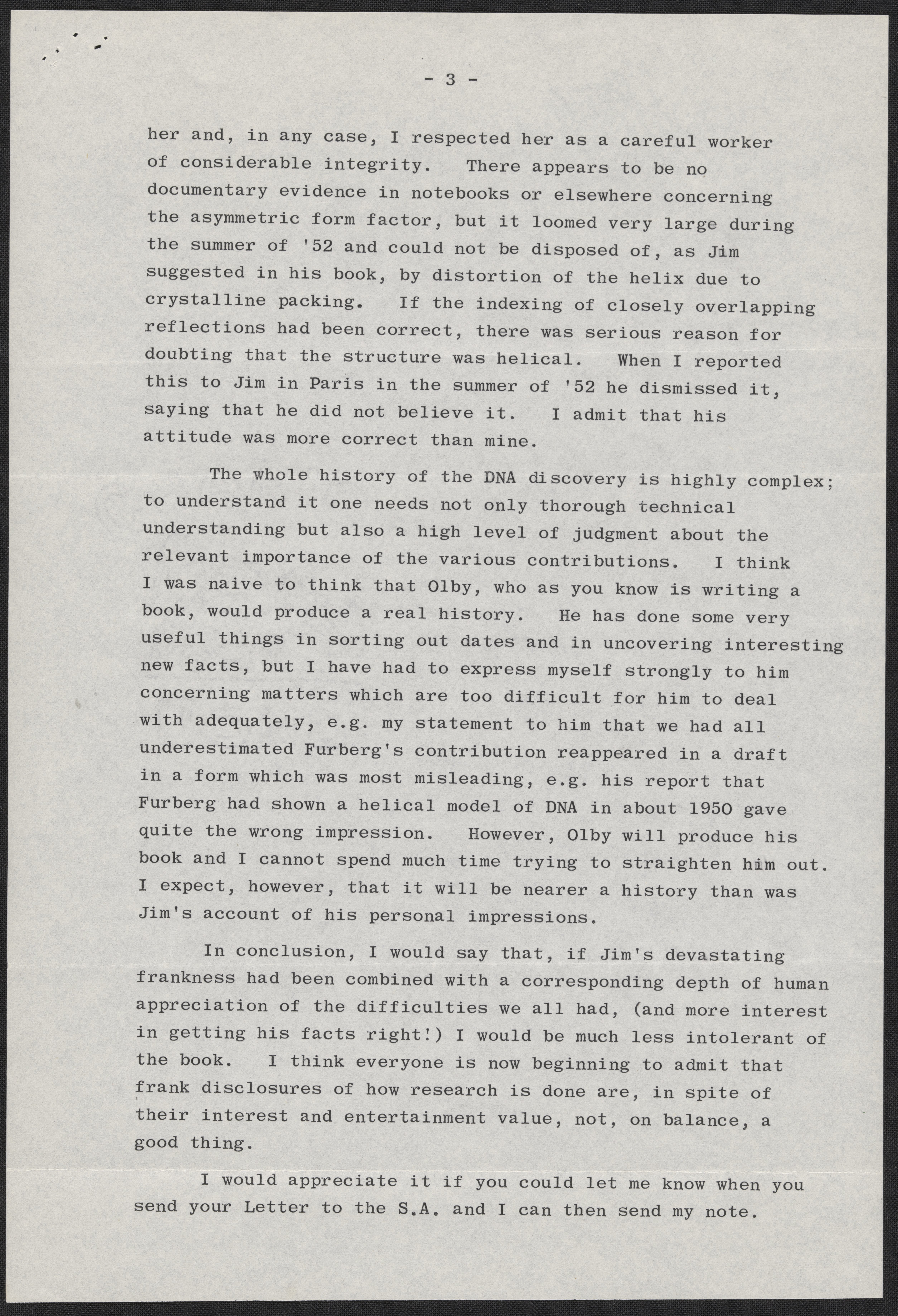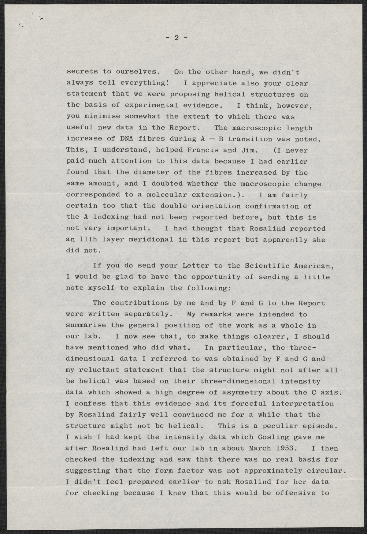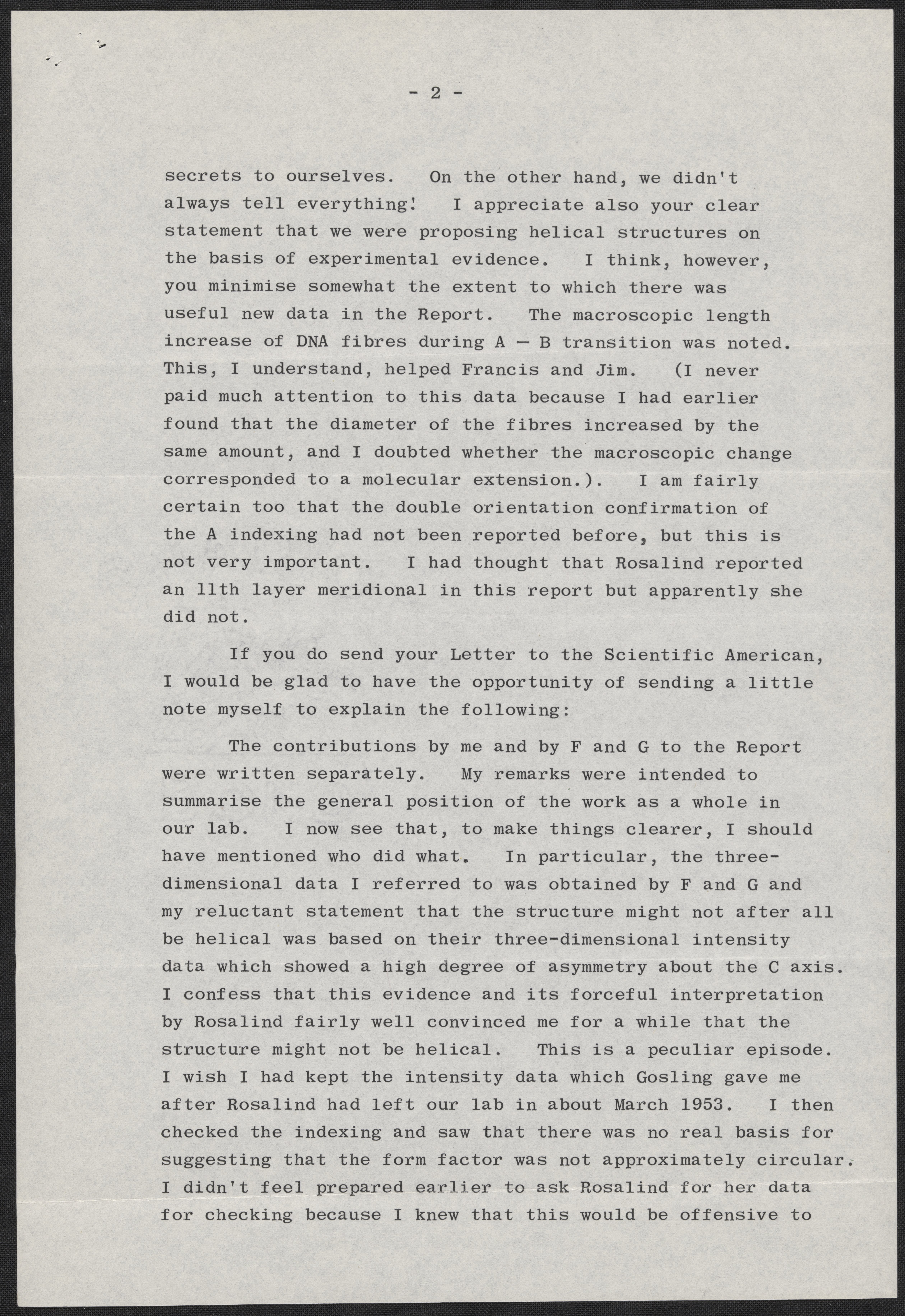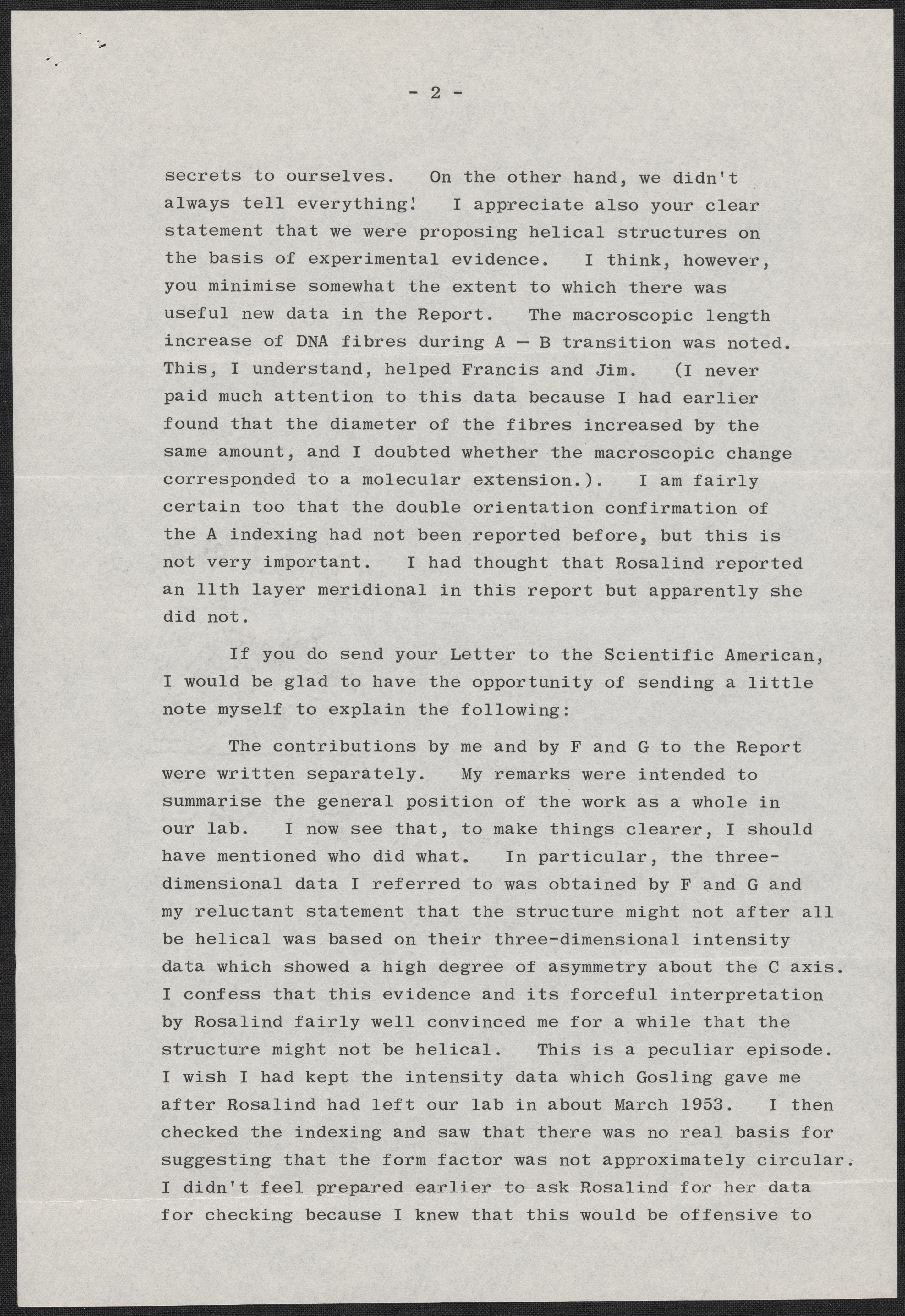 Letter from Maurice Wilkins to Max Perutz, December 20, 1968