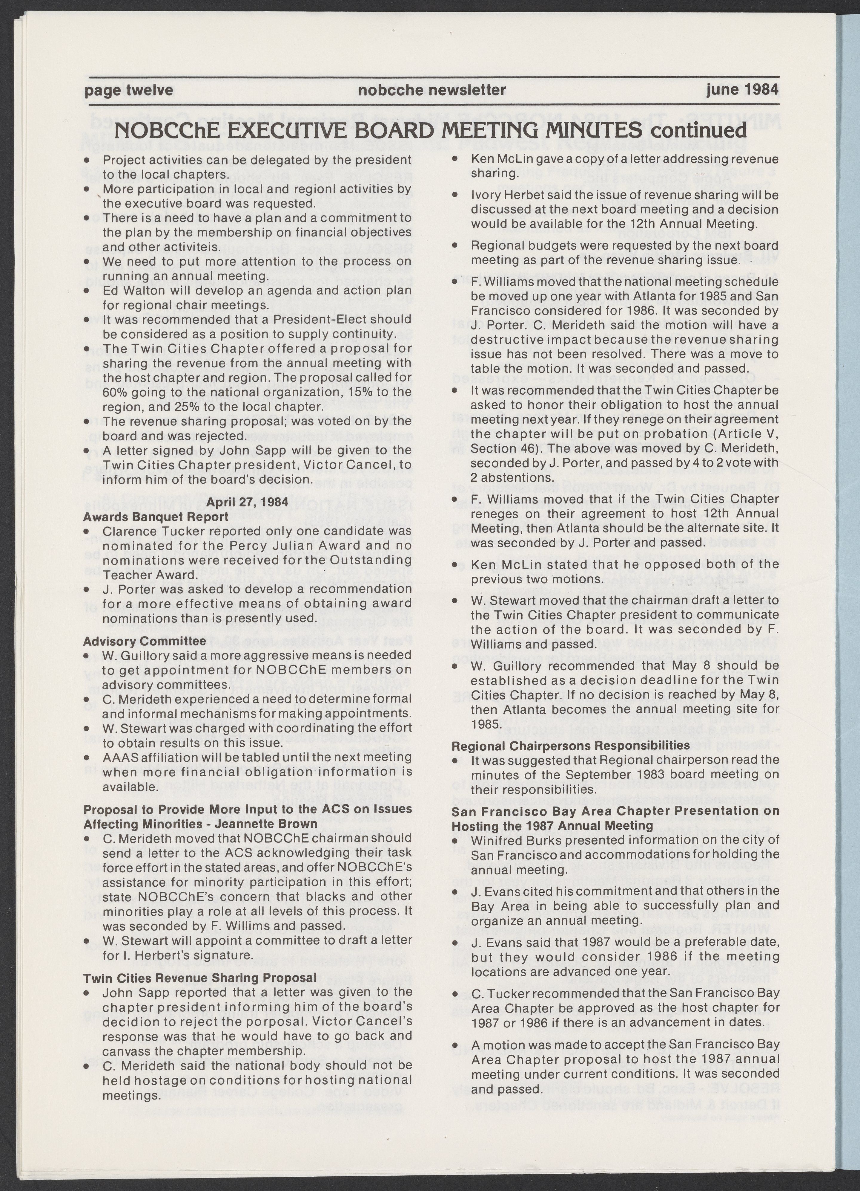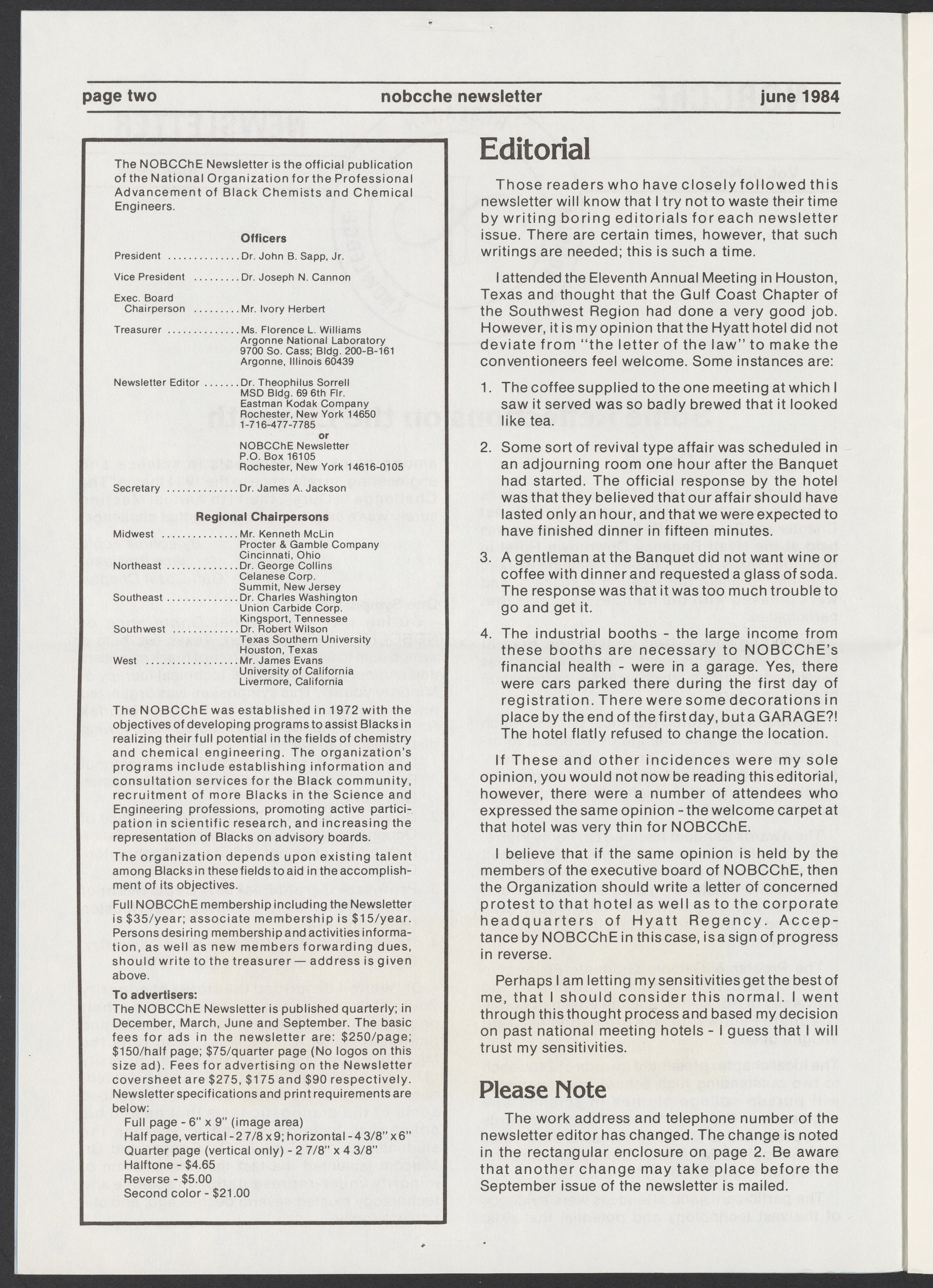 Small JPG1200 x 1685px — 177 KBLarge JPG2880 x 4043px — 1.3 MBFull-sized JPG4462 x 6264px — 3.3 MBOriginal fileTIFF — 4462 x 6264px — 80.0 MBJune 1984 issue of the National Organization for the Professional Advancement of Black Chemists and Chemical Engineers (NOBCChE) Newsletter.