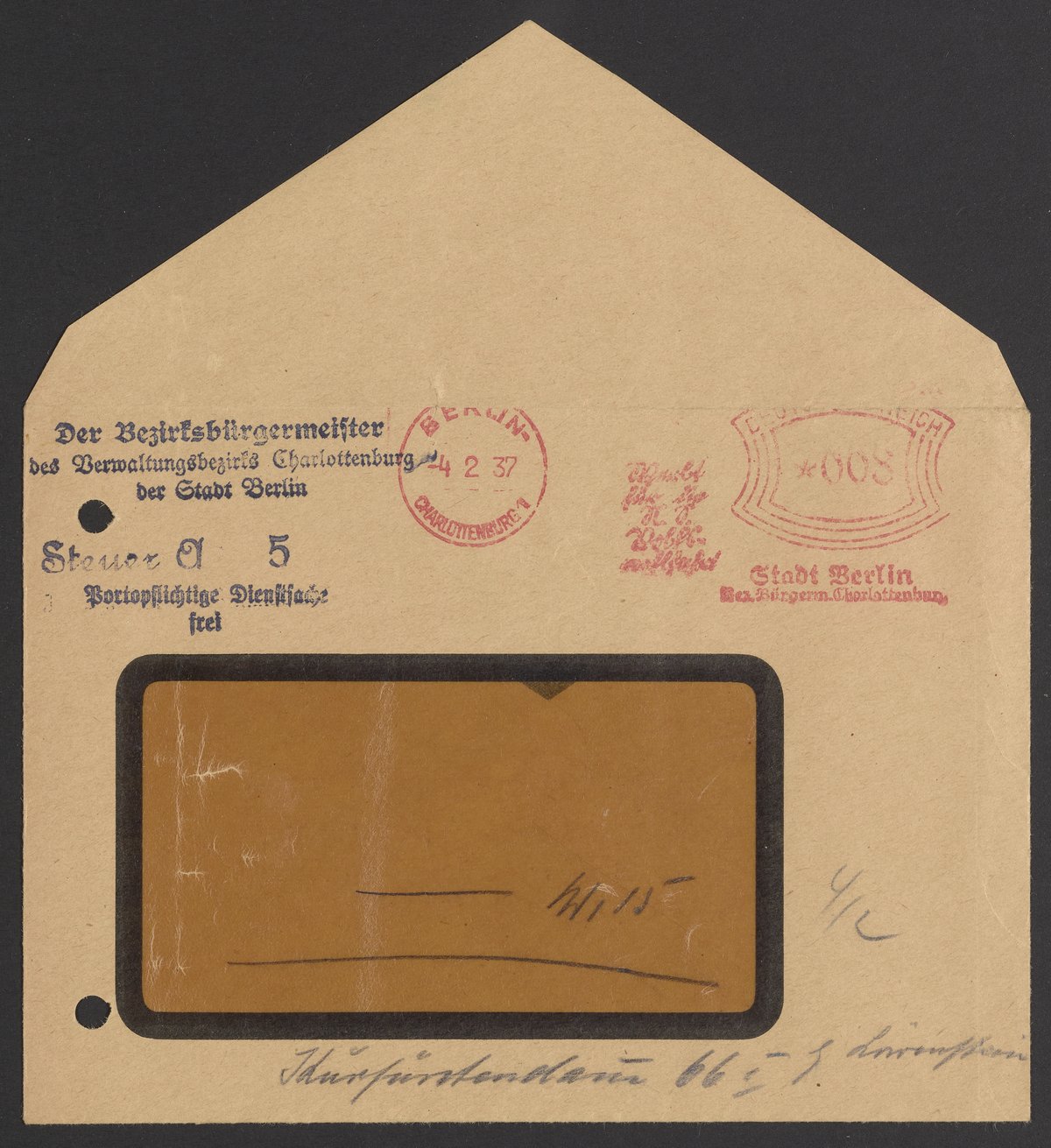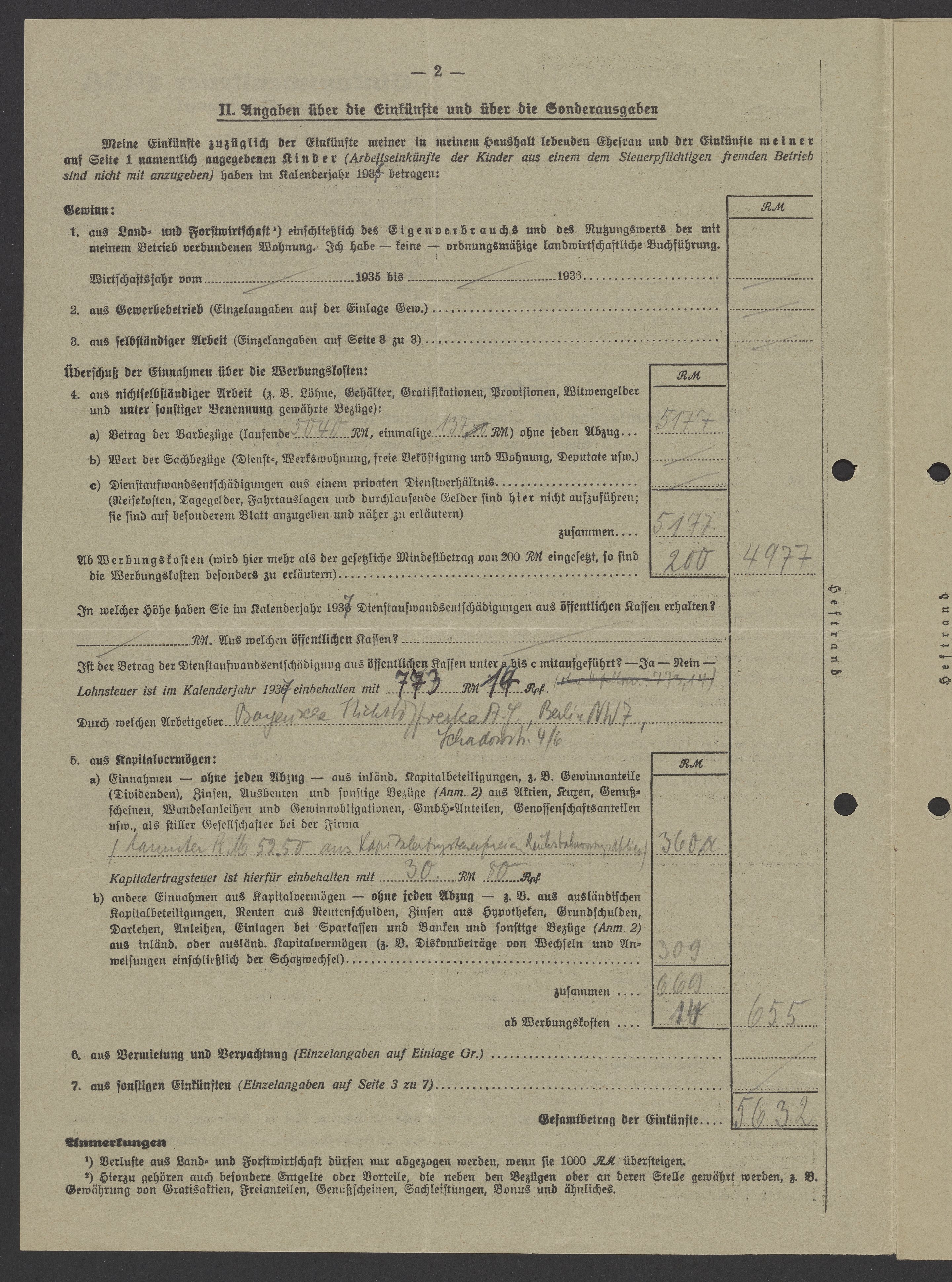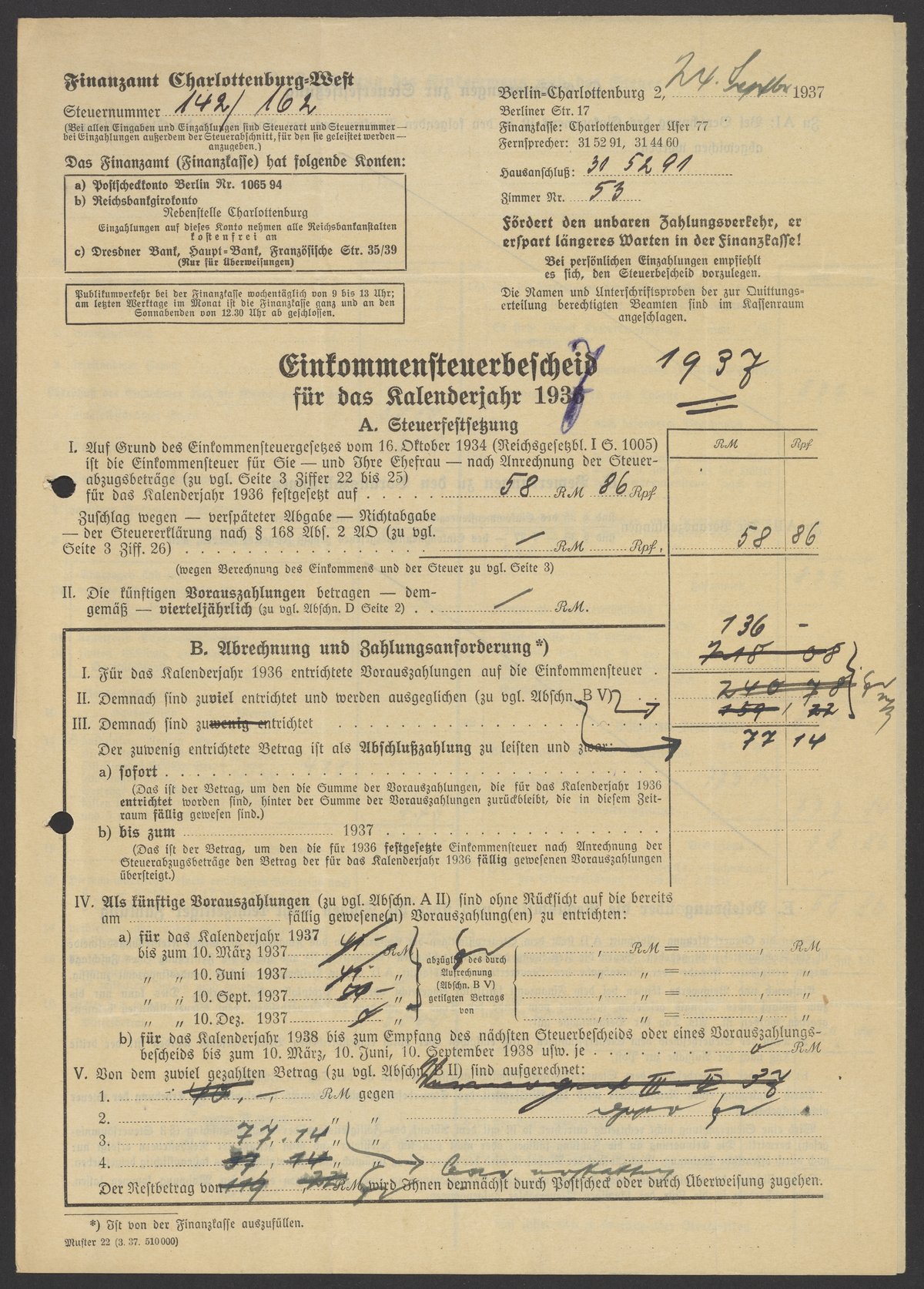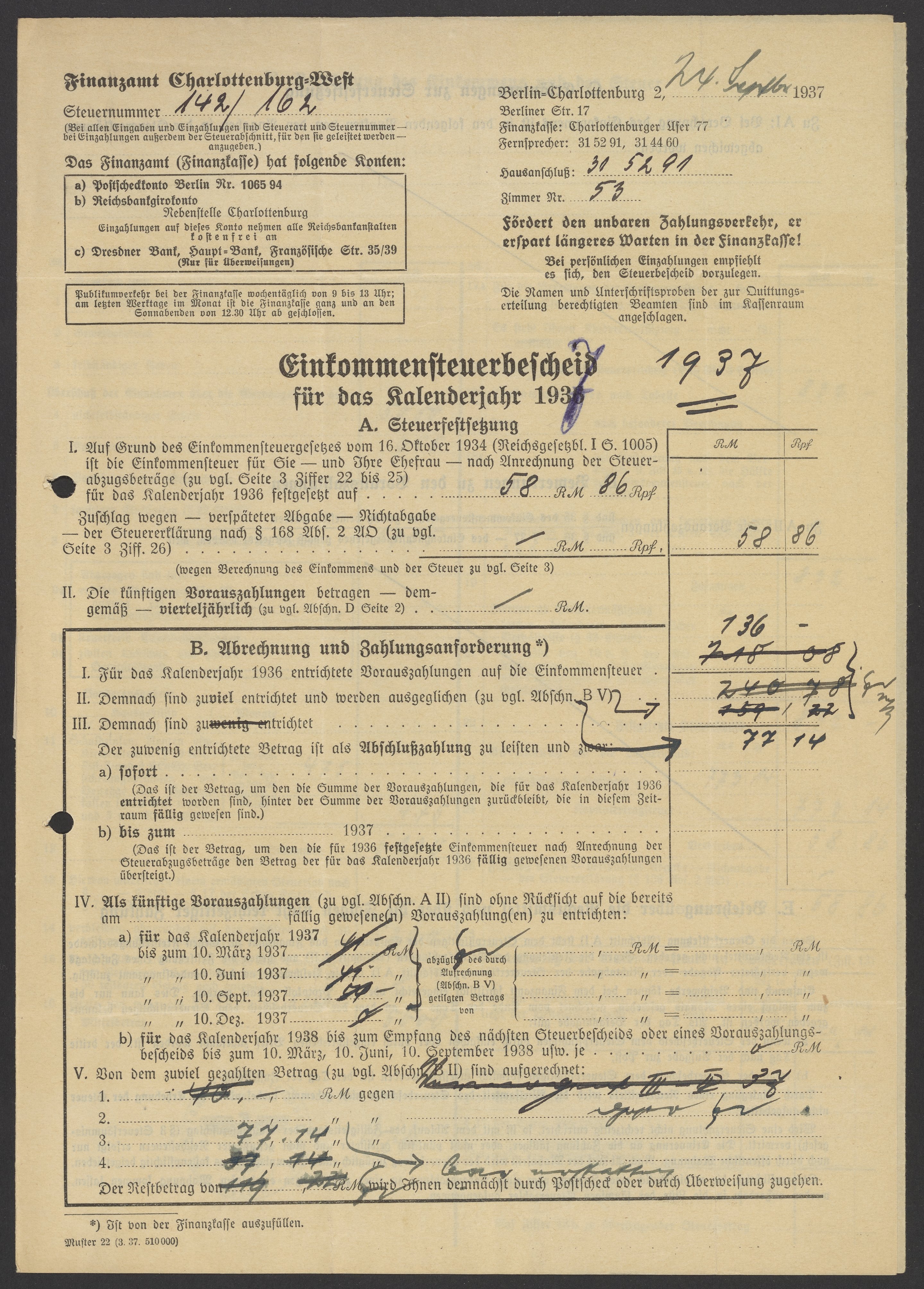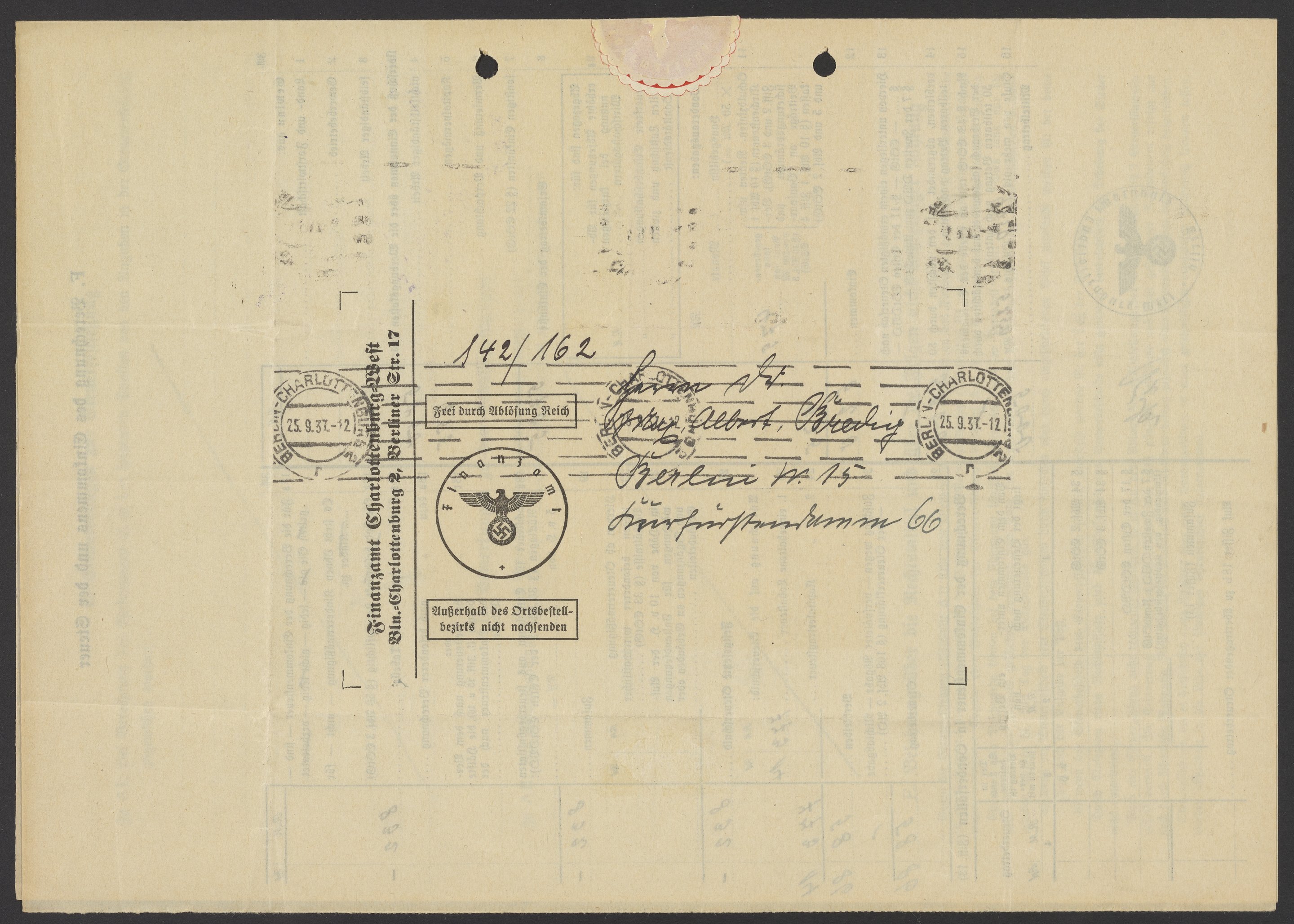 Financial documents of Max Bredig, 1937