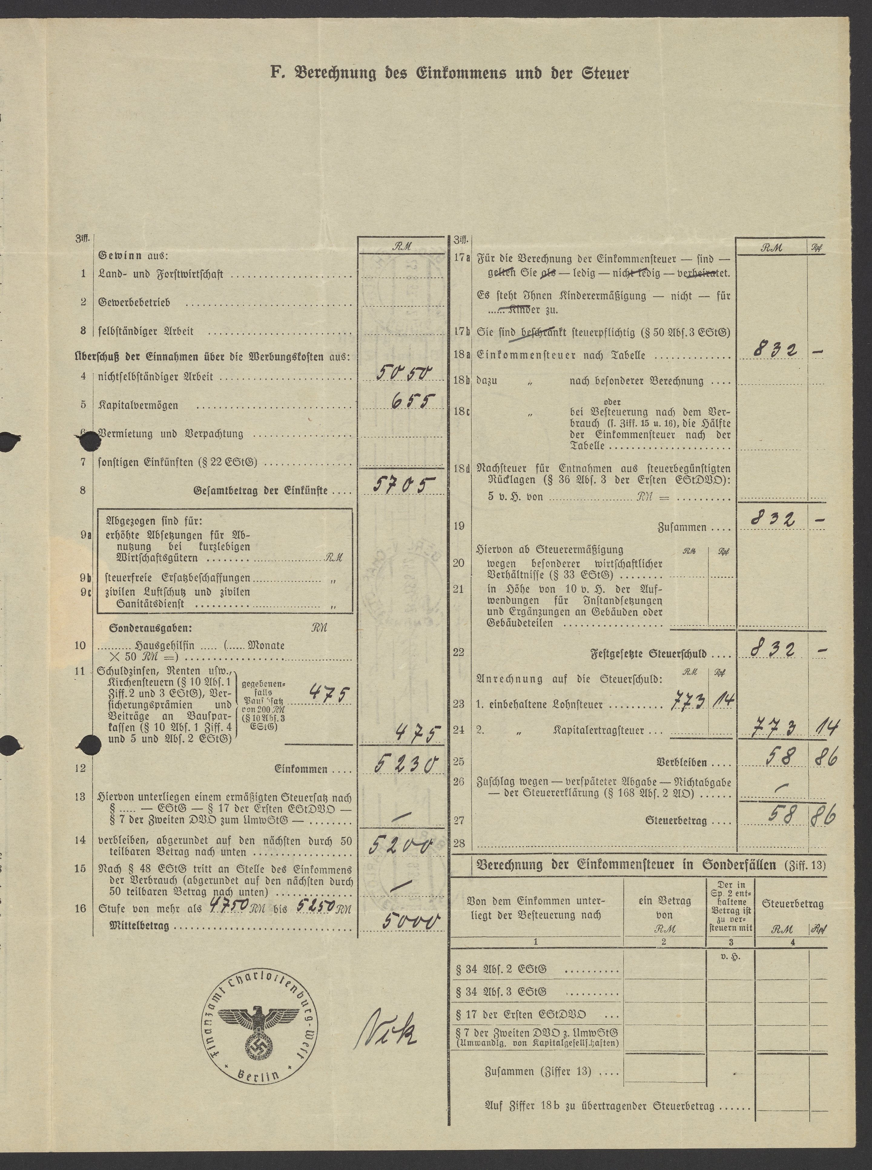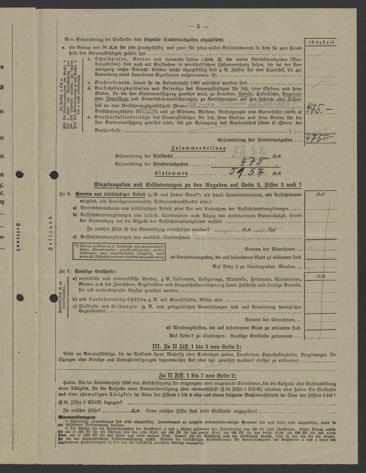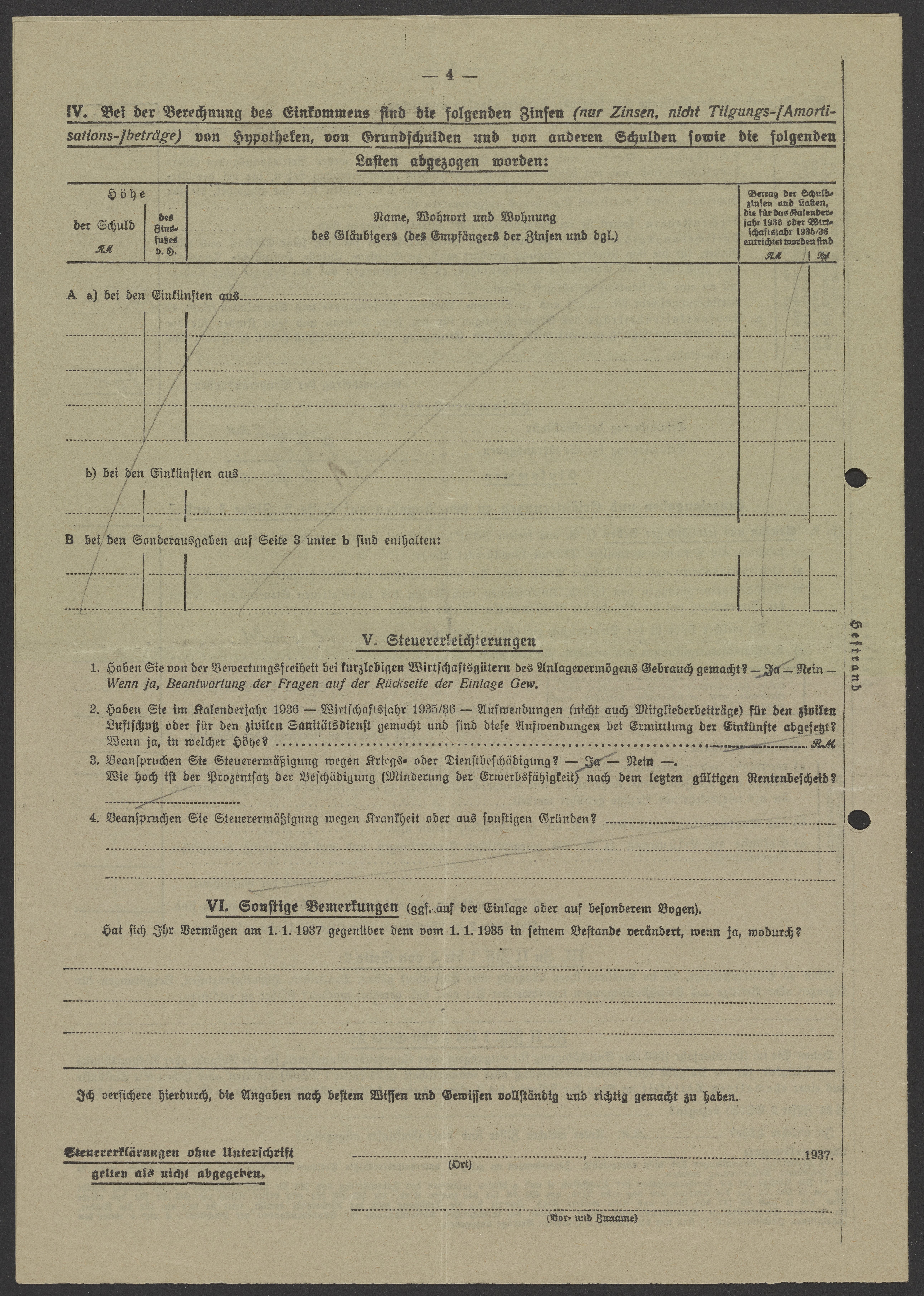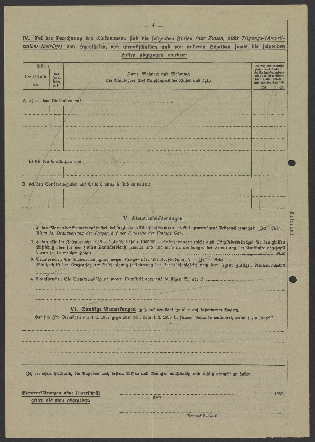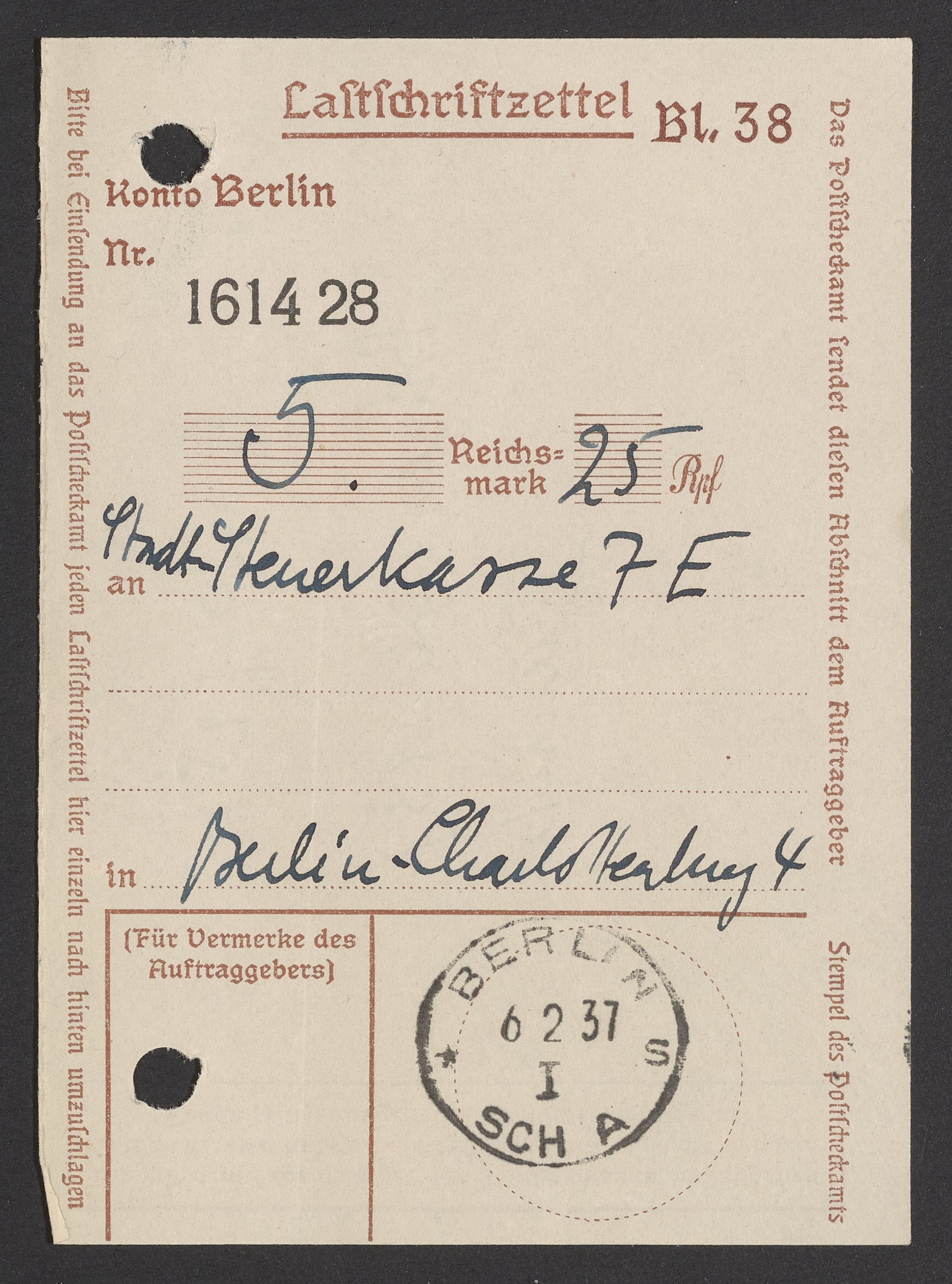 Financial documents of Max Bredig, 1937
