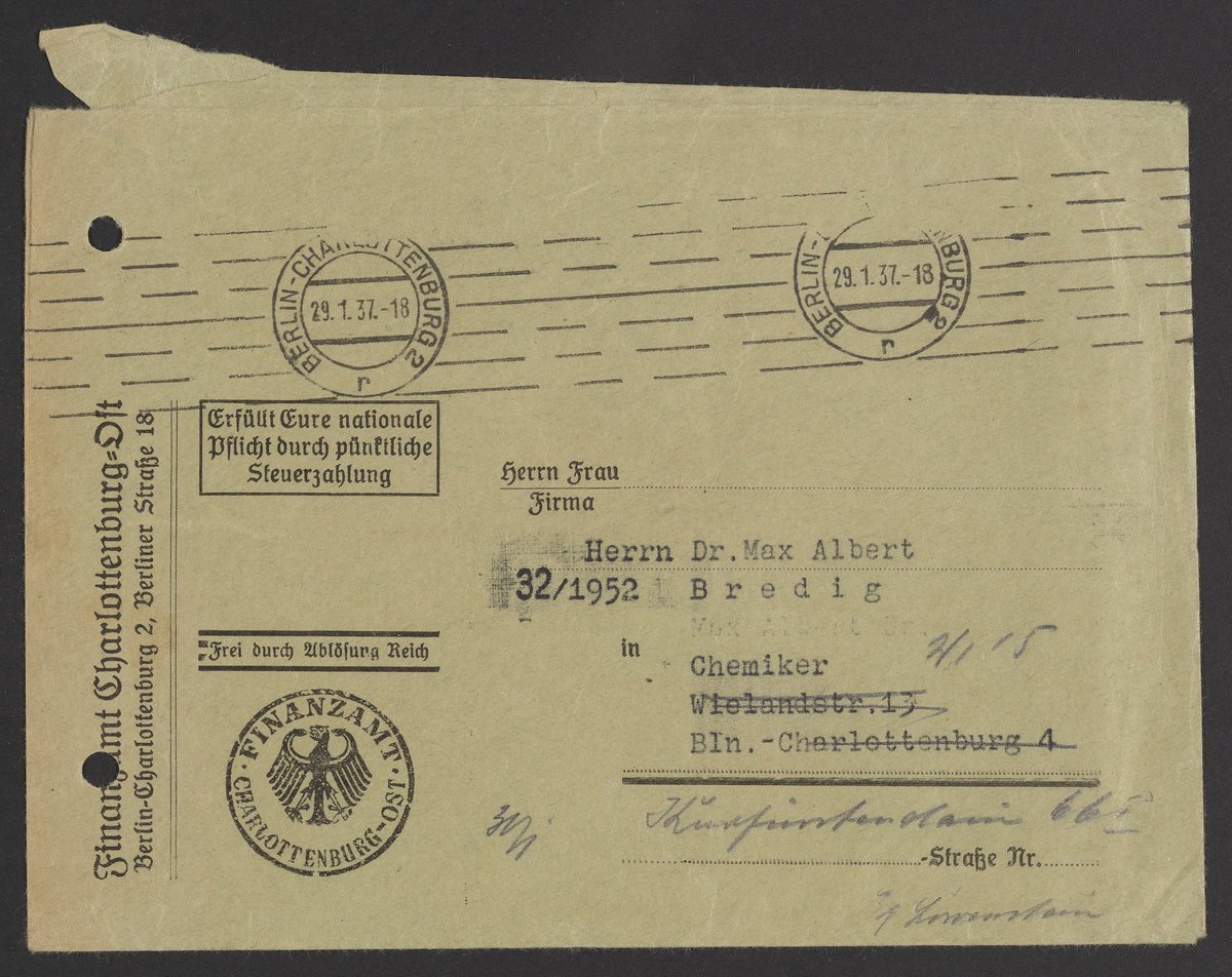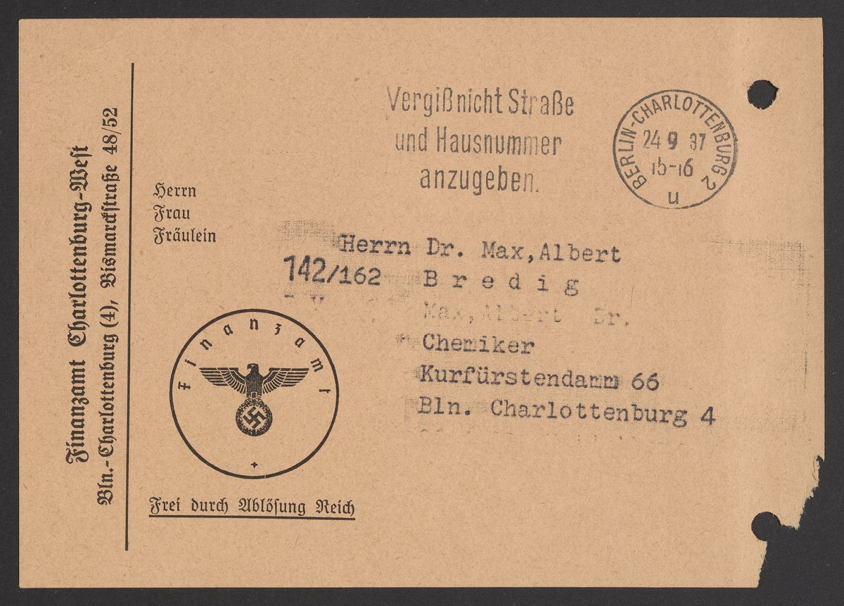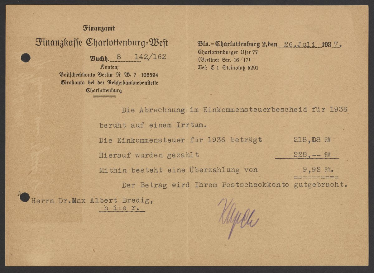 Small JPG1200 x 867px — 207 KBLarge JPG2880 x 2082px — 1.2 MBFull-sized JPG4417 x 3193px — 2.8 MBOriginal fileTIFF — 4417 x 3193px — 40.4 MBVarious financial documents belonging to Max Albert Bredig (1902-1977) from the year 1937.