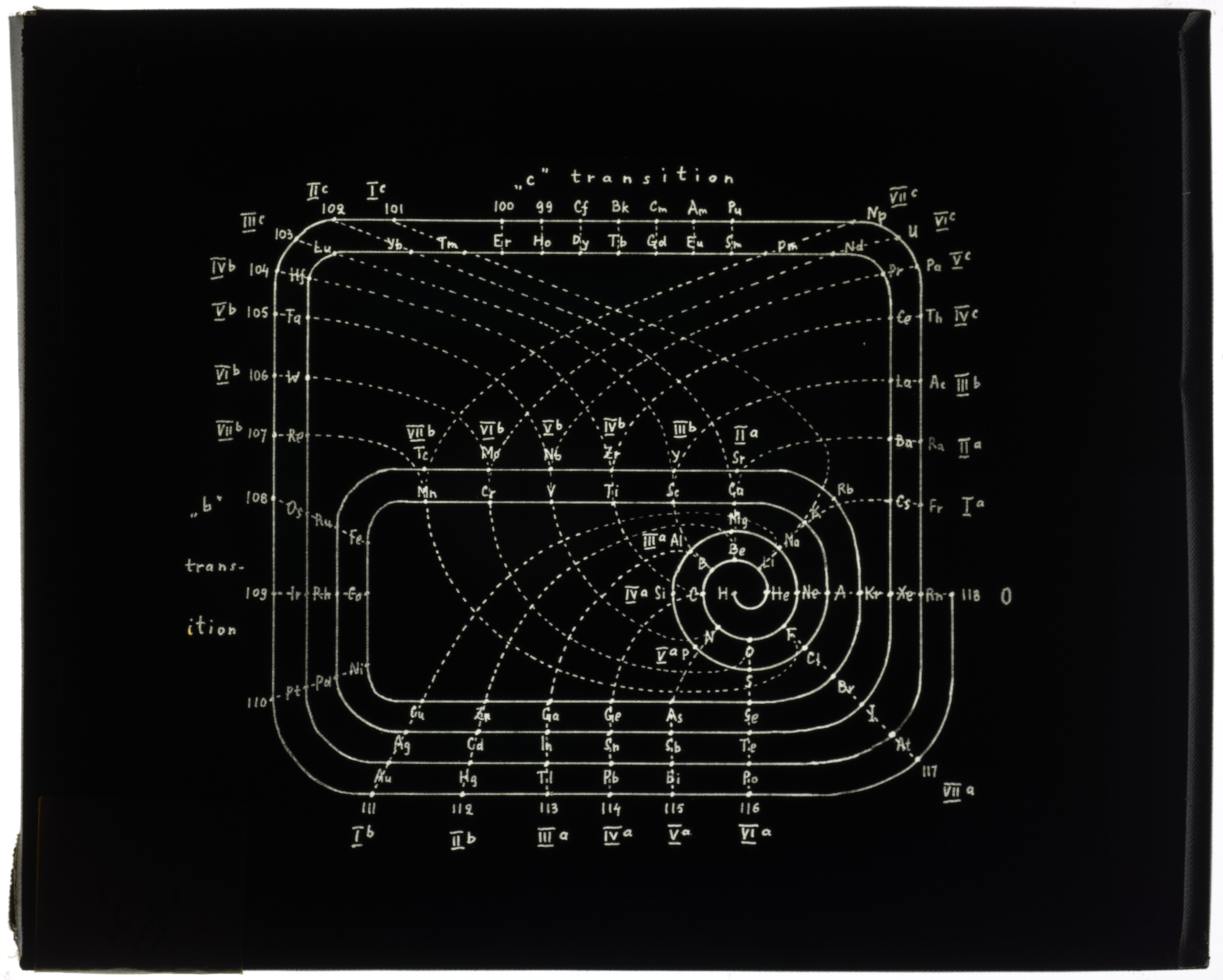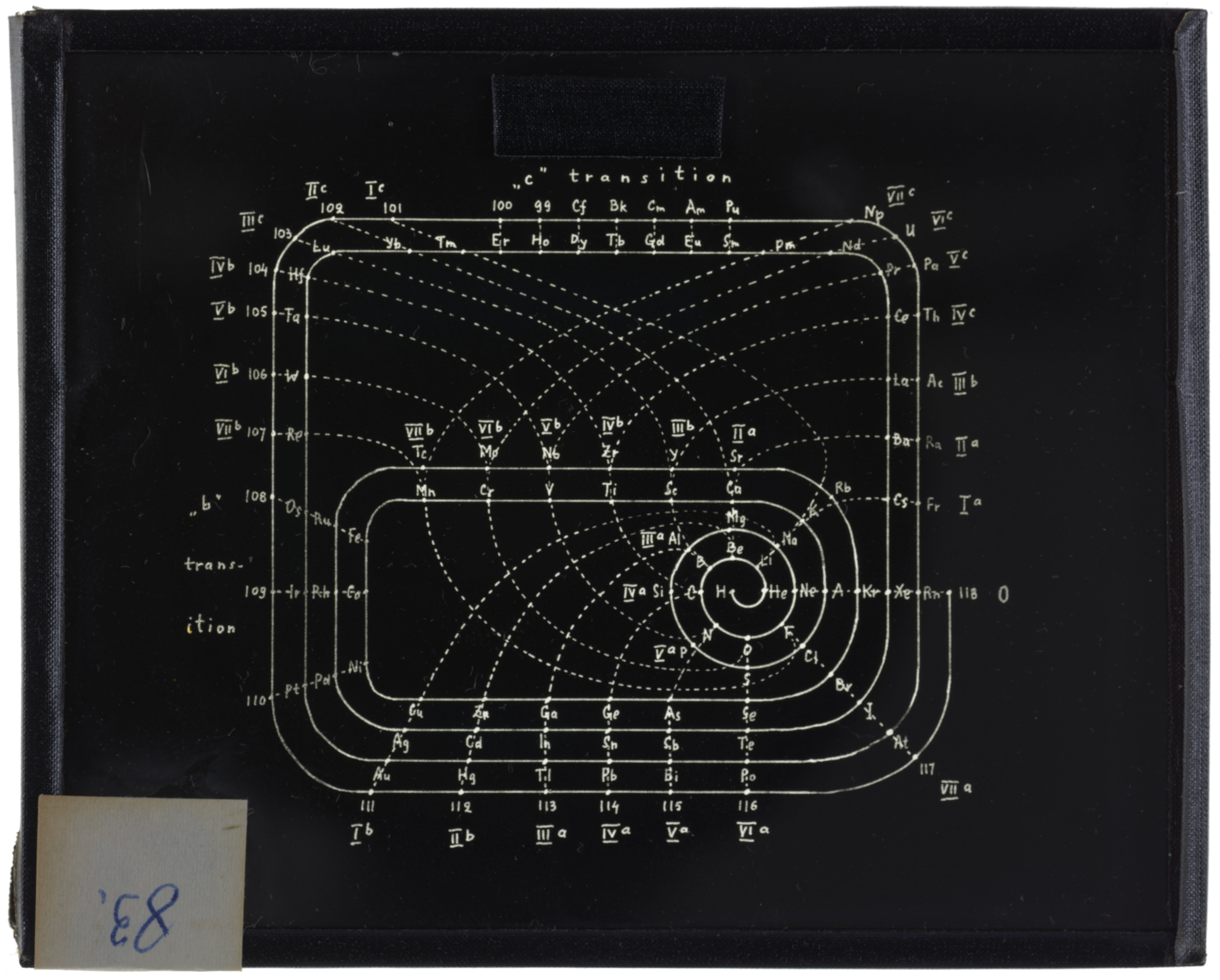 Left-step series table with elements arranged according to their valences1955 (Original design), Circa 1957 (Date attributed to slide)