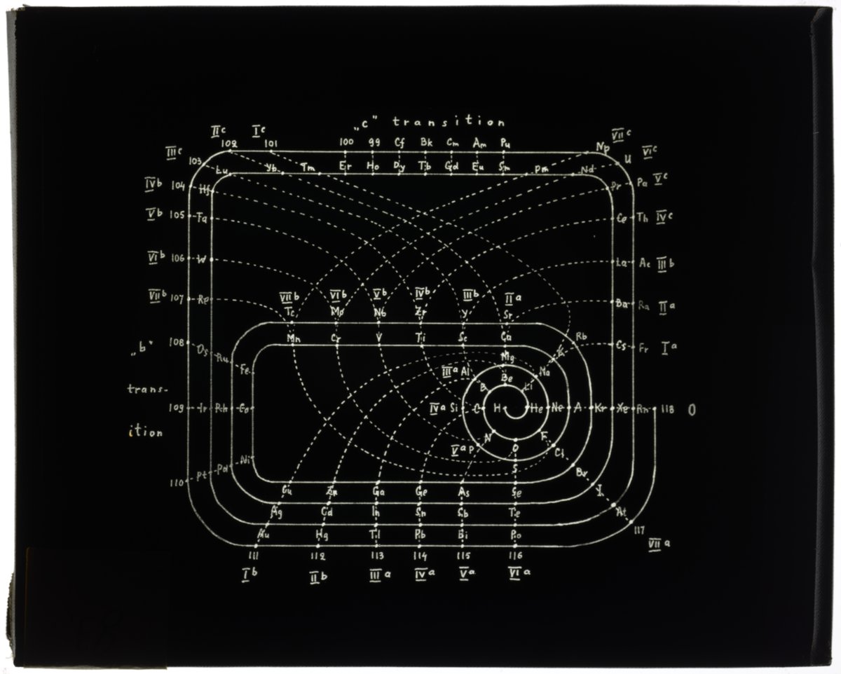 Mazurs, Edward G. “Periodic Table in Style of an Irregular Spiral.” Glass (material), circa 1957. Edward G. Mazurs Collection of Periodic Systems Images, Box 1. Science History Institute. Philadelphia. https://digital.sciencehistory.org/works/p2676w099.