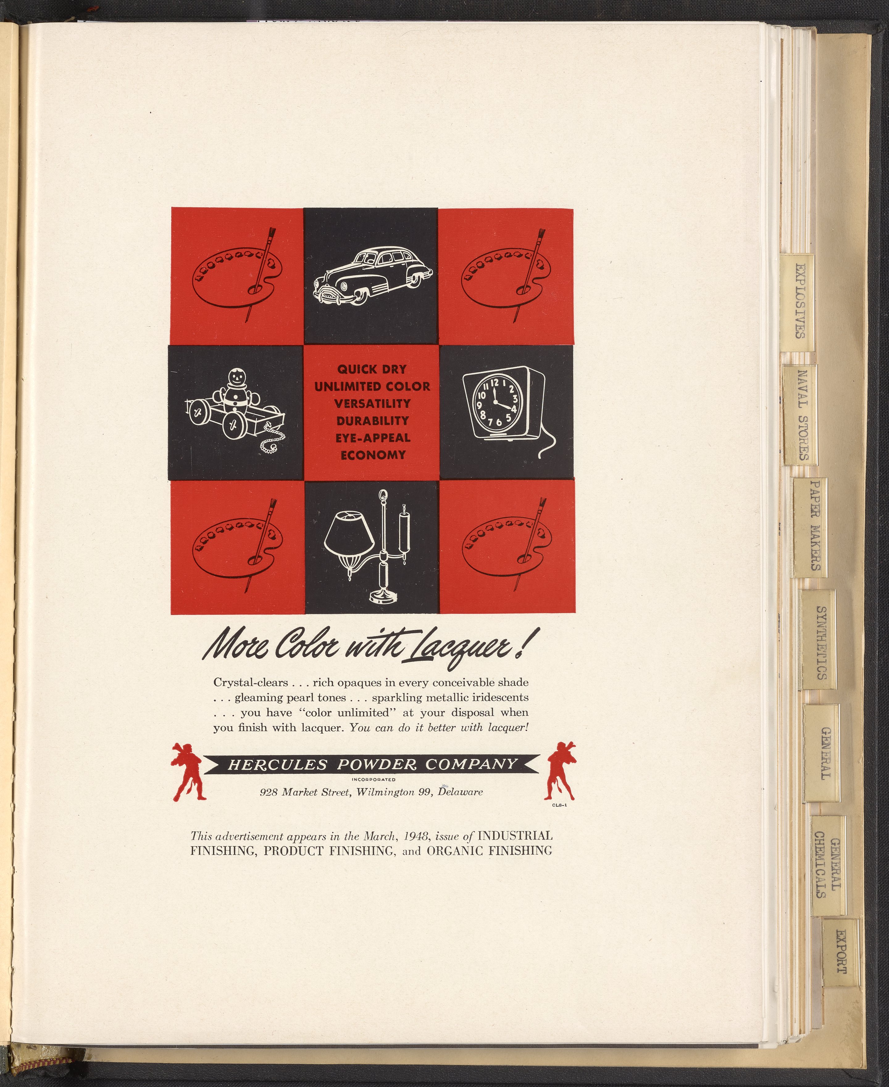 Hercules Incorporated. “More Color with Lacquer!” 1948 Hercules Advertisements, 1948. Records of Hercules Incorporated, Volume 1948. Science History Institute. Philadelphia. https://digital.sciencehistory.org/works/p28r4cg.