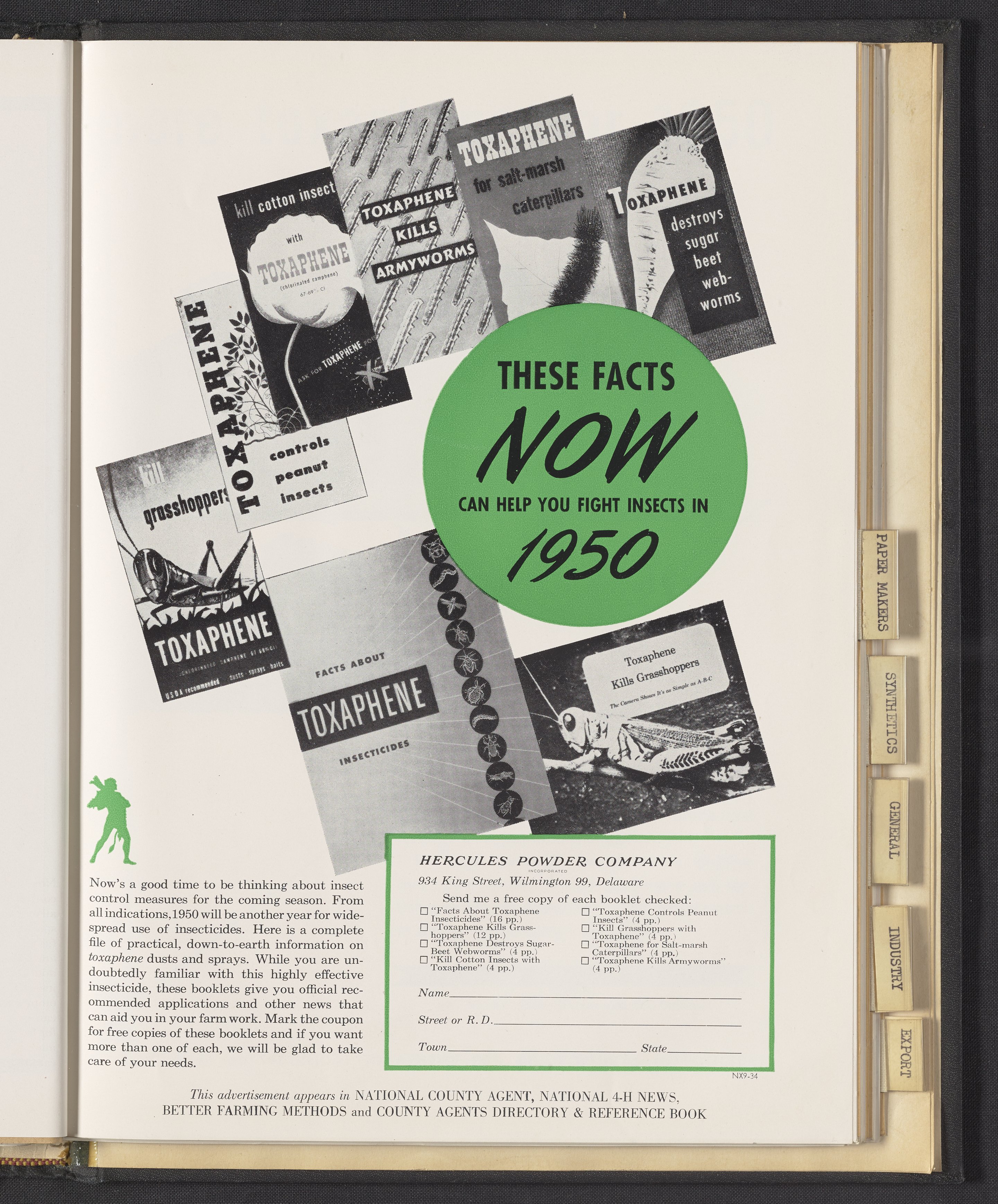 Hercules Incorporated. “These Facts Now Can Help You Fight Insects in 1950.” 1949 Hercules Advertisements, 1949. Records of Hercules Incorporated, Volume 1949. Science History Institute. Philadelphia. https://digital.sciencehistory.org/works/p8418p05p.