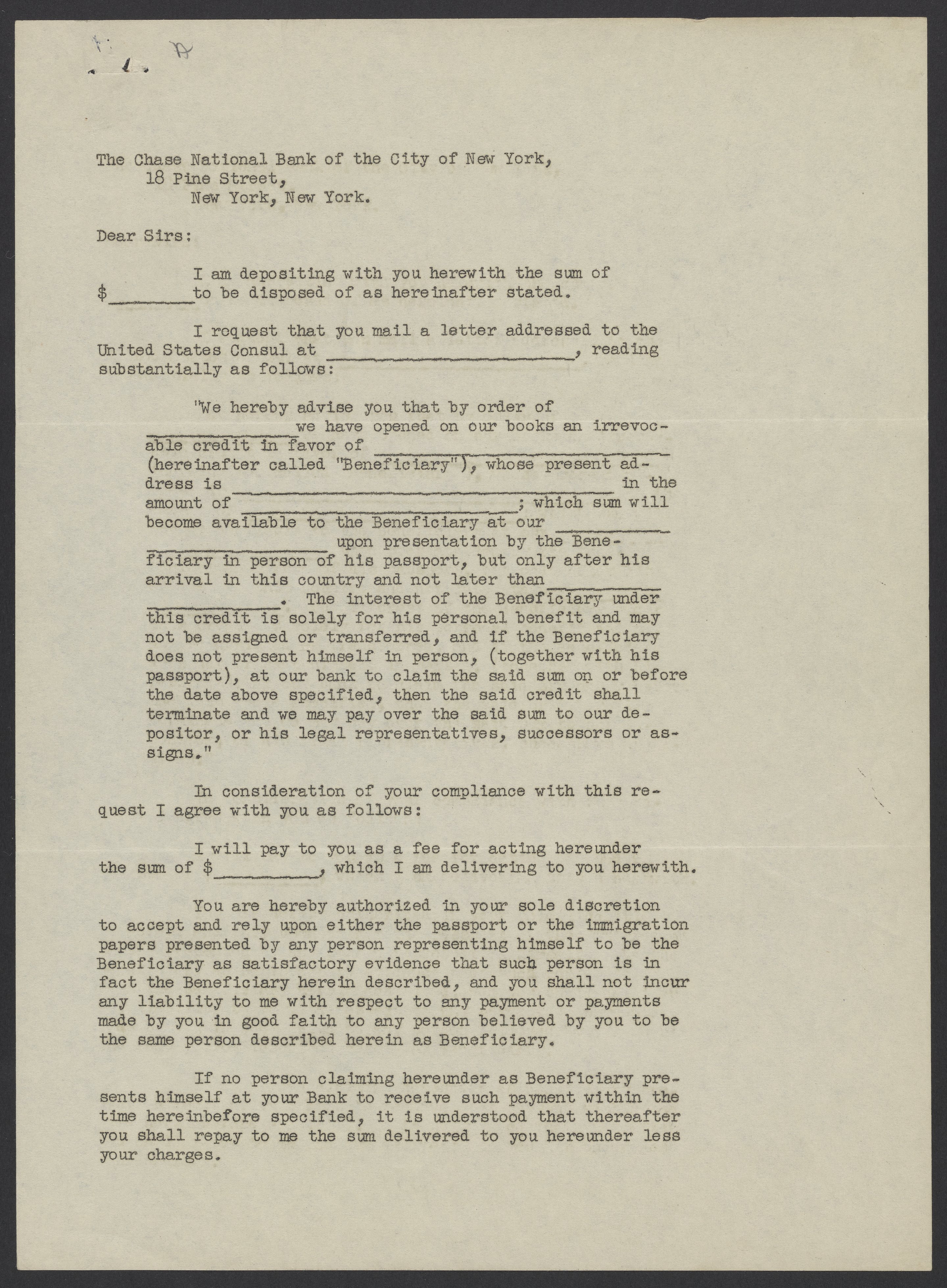Chase National Bank form