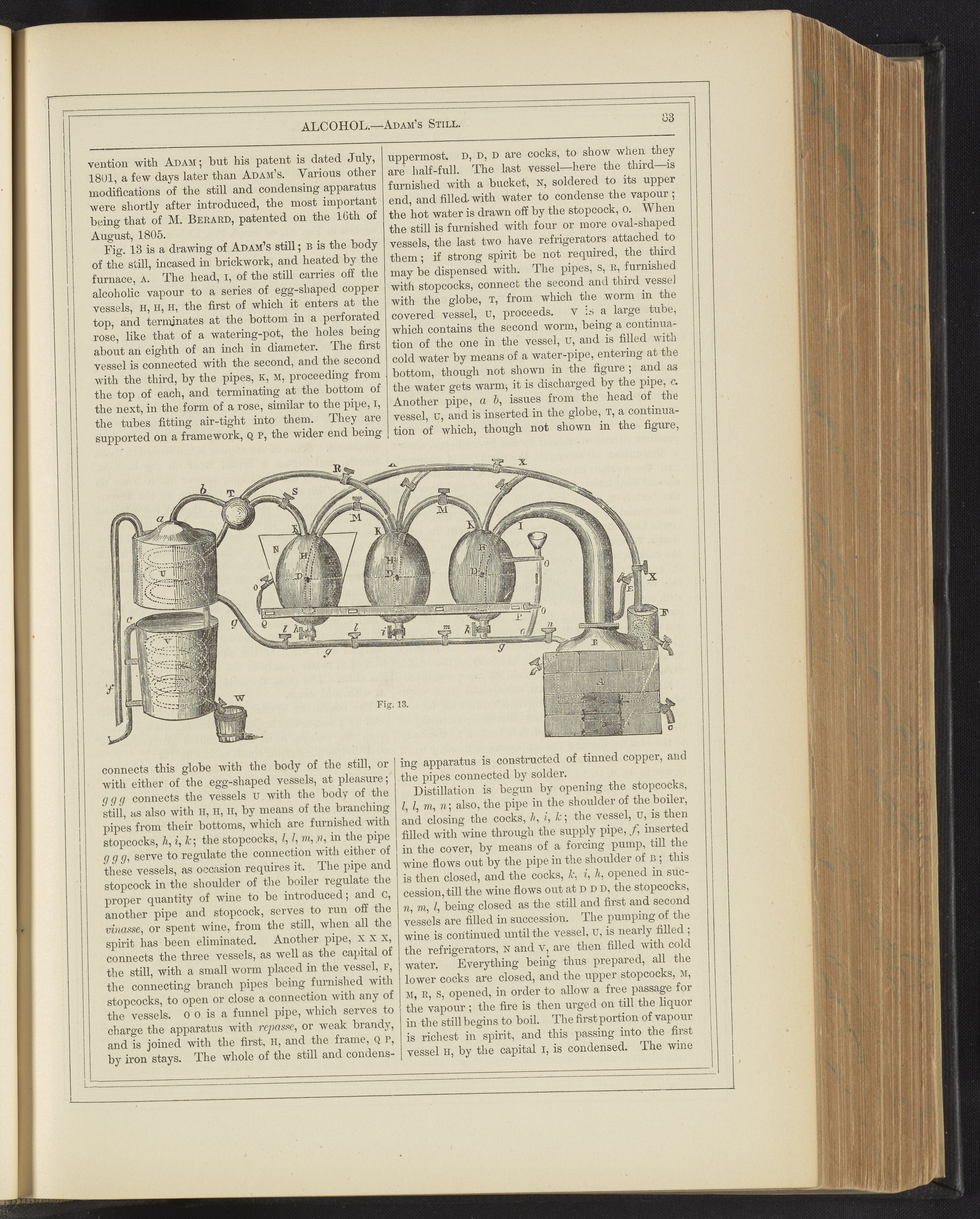 “Adam's Still for the Distillation of Alcohol.” In Encyclopædia of Chemistry, Theoretical, Practical, and Analytical, as Applied to the Arts and Manufacturers, Vol. I and II. Philadelphia, Pennsylvania: J.B. Lippincott & Co., 1877. https://digital.sciencehistory.org/works/pc289j08t.
