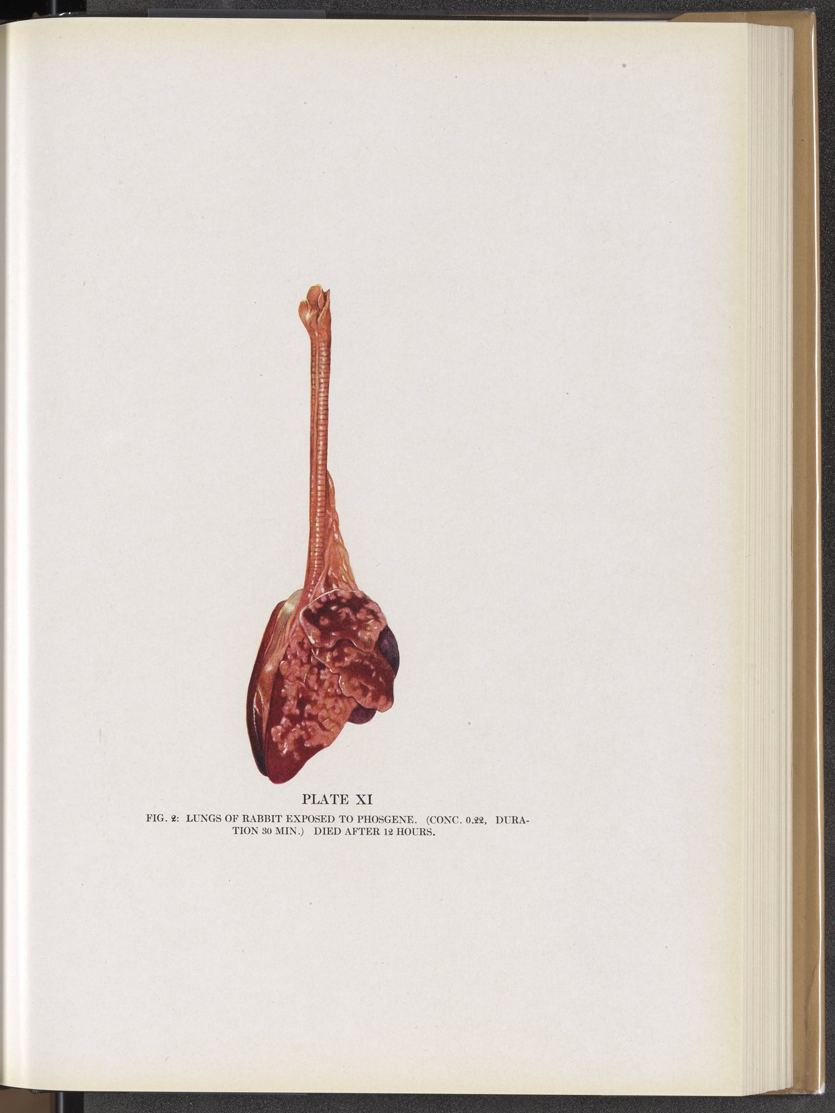 Winternitz, M. C. (Milton C.). “Plate XI (Fig. 2): Lungs of Rabbit Exposed to Phosgene.” Collected Studies on the Pathology of War Gas Poisoning. New Haven, Connecticut: Yale University Press, 1920. https://digital.sciencehistory.org/works/pg15bf00v.