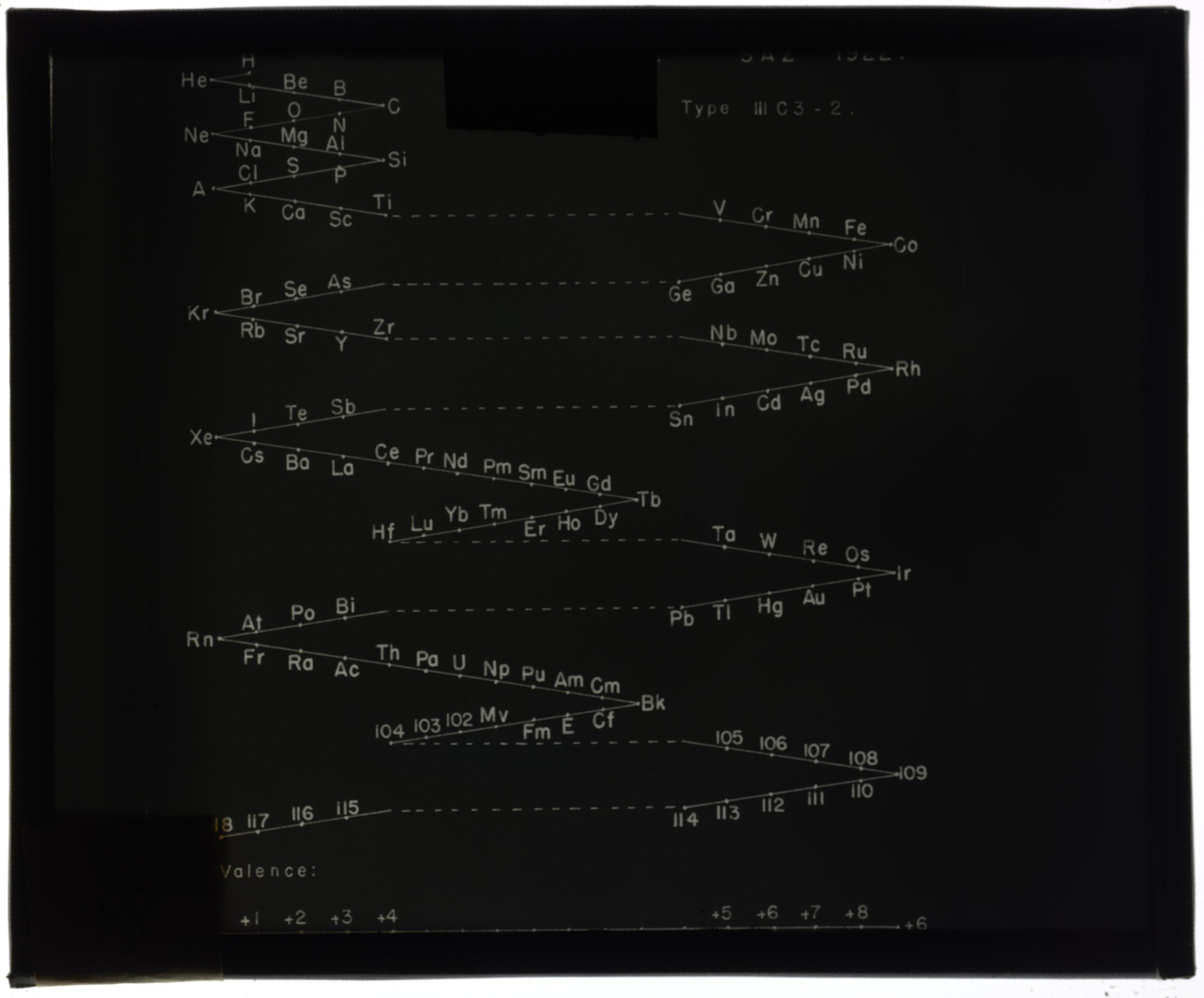 Periodic table in style of a zigzag (Eugenio Saz, 1922)