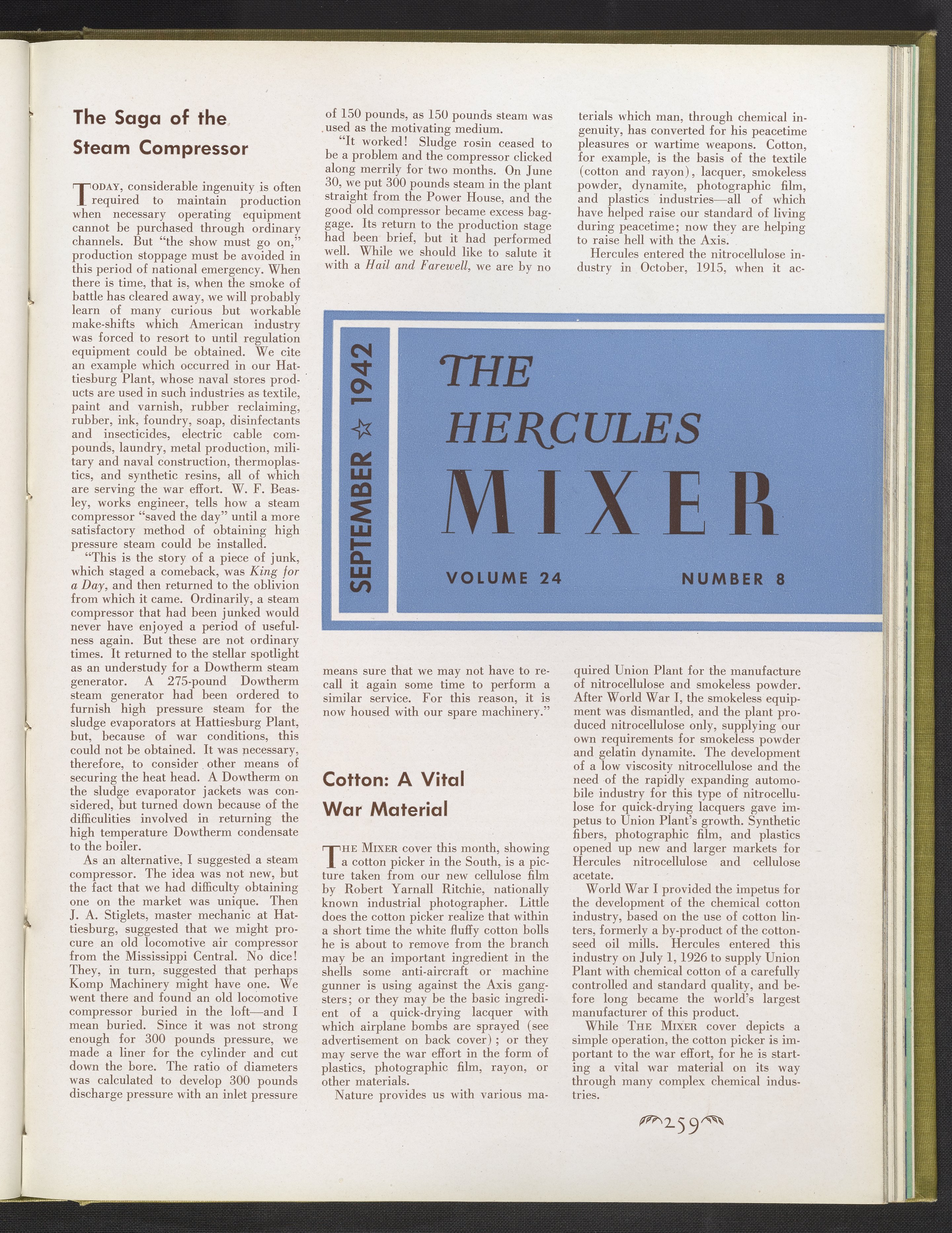 “The Hercules Mixer, Volume 24.” Wilmington, Delaware: Hercules Incorporated, 1942. Records of Hercules Incorporated, Volume 24. Science History Institute. Philadelphia. https://digital.sciencehistory.org/works/pg15bf723.
