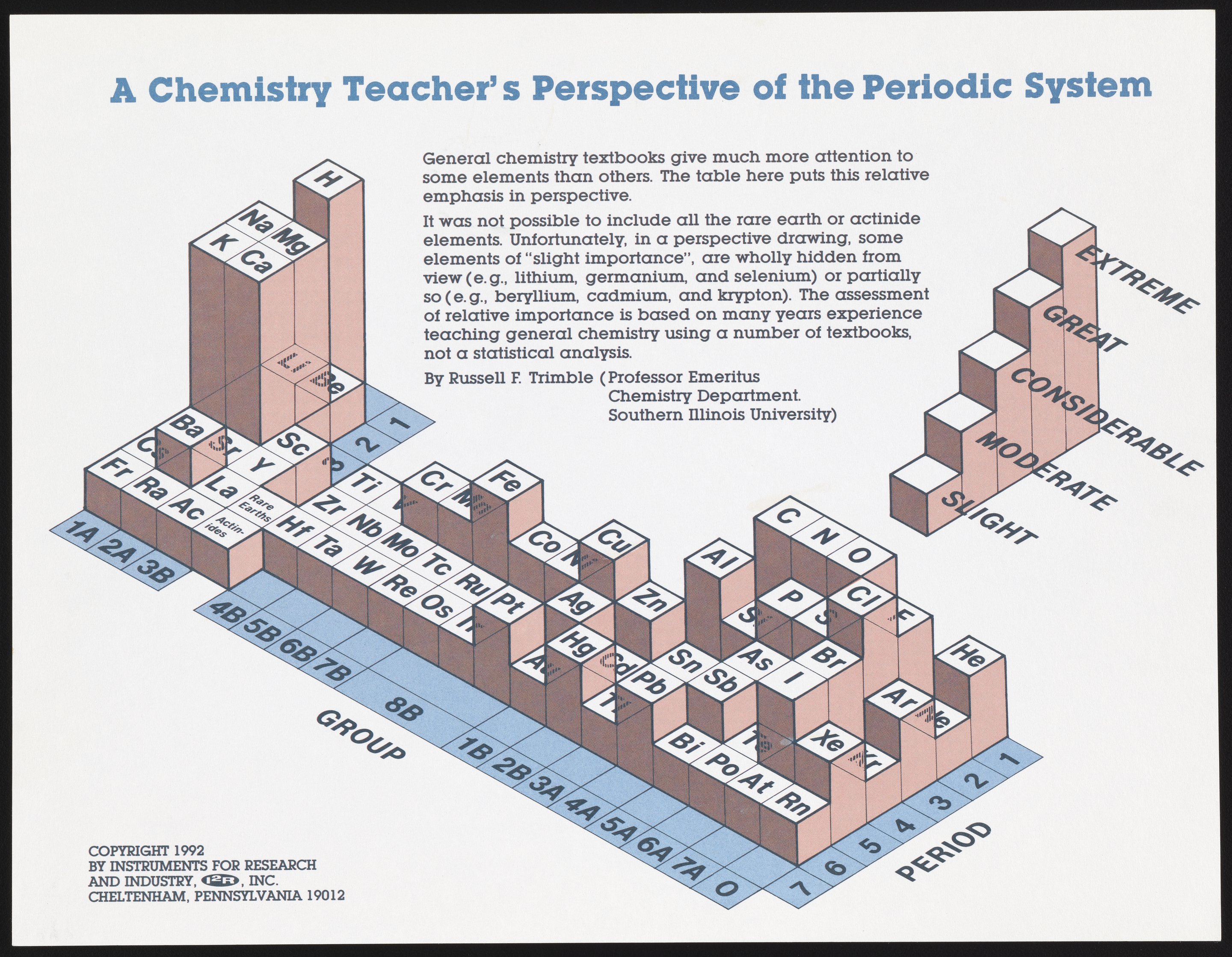 Trimble, Russell F. “A Chemistry Teacher's Perspective of the Periodic System.” Instruments for Research and Industry, 1992. Periodic Tables Collection, Box FC-5, Folder Periodic Tables (Assorted). Science History Institute. Philadelphia. https://digital.sciencehistory.org/works/pg15bf812.