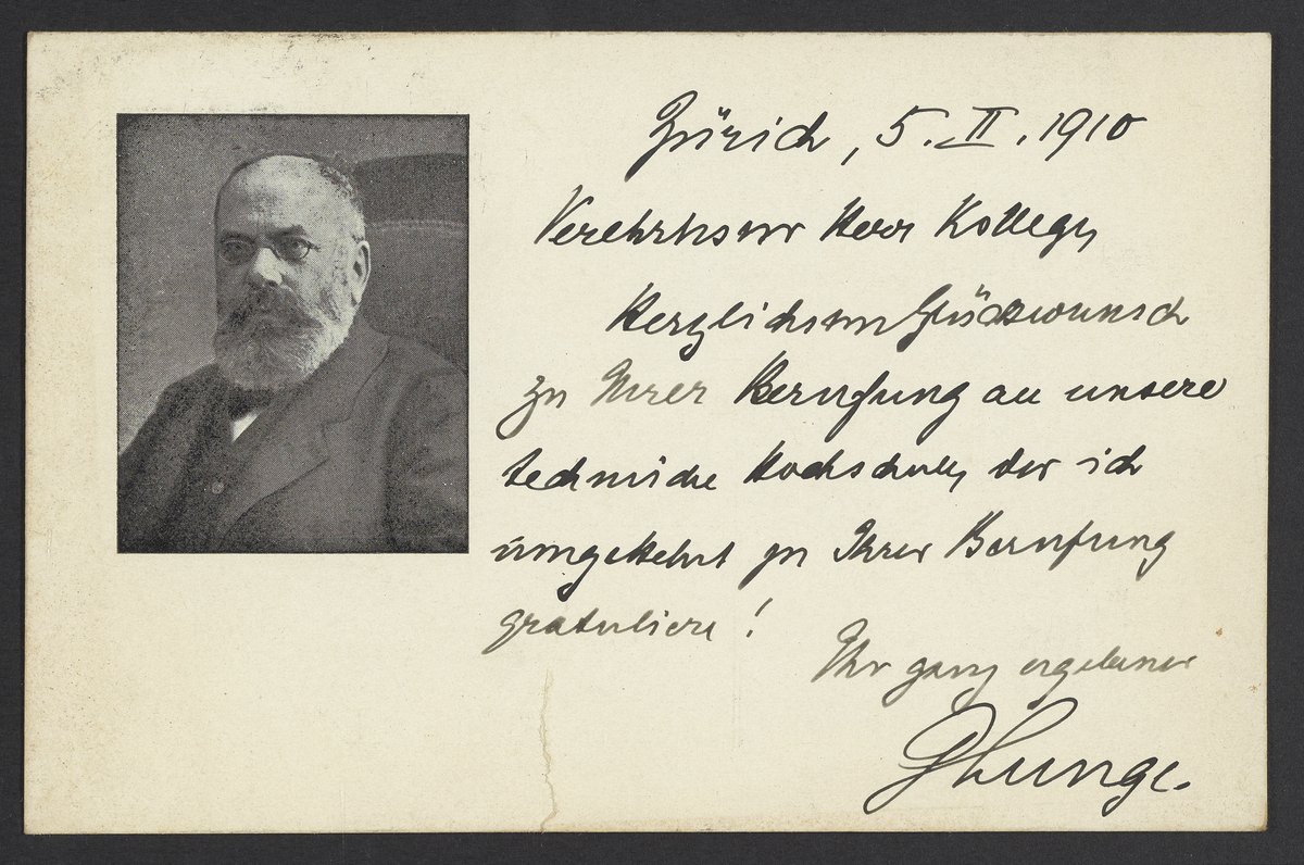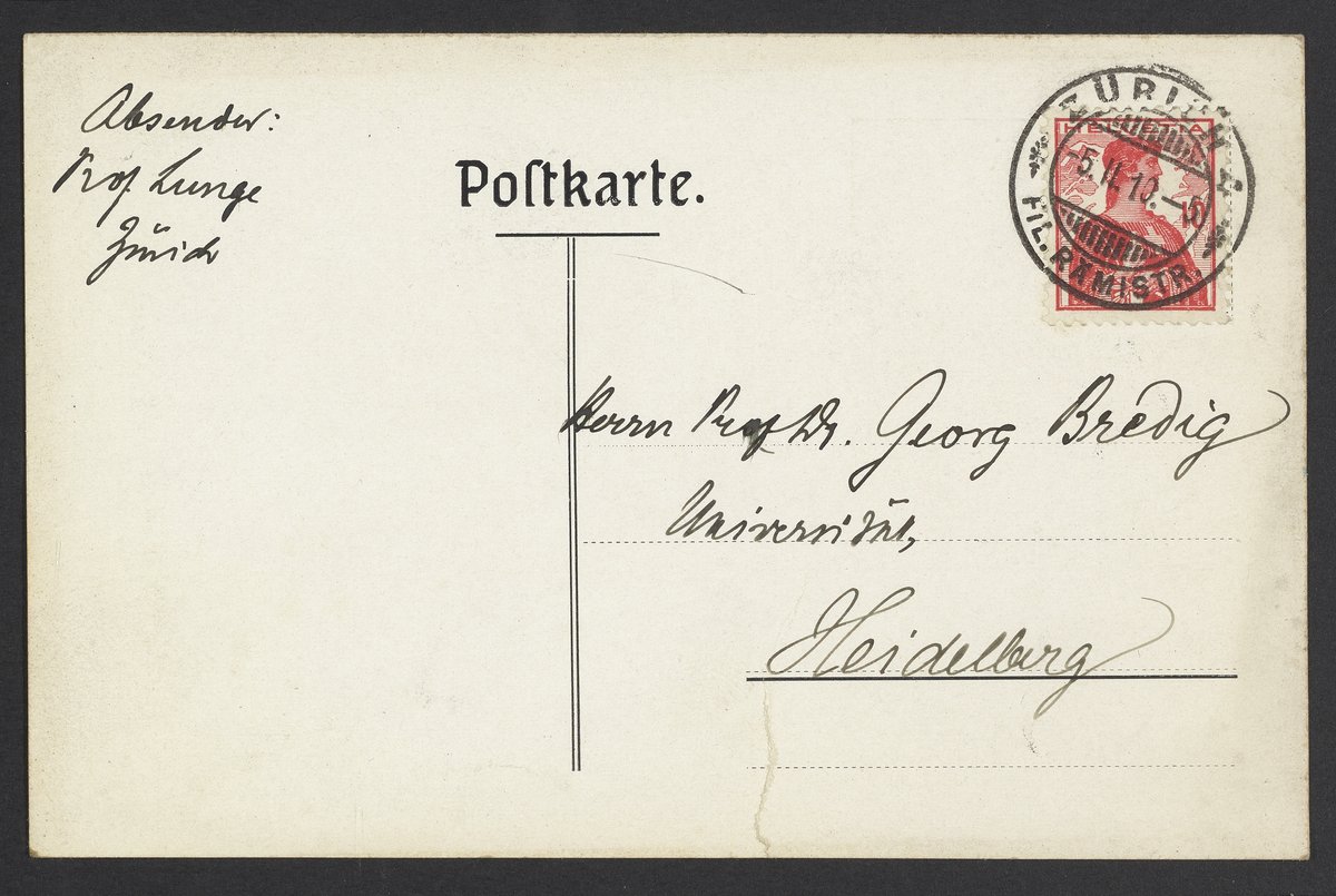 Postcard to Georg Bredig from Georg Lunge, February 1910