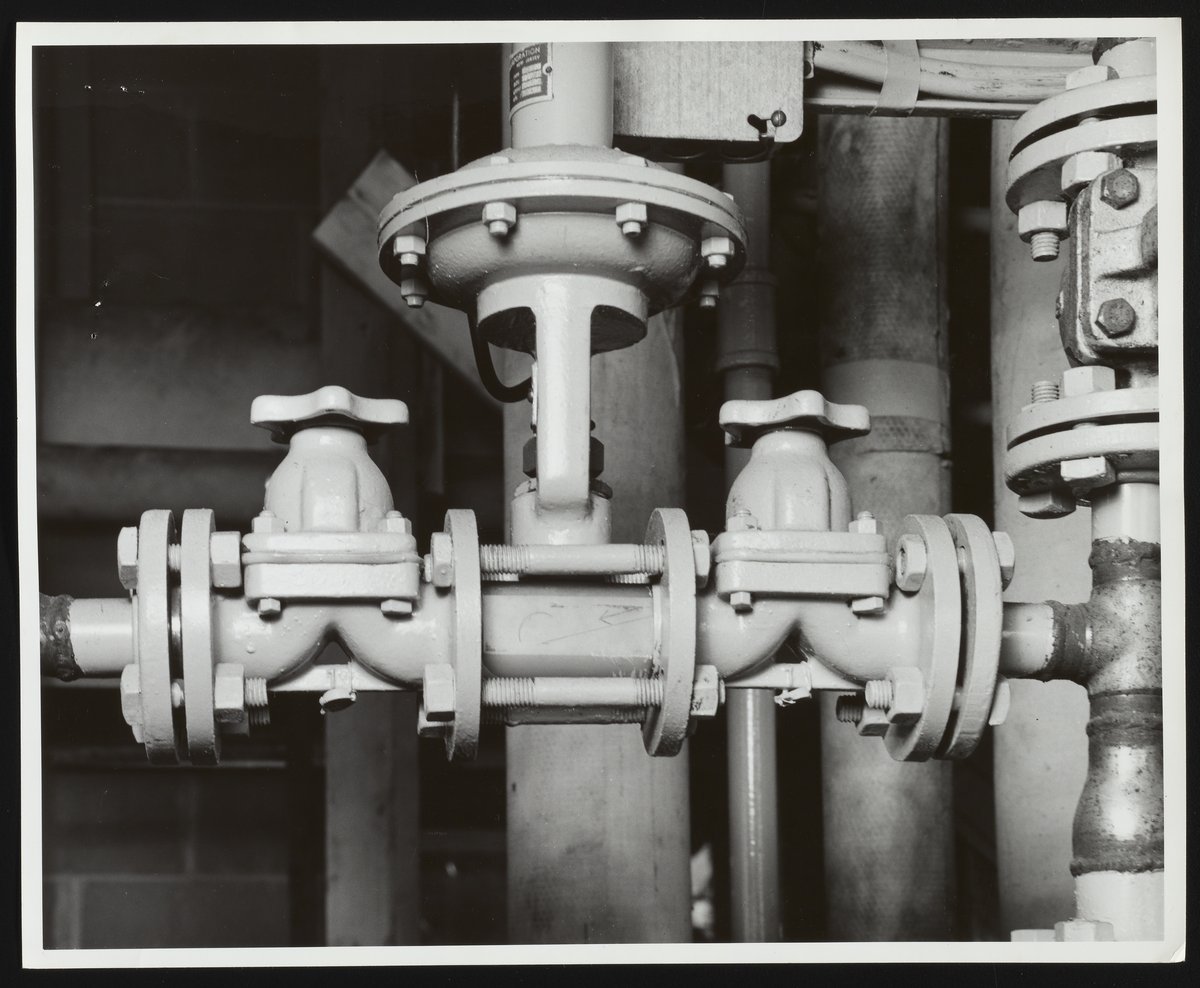 Hercules Incorporated. “Valves and Pipes at Hercules Parlin Plant,” September 10, 1960. Photographs from the Records & Ephemera of Hercules Incorporated, Box 2, Folder 24. Science History Institute. Philadelphia. https://digital.sciencehistory.org/works/pk02cb42m.
