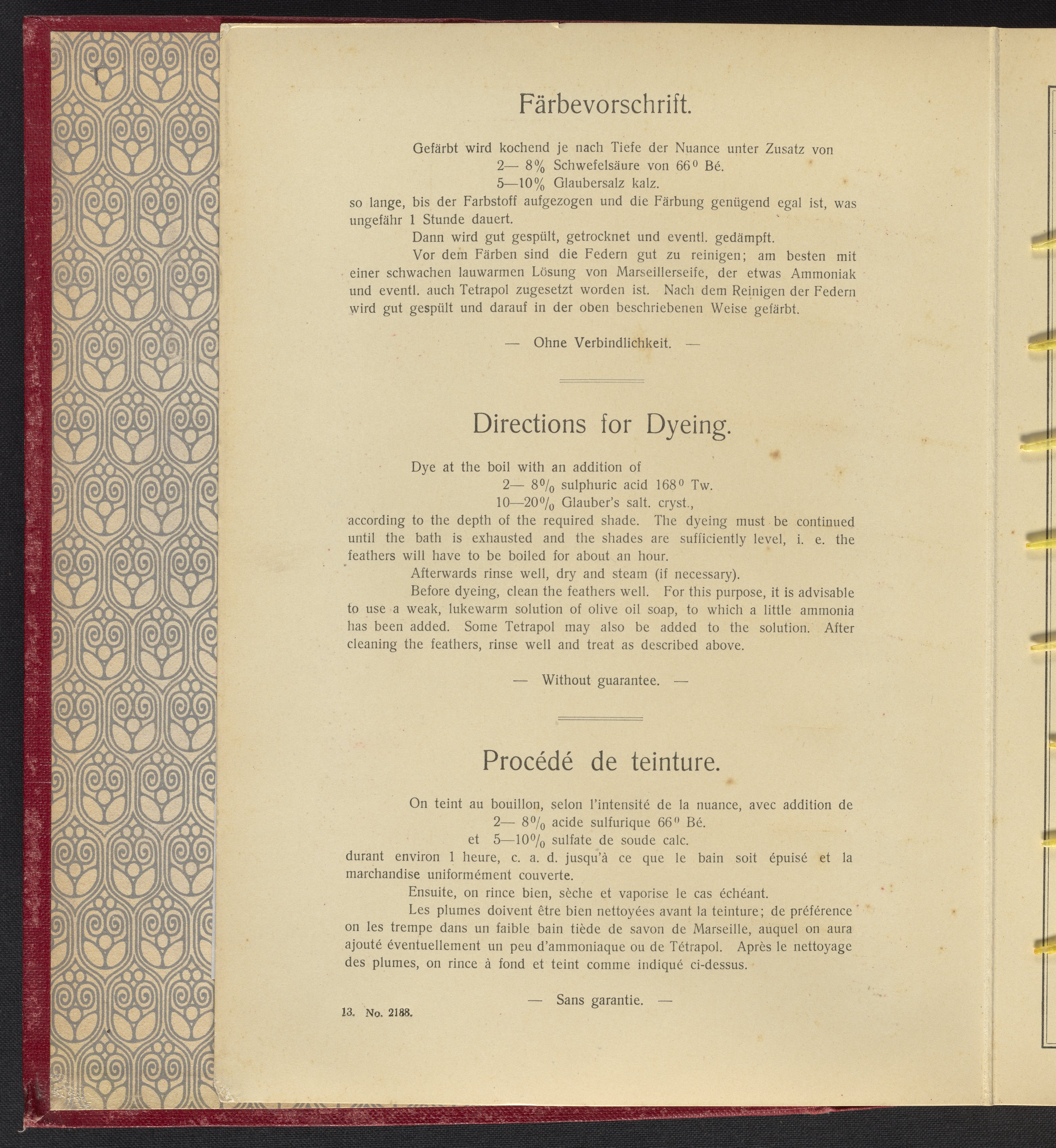 Bayer Company, Inc. Ausfärbungen Auf Federn. New York, New York, n.d. https://digital.sciencehistory.org/works/pk02cb51k.