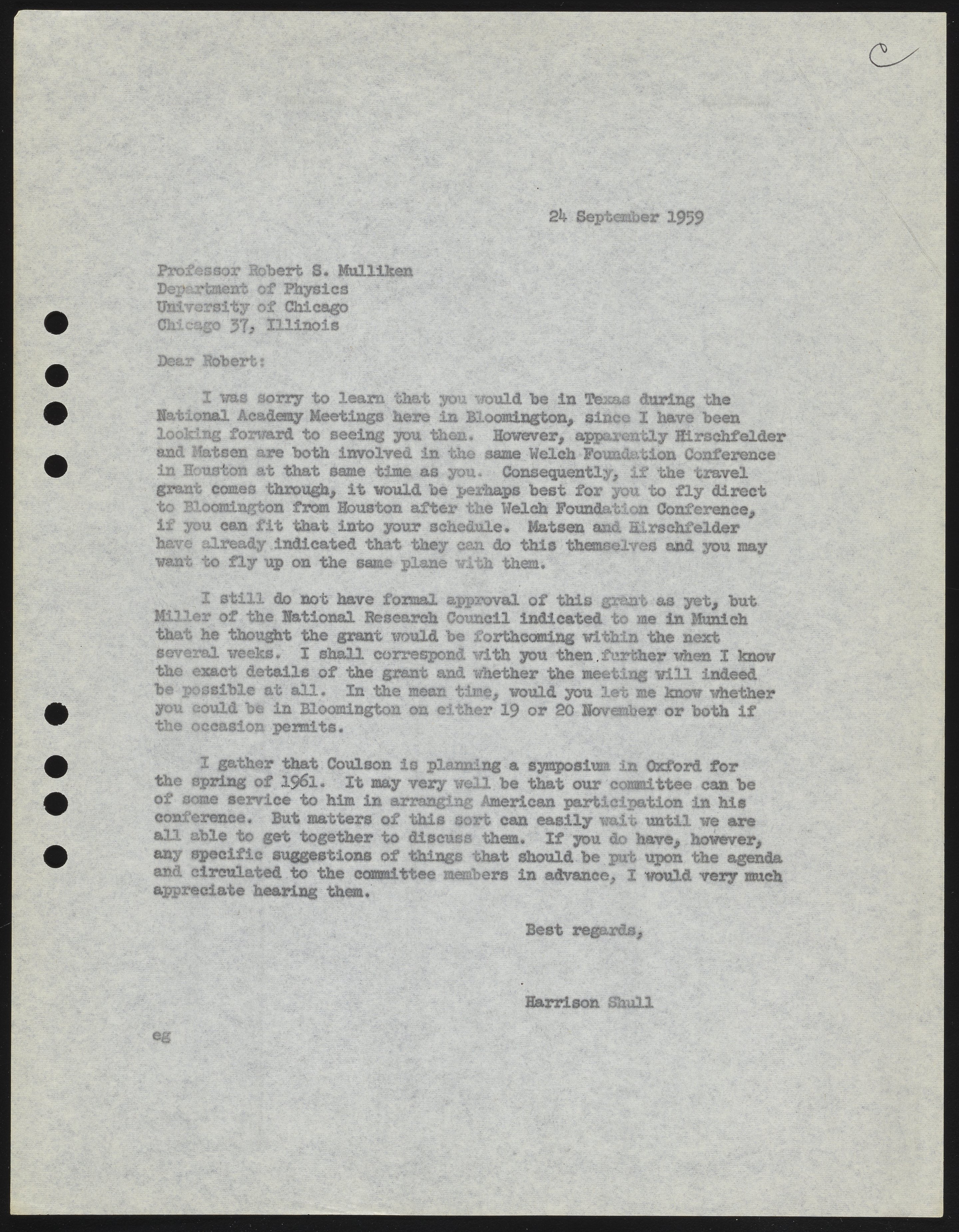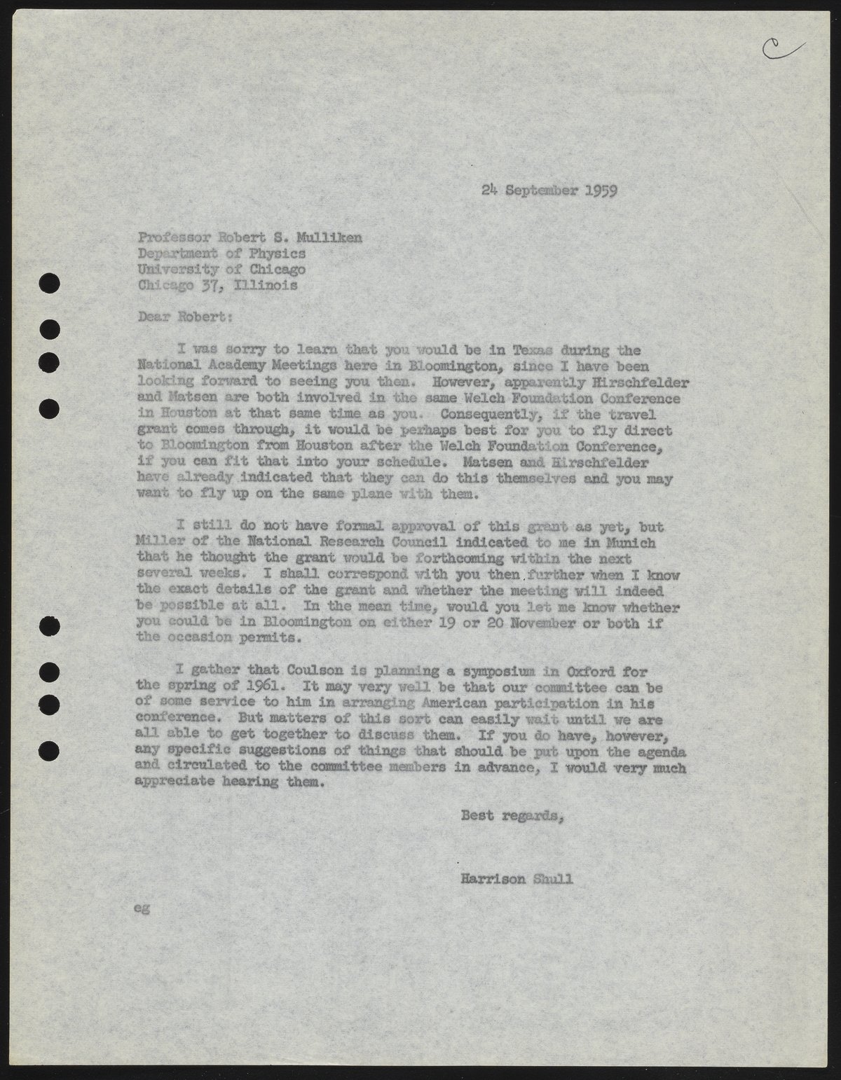 Letter from Harrison Shull to Robert S. Mulliken, 1959