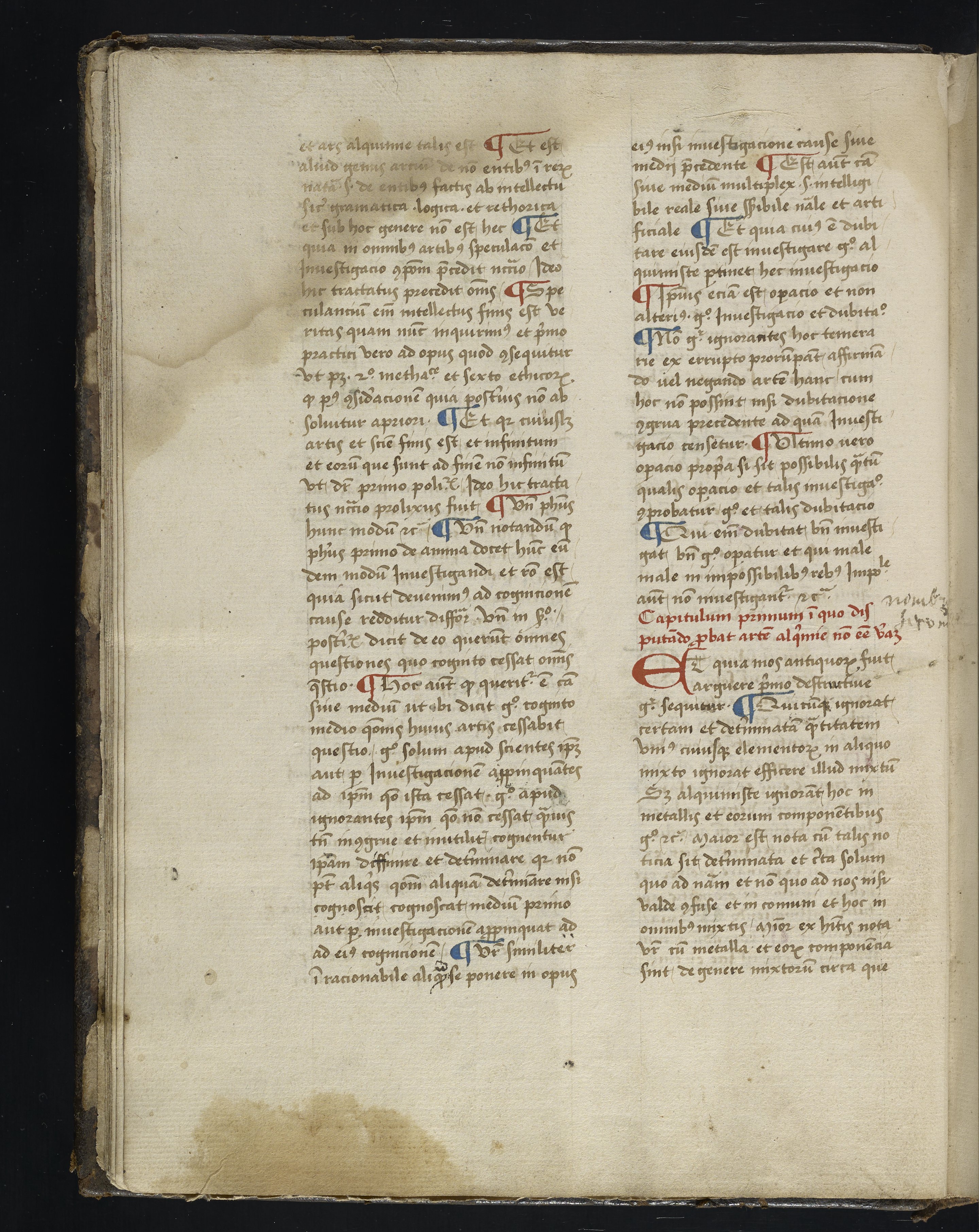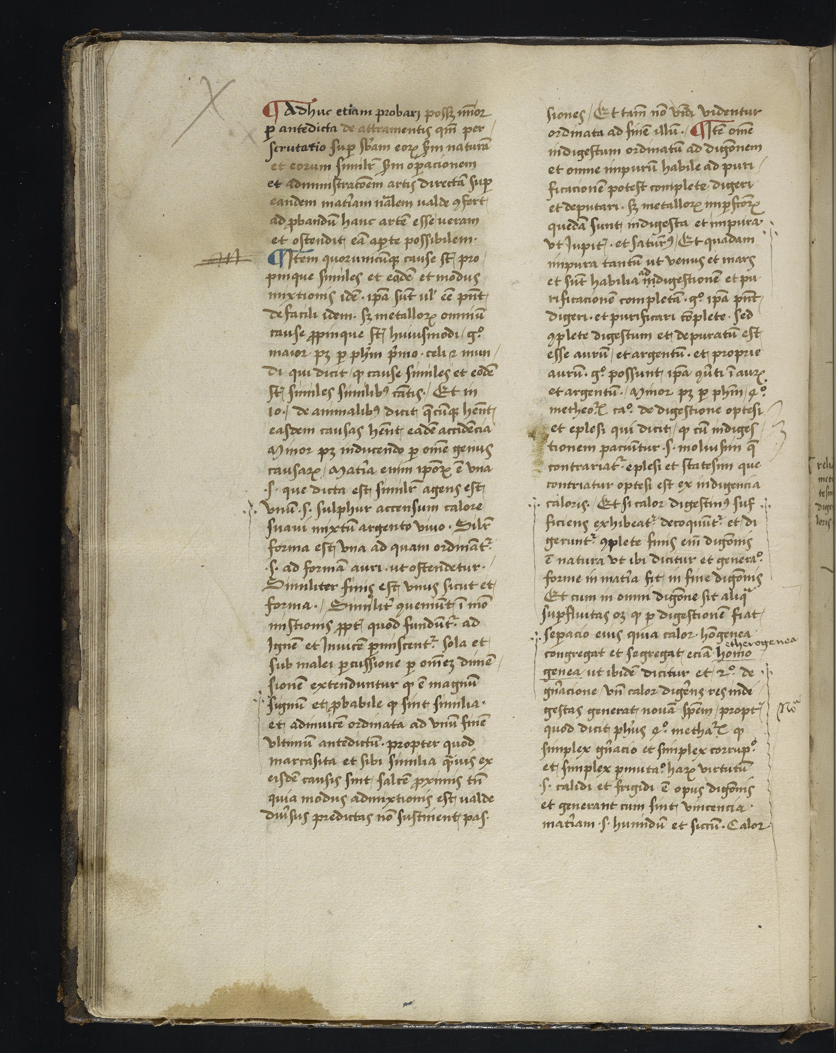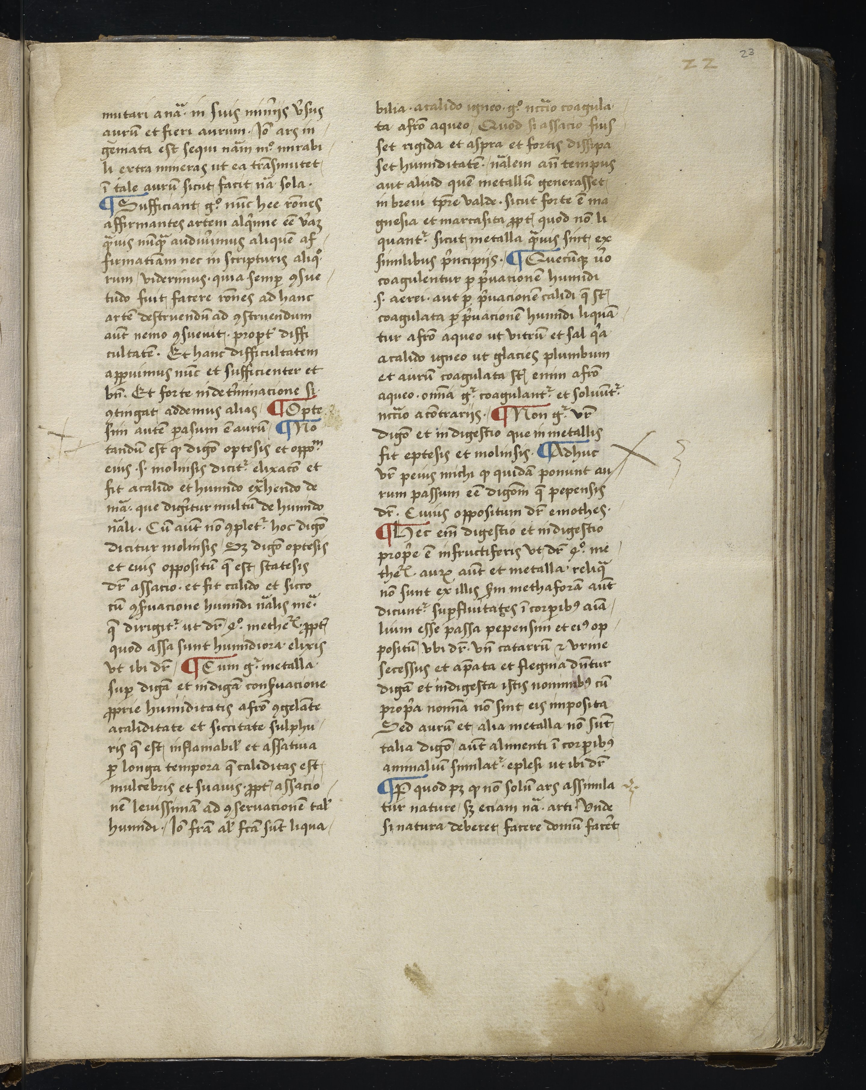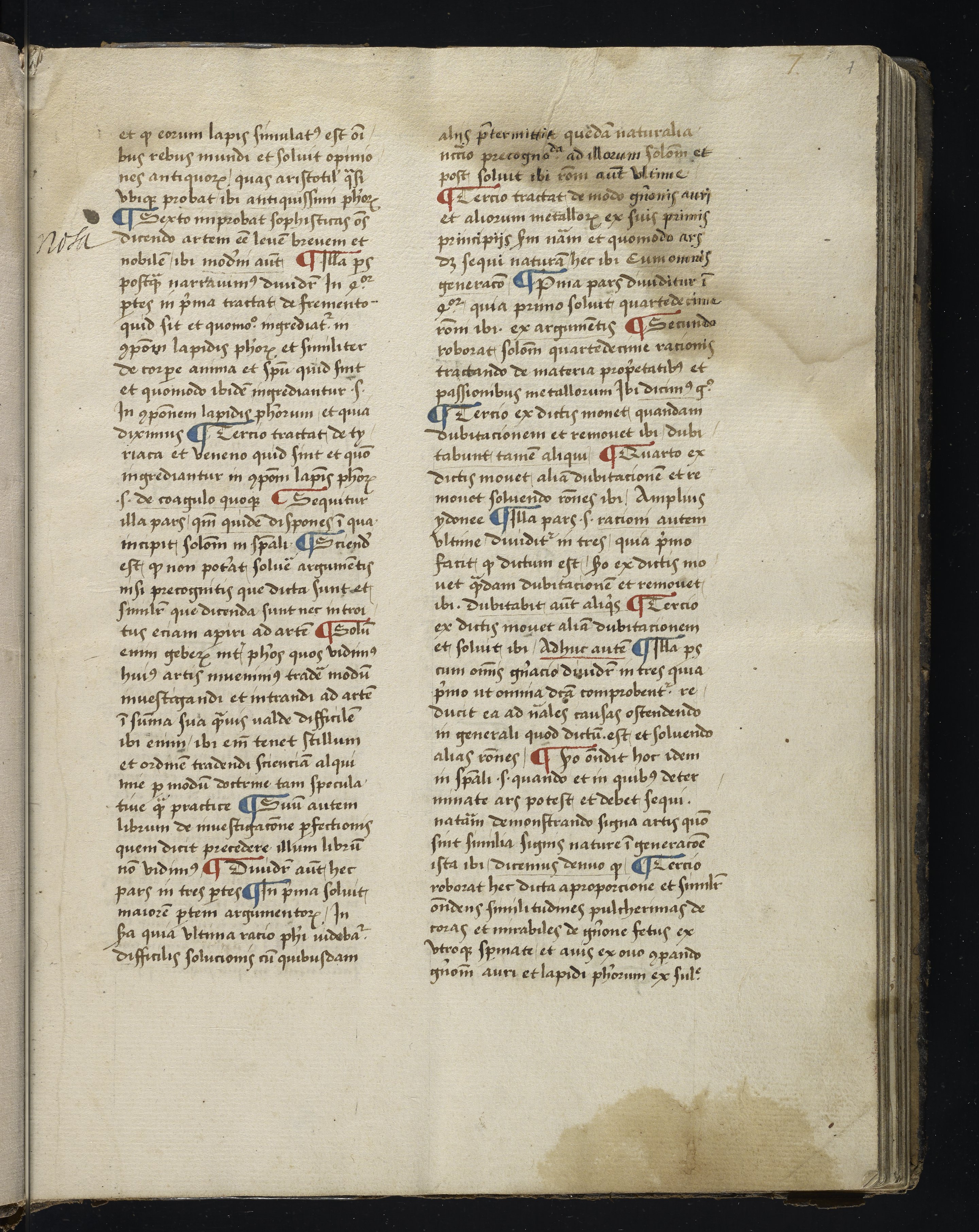 Small JPG1200 x 1511px — 317 KBLarge JPG2880 x 3625px — 1.9 MBFull-sized JPG3844 x 4839px — 3.3 MBOriginal fileTIFF — 3844 x 4839px — 53.3 MBThis is one of only six known complete manuscripts of a 14th-century alchemical treatise; all the extant manuscripts date from the 15th century or later. This copy includes lengthy contemporary glosses, possibly additions to the text, and notes in at least two hands.