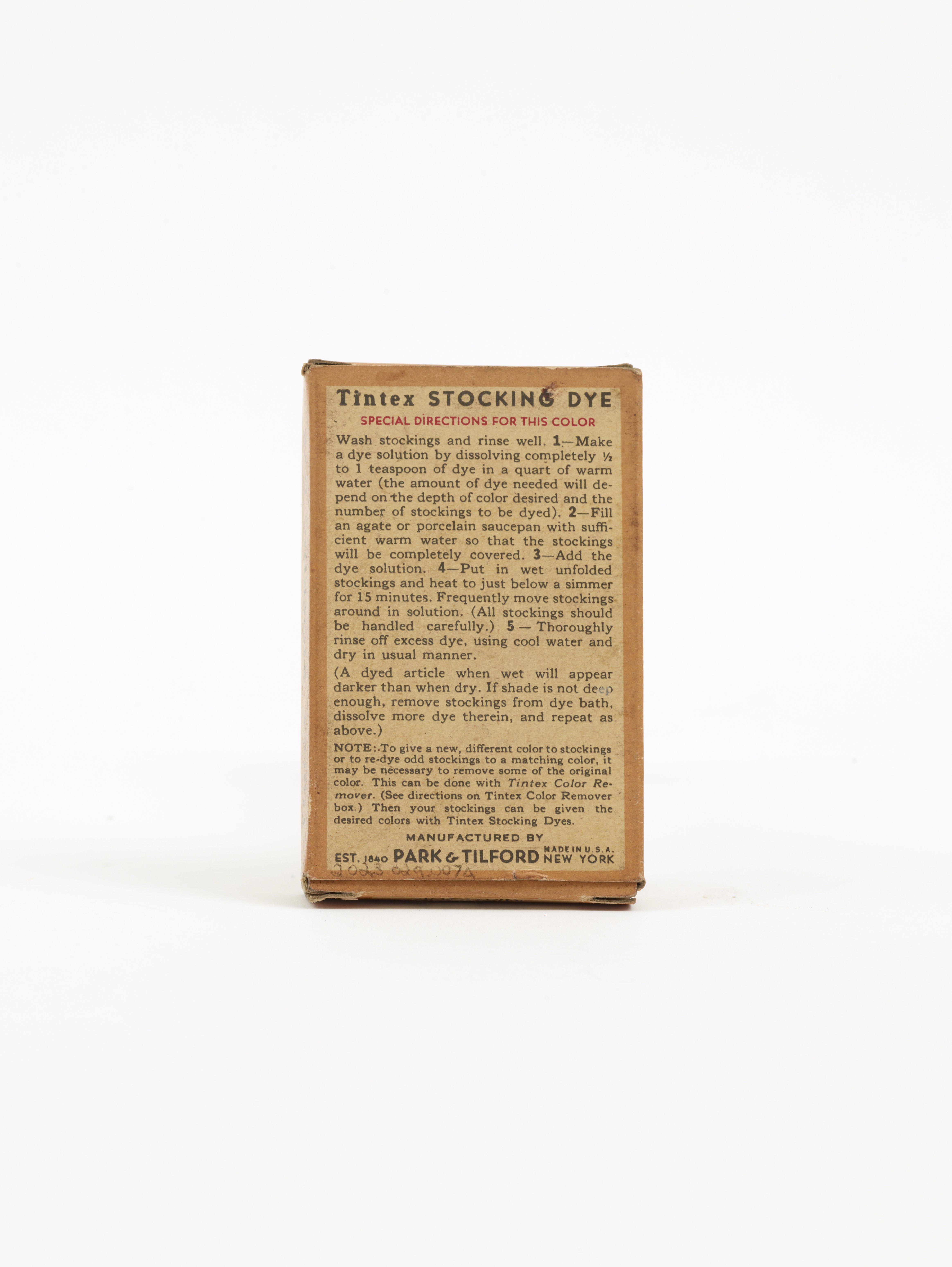 Science History Institute. Tintex Mistique Stocking Dye. Photograph, 2023. Science History Institute. Philadelphia. https://digital.sciencehistory.org/works/pnyd47e.