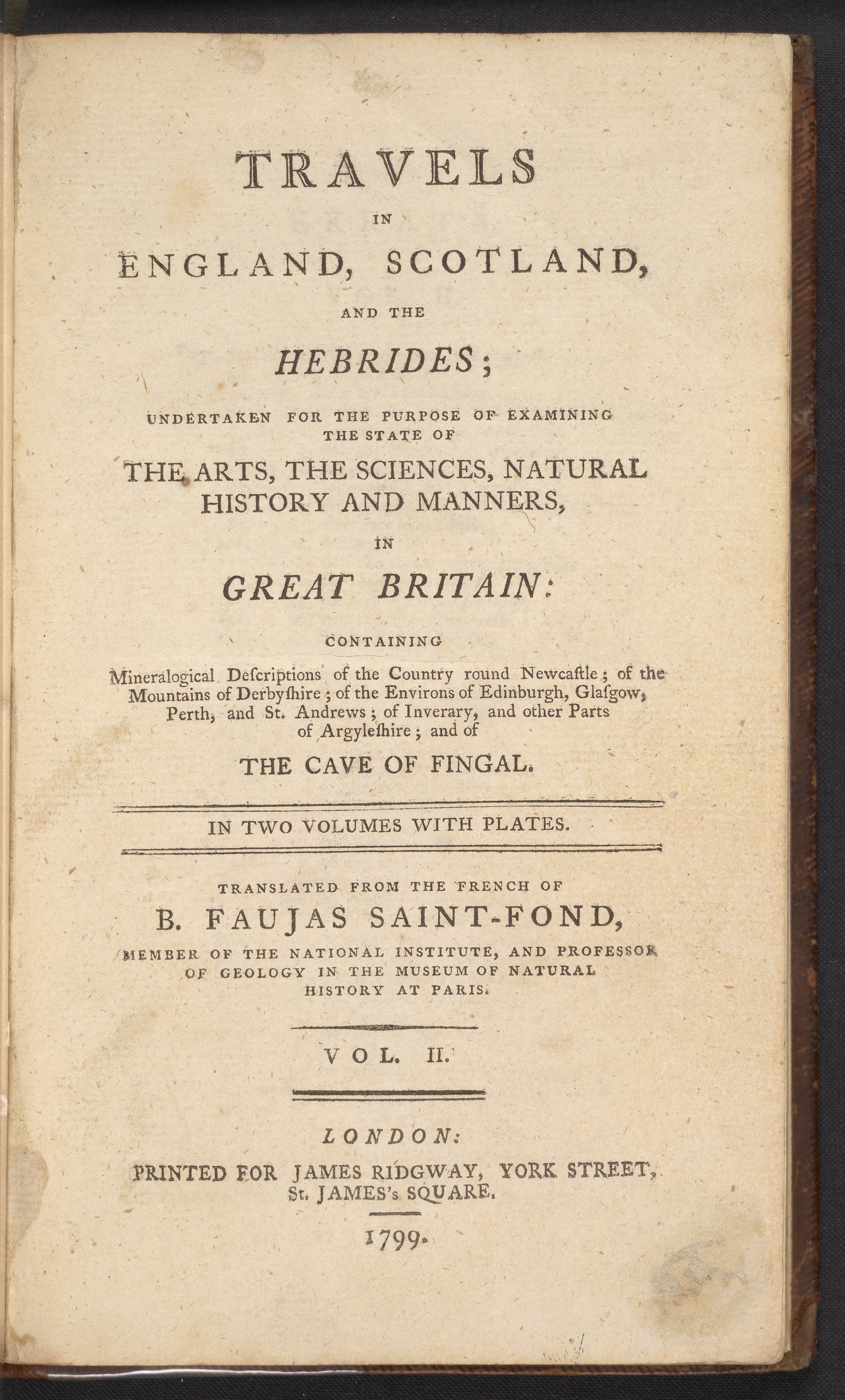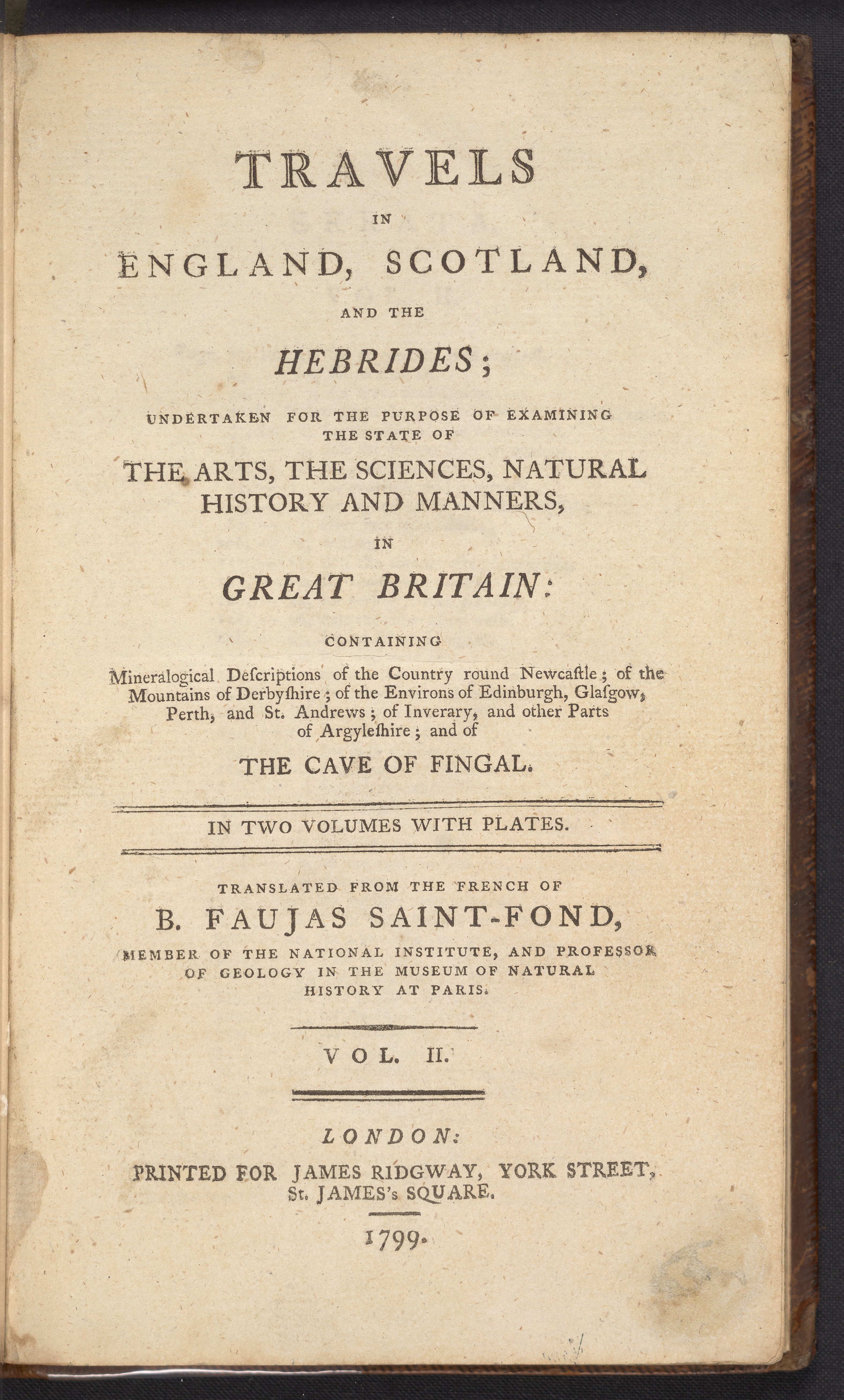 • containing mineralogical descriptions of the country round Newcastle ; of the mountains of Derbyshire ; of the environs of Edinburgh, Glasgow, Perth, and St. Andrews ; of Inverary, and other parts of Argyleshire ; and of the cave of Fingal.