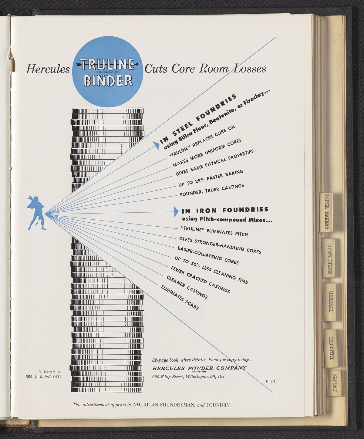 Hercules Incorporated. “Hercules Truline Binder Cuts Core Room Losses.” 1949 Hercules Advertisements, 1949. Records of Hercules Incorporated, Volume 1949. Science History Institute. Philadelphia. https://digital.sciencehistory.org/works/pv63g1088.