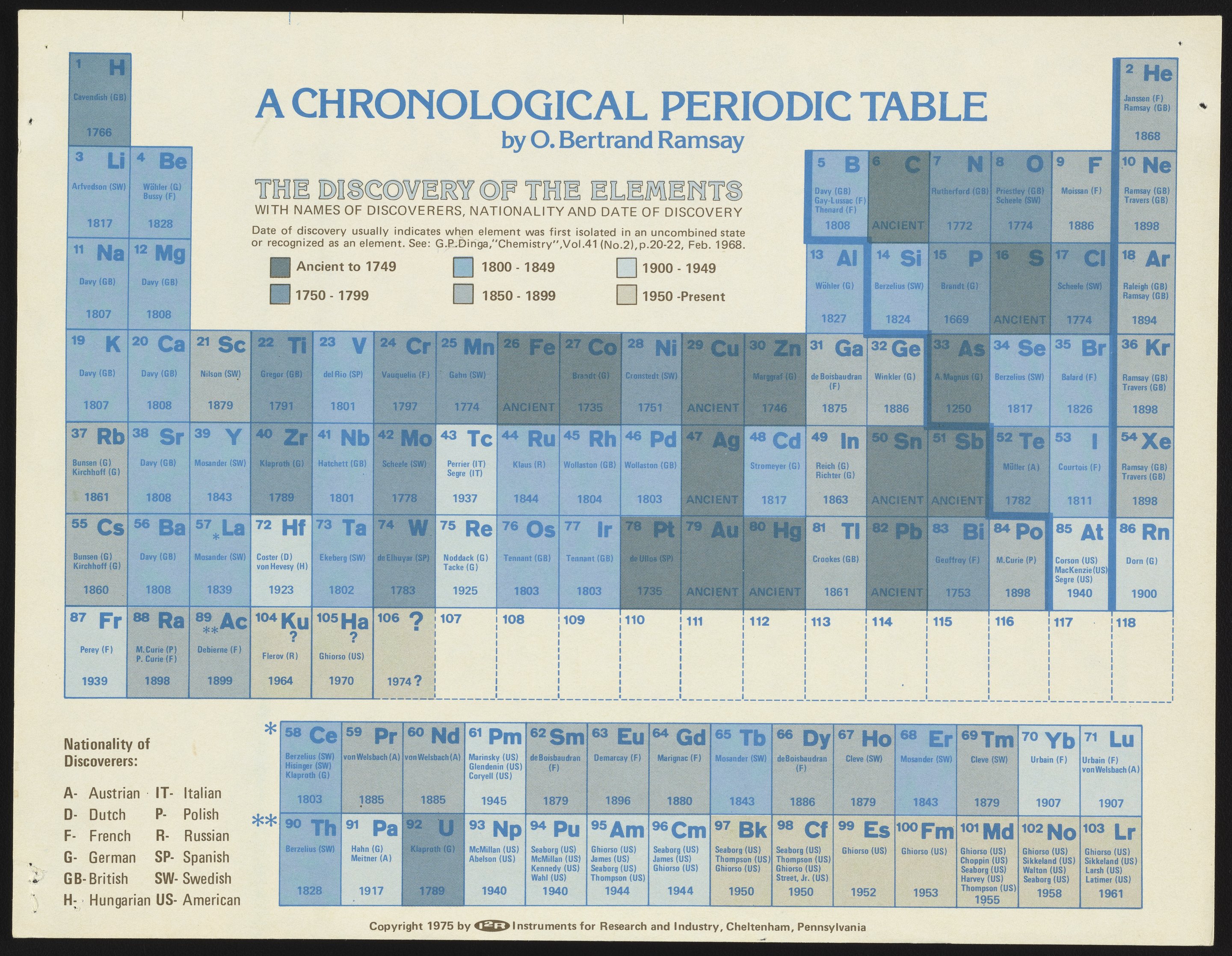 • The Discovery of the Elements with Names of Discoverers, Nationality and Date of Discovery