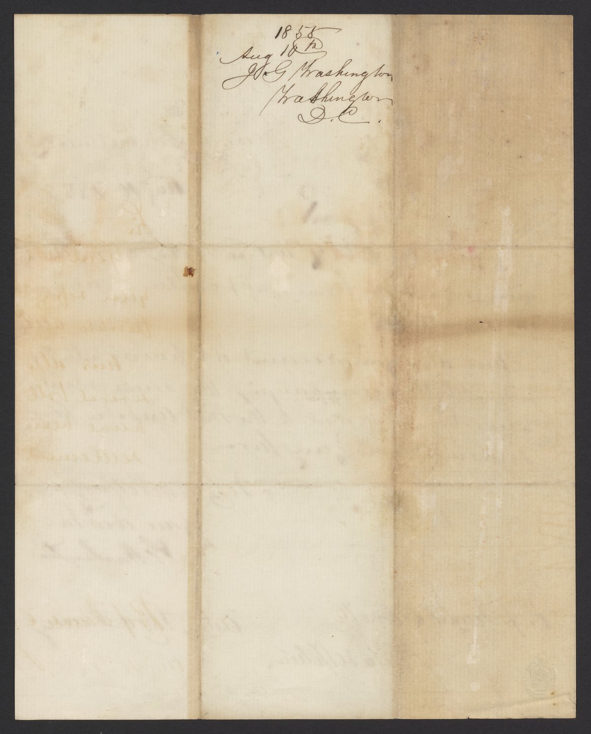 Letter from J. G. Washington to James Curtis Booth, August 10, 1855