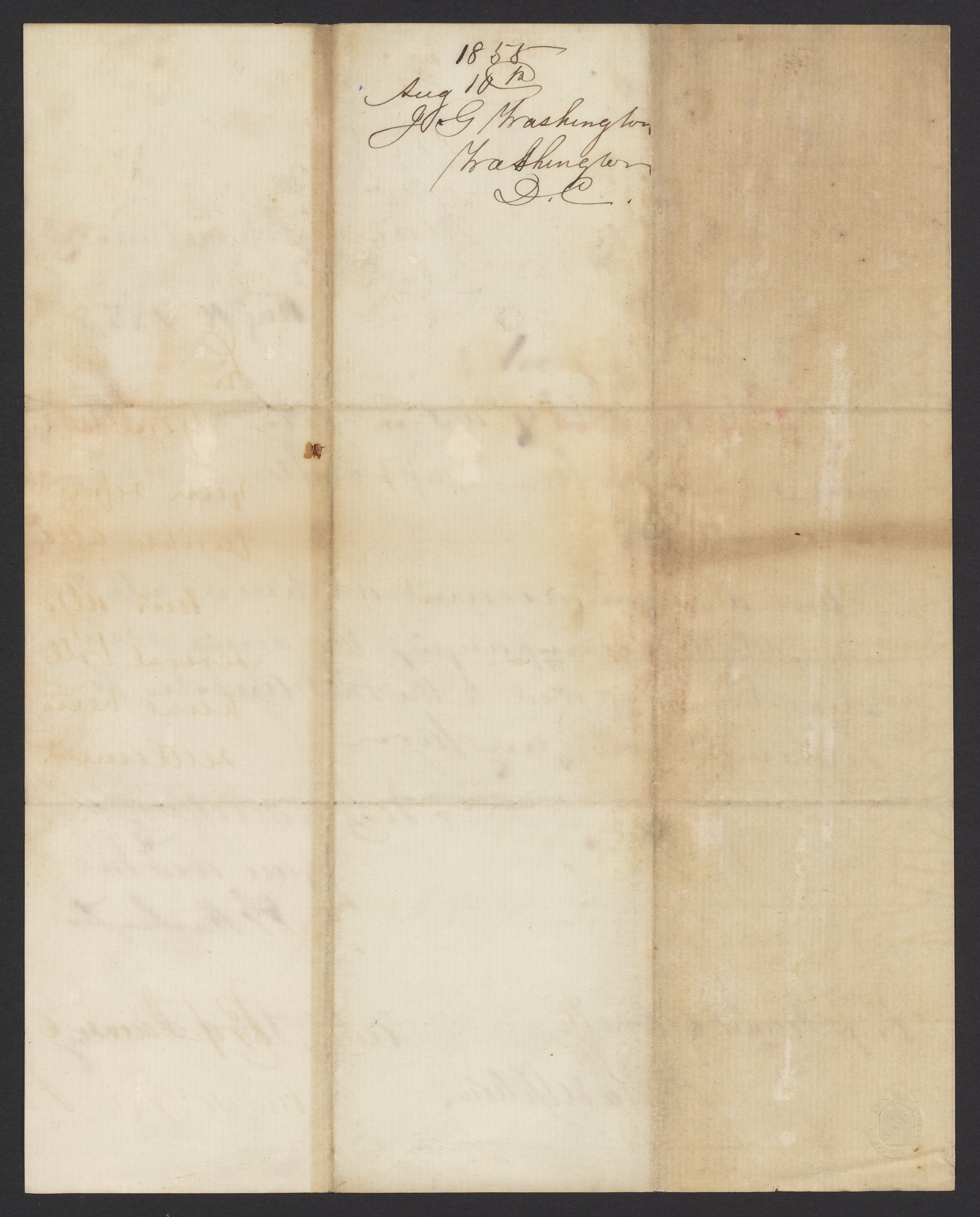Letter from J. G. Washington to James Curtis Booth, August 10, 1855