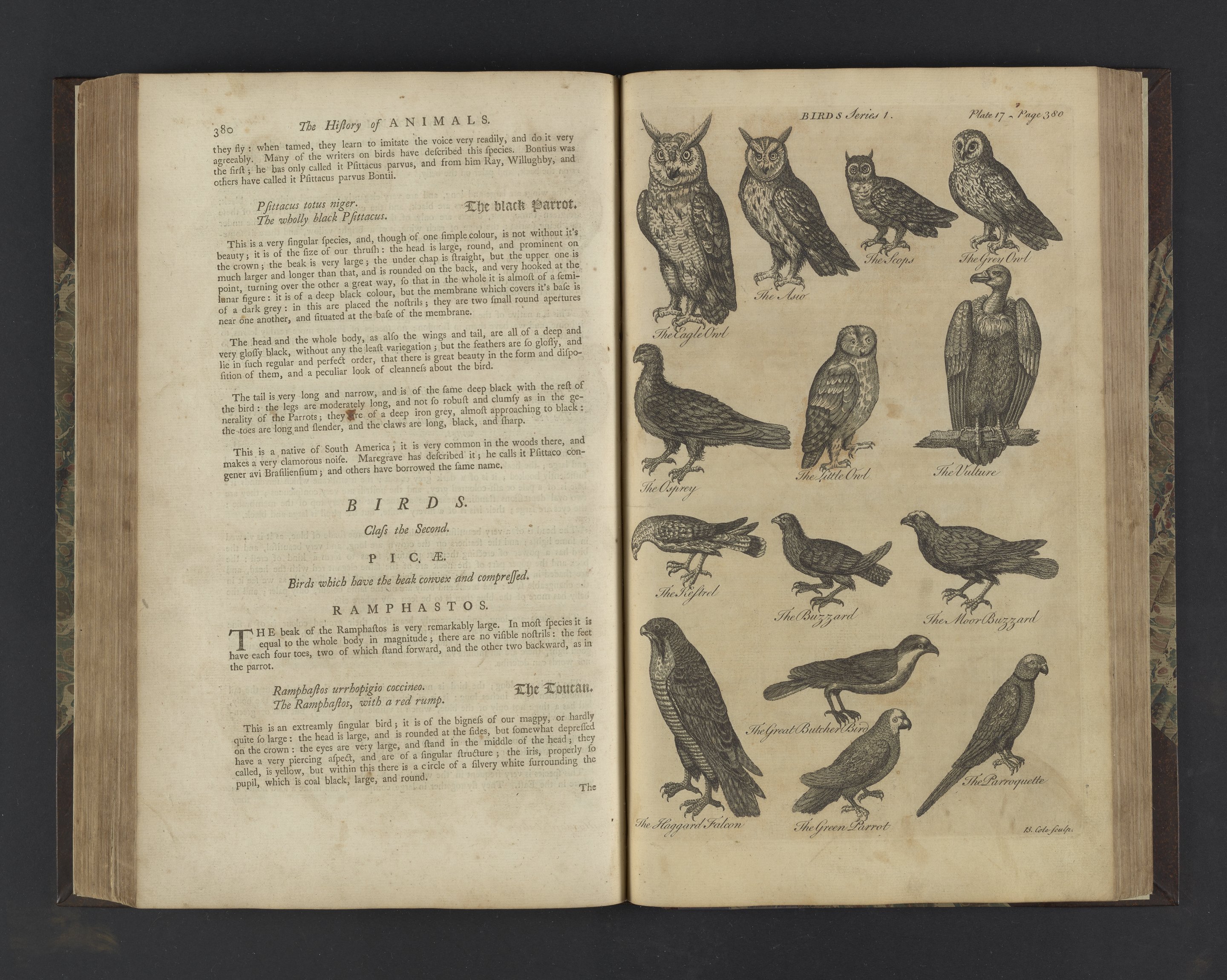 Hill, John. “Plate 17: Birds (Series 1).” In An History of Animals: Containing Descriptions of the Birds, Beasts, Fishes, and Insects, of the Several Parts of the World. London, England, 1752. https://digital.sciencehistory.org/works/pwrbzww.