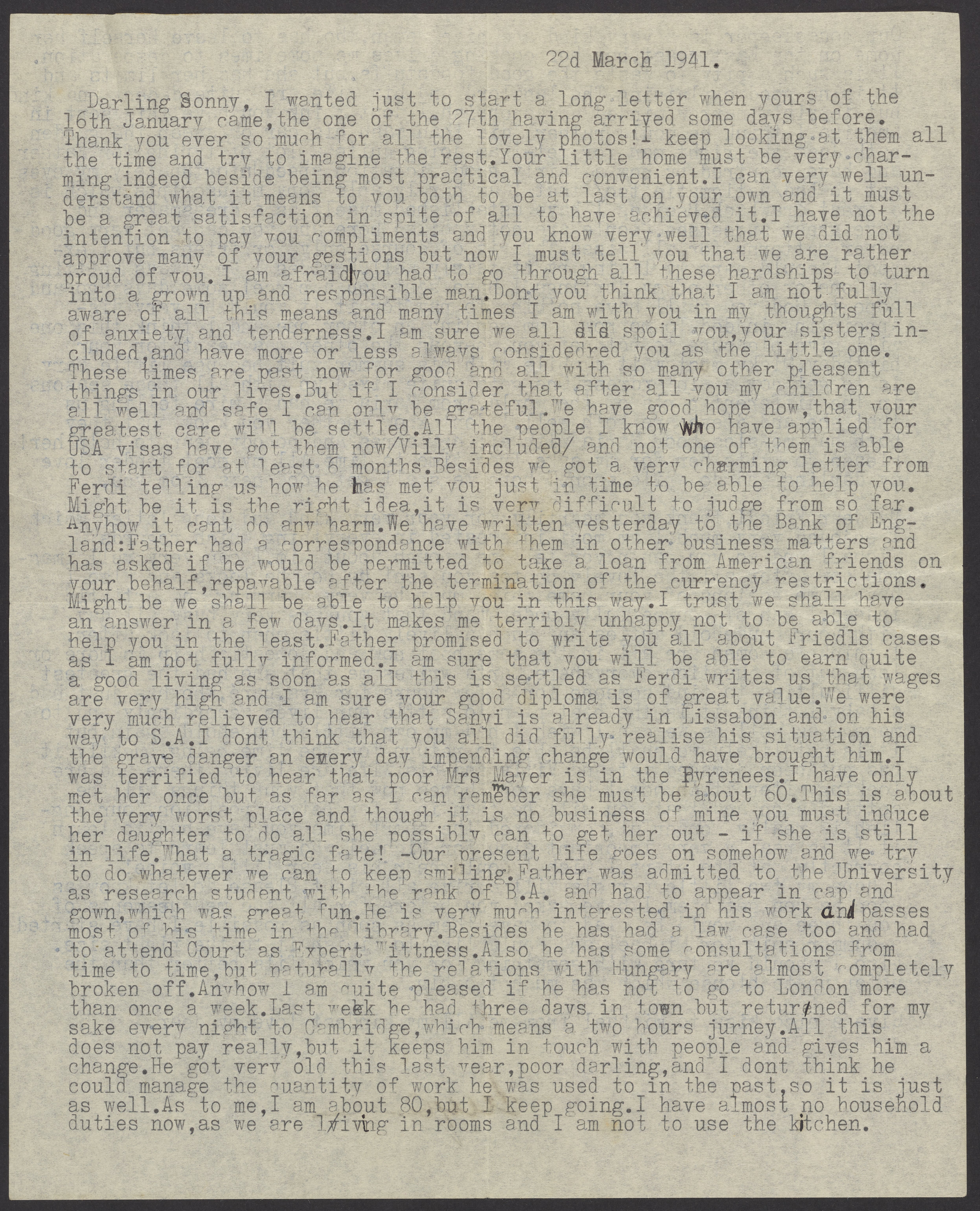 Letter to Gabor B. Levy from Margaret Levy, March 22, 1941