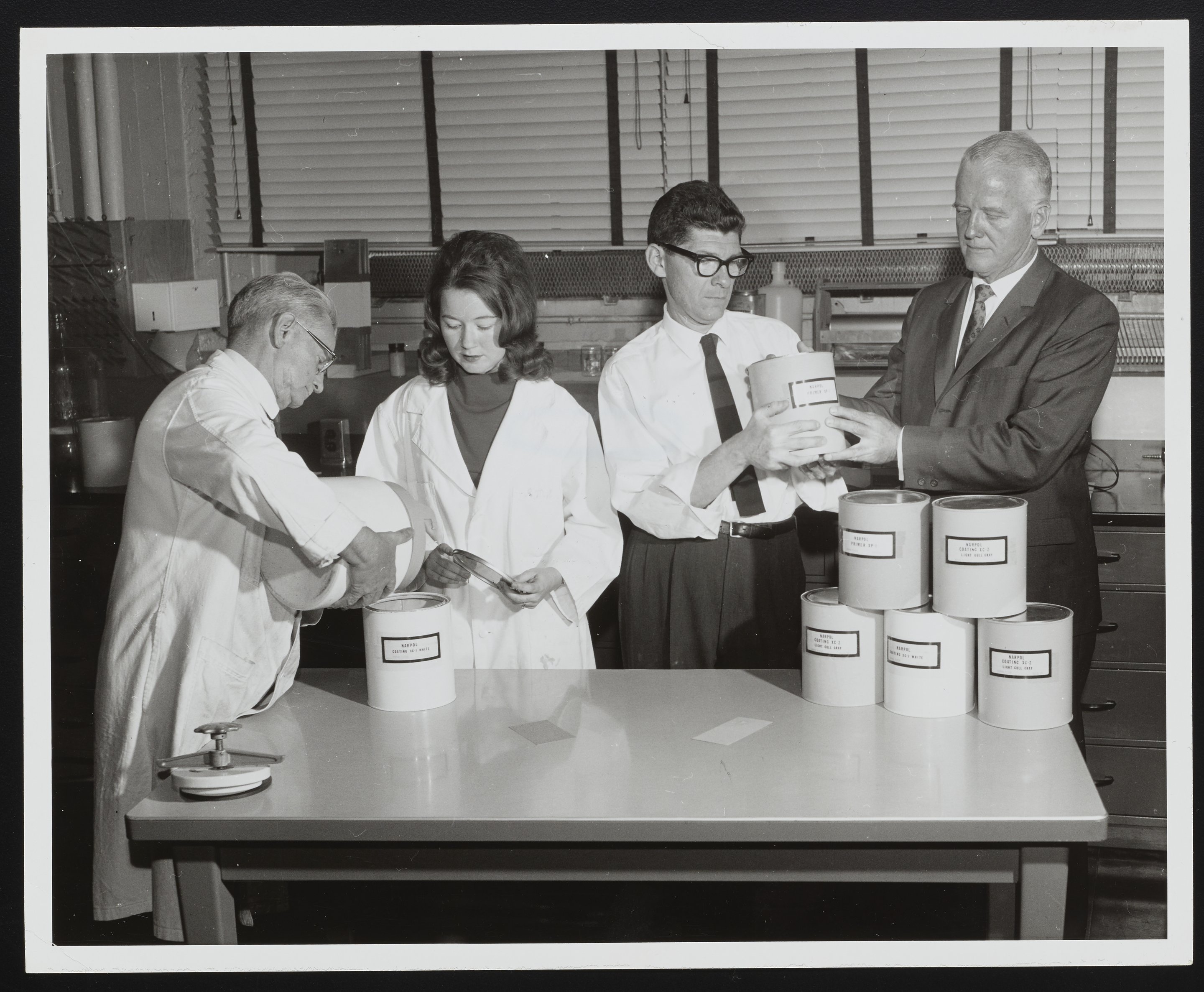 United States. Navy, and Naval Air Engineering Center (U.S.). “Laboratory Staff Examines First Batches of New Polymers,” April 19, 1968. Photographs from the Papers of J. Hartley Bowen, Box 1. Science History Institute. Philadelphia. https://digital.sciencehistory.org/works/pz50gw09d.