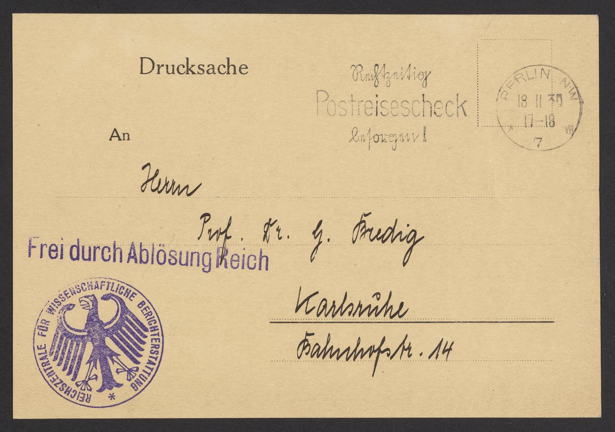 Small JPG1200 x 843px — 166 KBLarge JPG2880 x 2023px — 831 KBFull-sized JPG3741 x 2628px — 1.3 MBOriginal fileTIFF — 3741 x 2628px — 28.2 MBThe Imperial Center for Scientific Reporting informs scientists by postcard that they can order scientific and technical literature from Germany in the form of photograms.