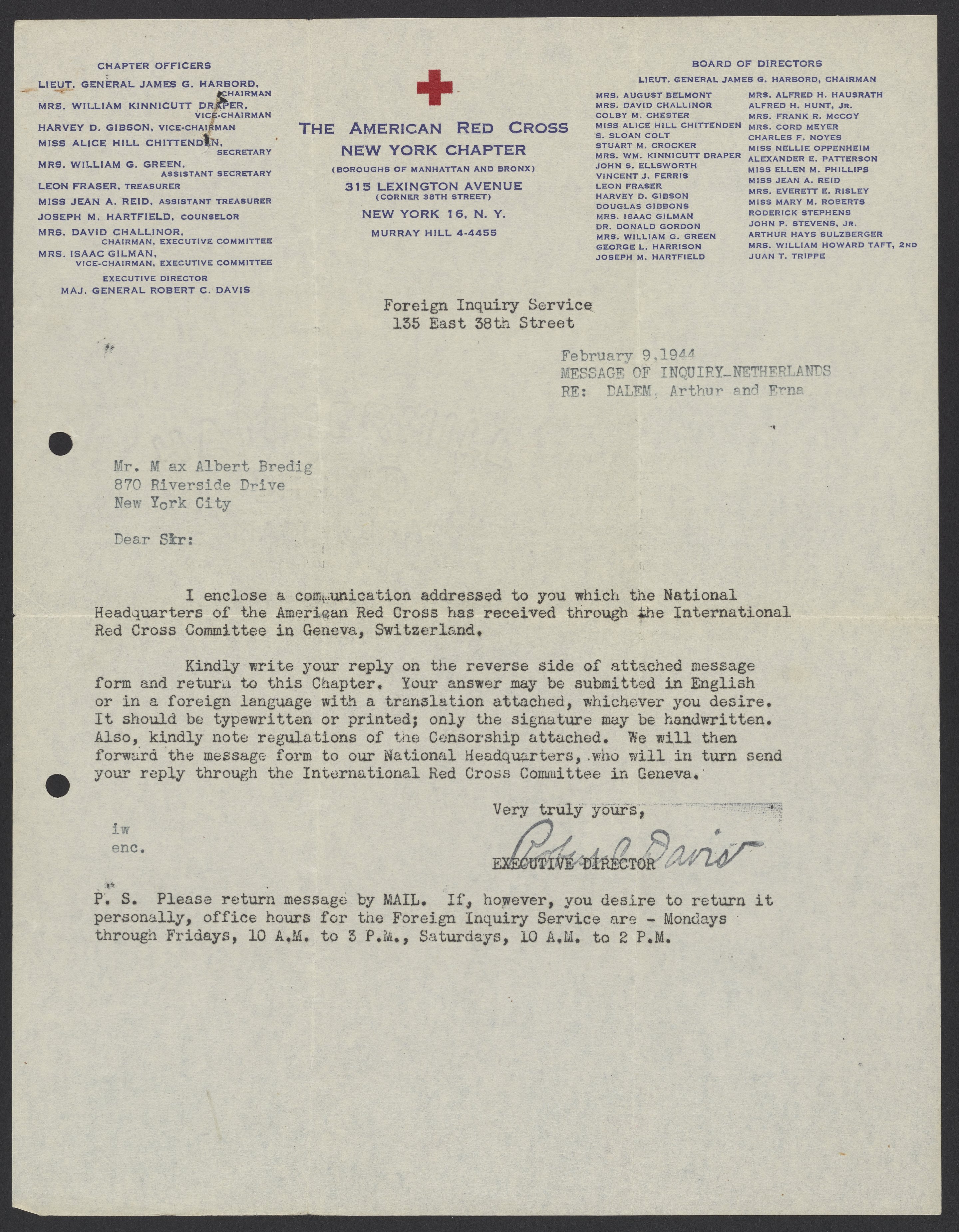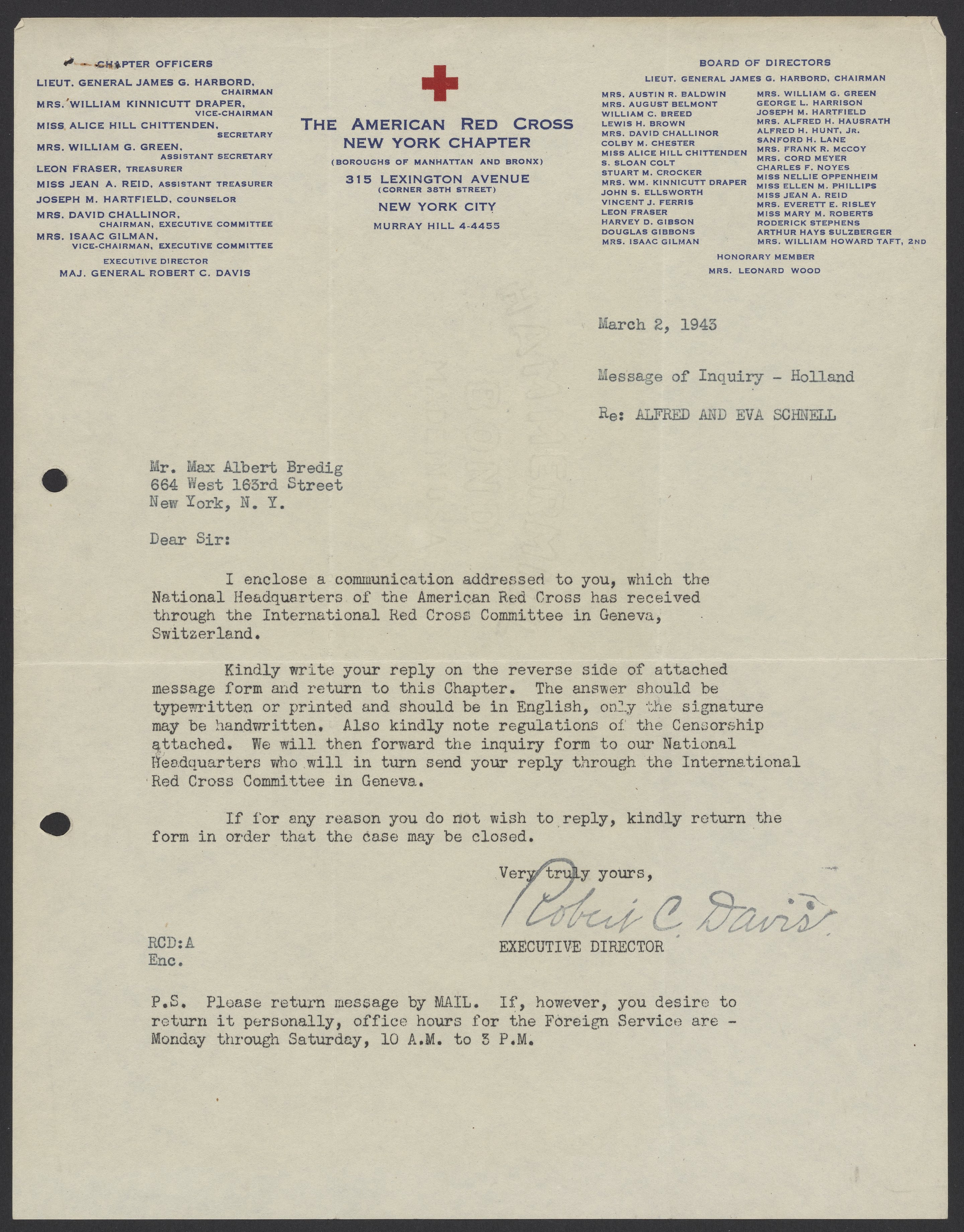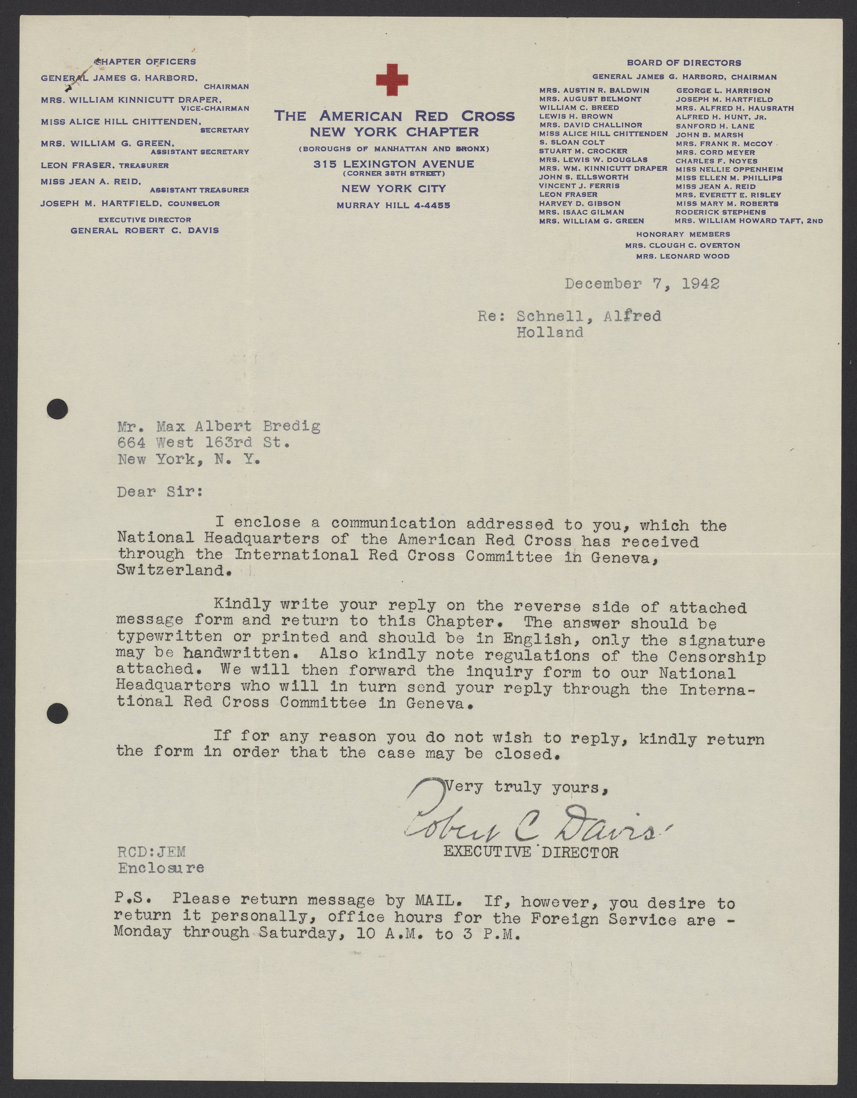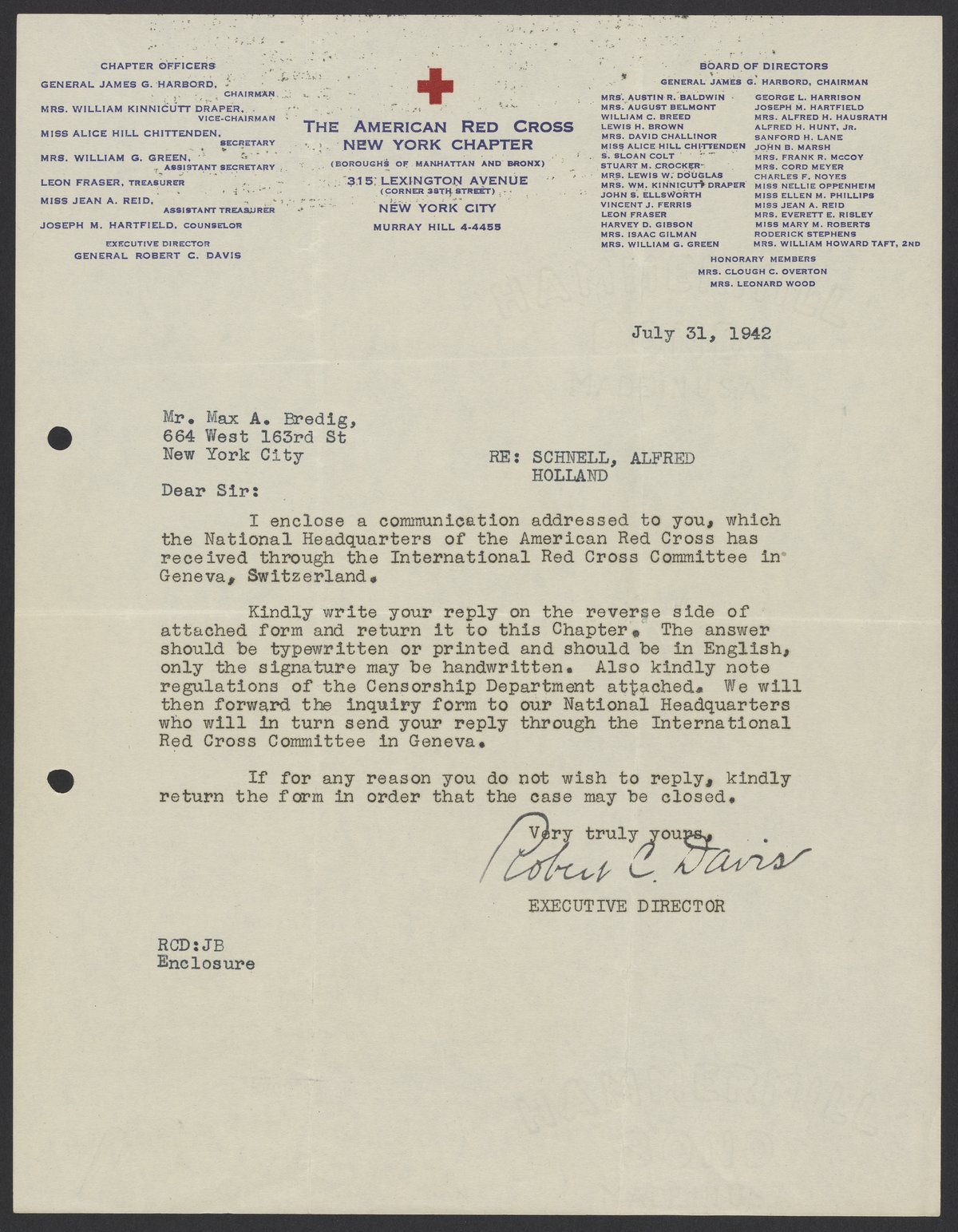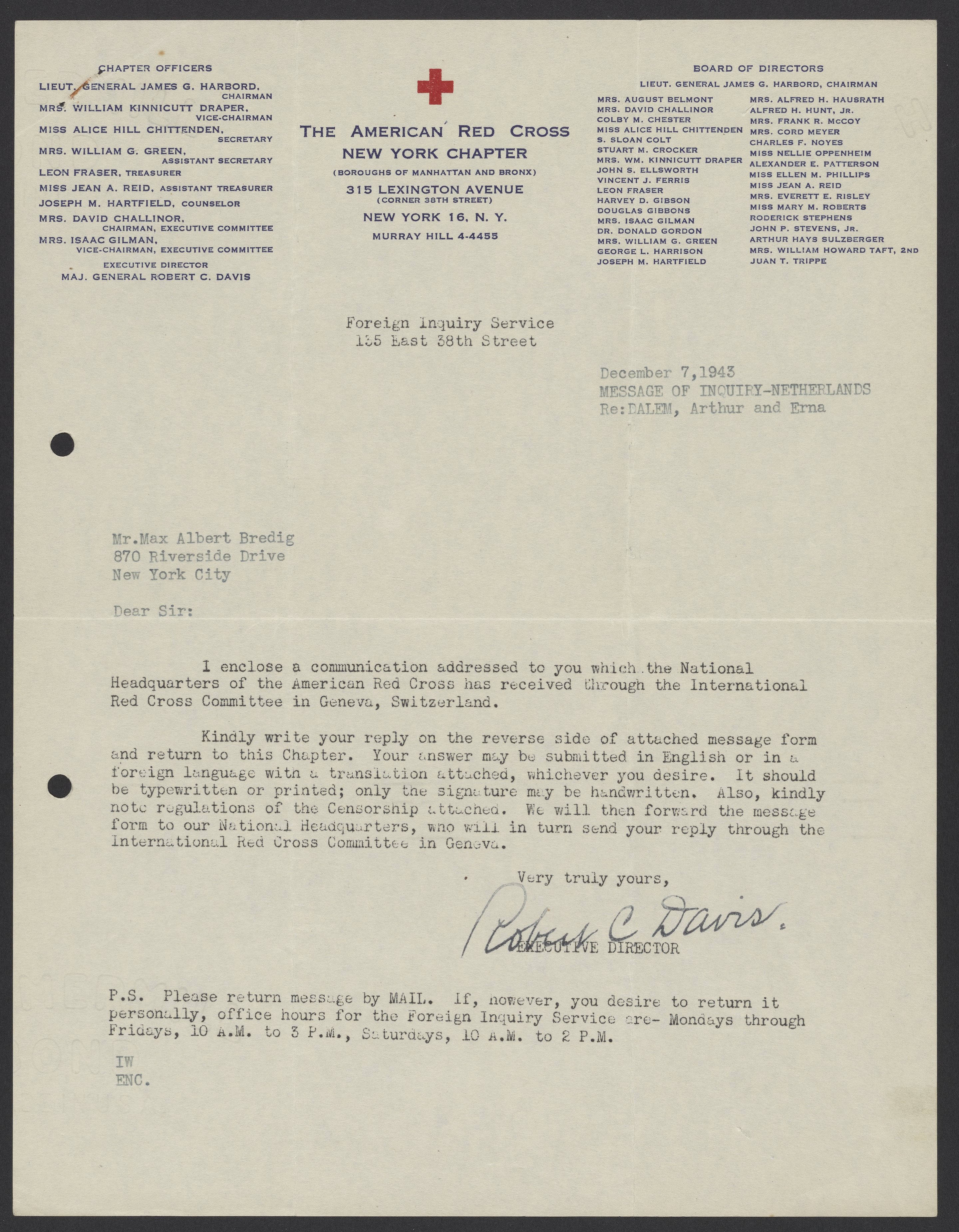 Davis, Robert Courtney. “Letters from the American Red Cross to Max Bredig and Liselotte Zadek, 1942-1945,” 1942–1945. Papers of Georg and Max Bredig, Box 9, Folder 8. Science History Institute. Philadelphia. https://digital.sciencehistory.org/works/q66uyqi.