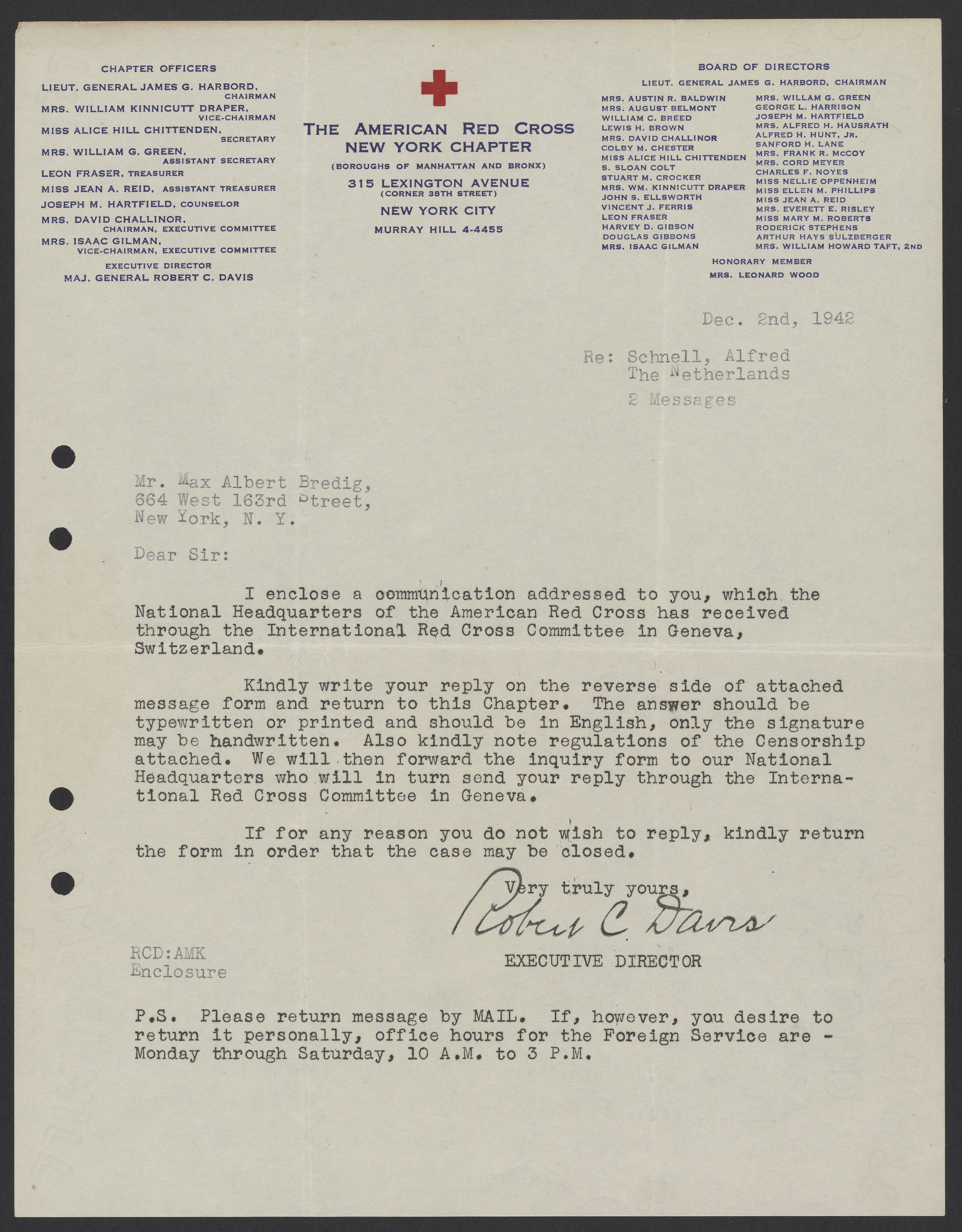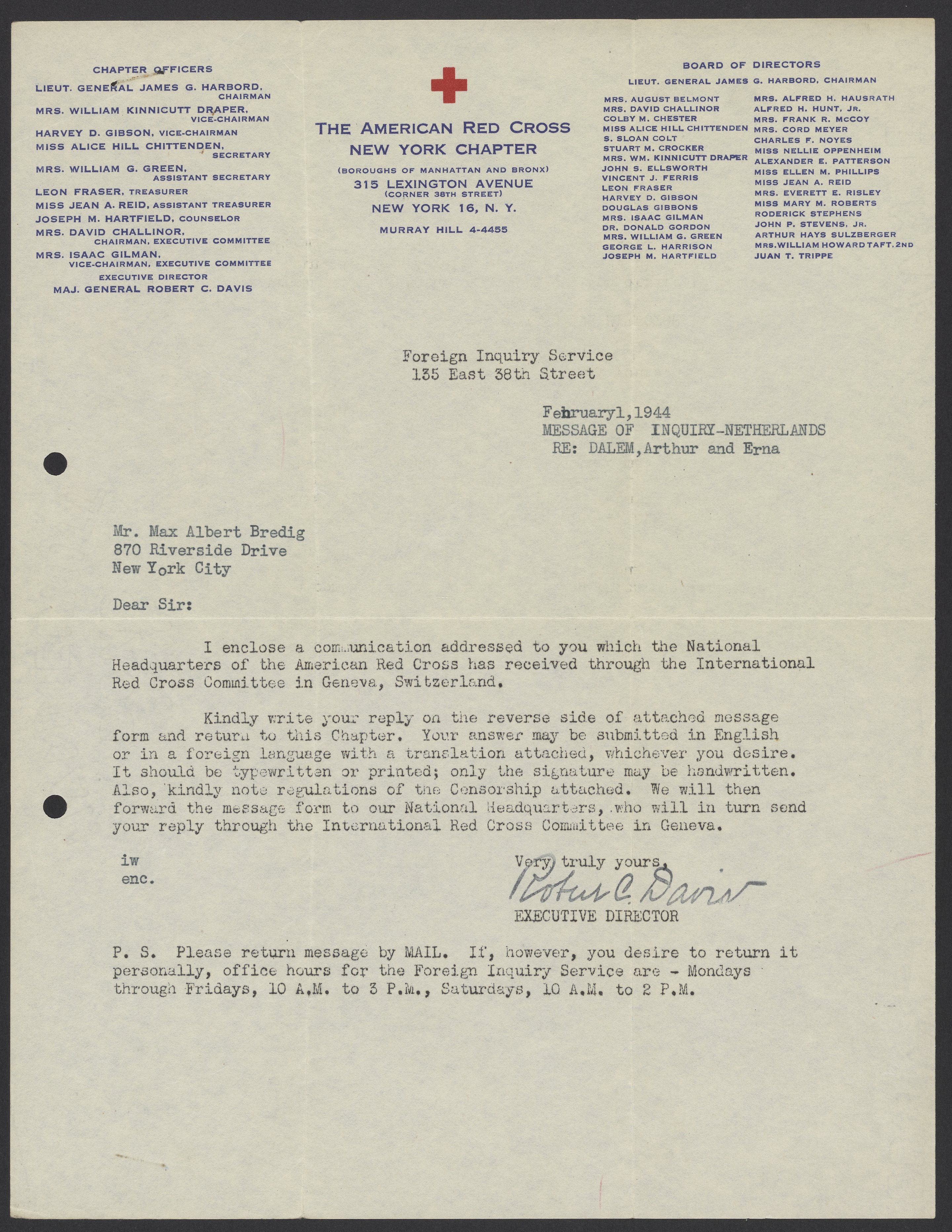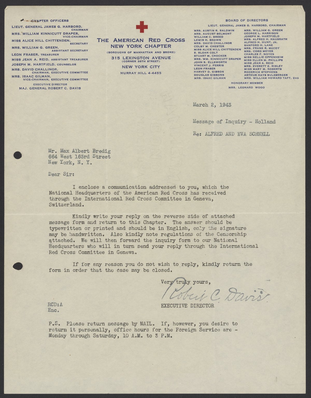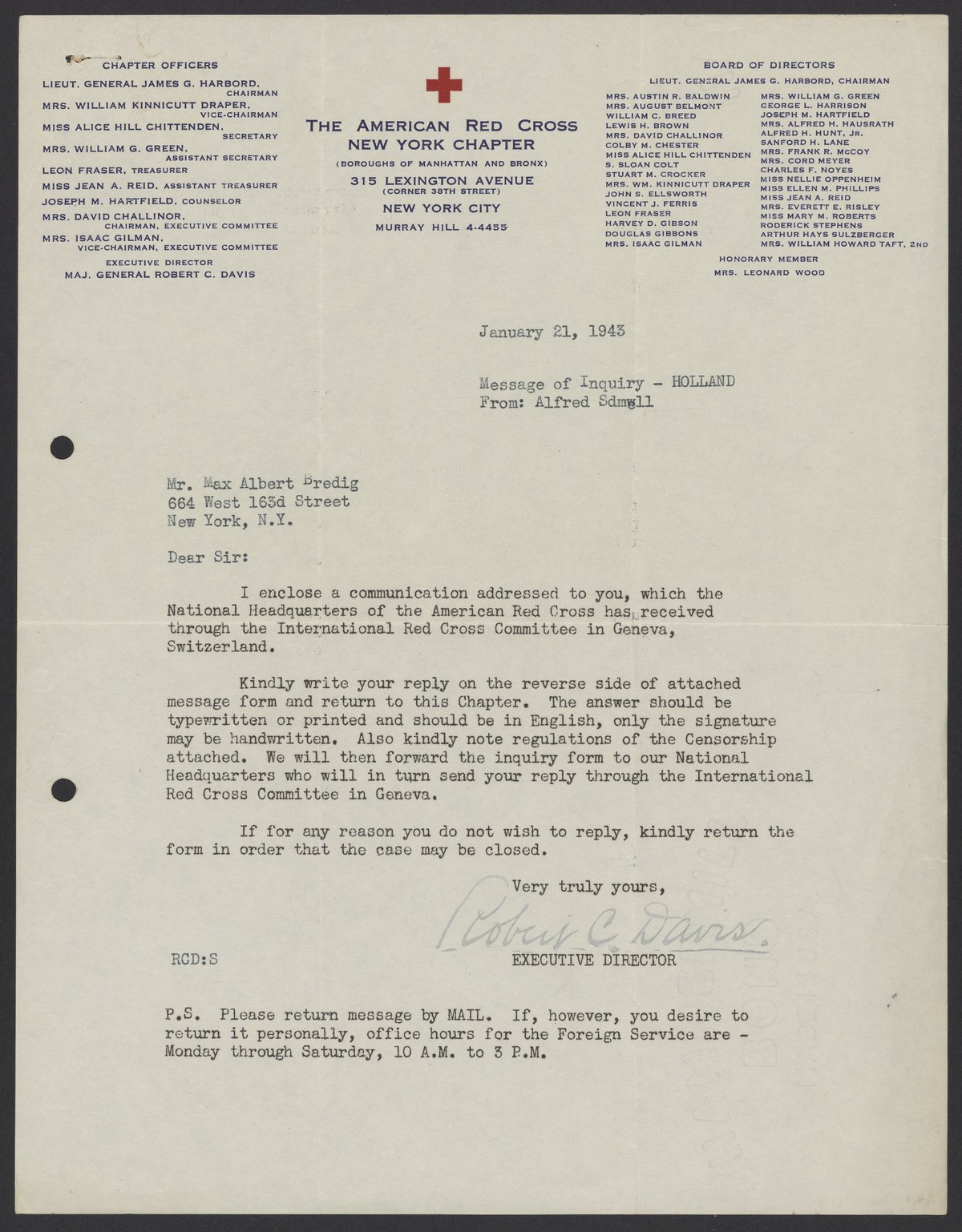 Davis, Robert Courtney. “Letters from the American Red Cross to Max Bredig and Liselotte Zadek, 1942-1945,” 1942–1945. Papers of Georg and Max Bredig, Box 9, Folder 8. Science History Institute. Philadelphia. https://digital.sciencehistory.org/works/q66uyqi.
