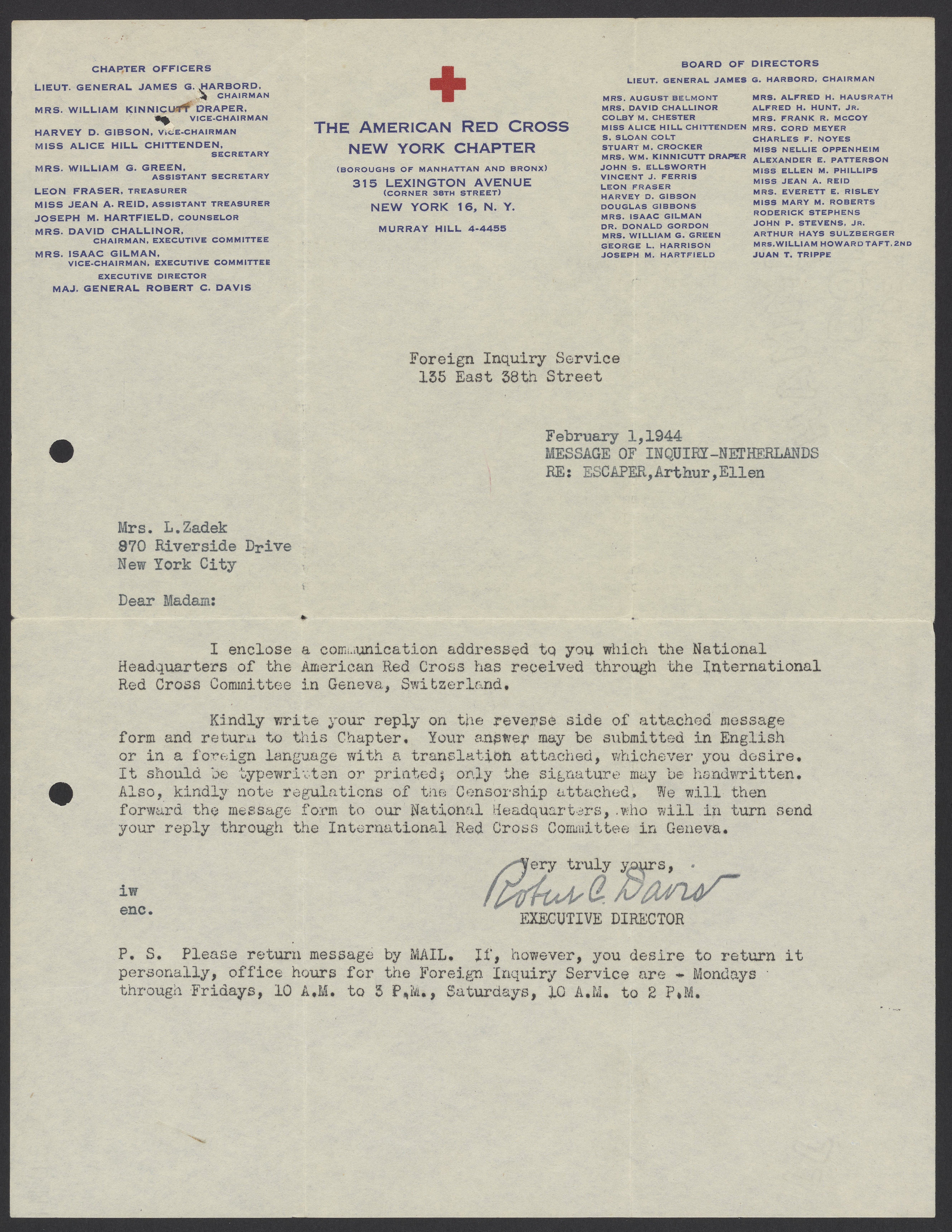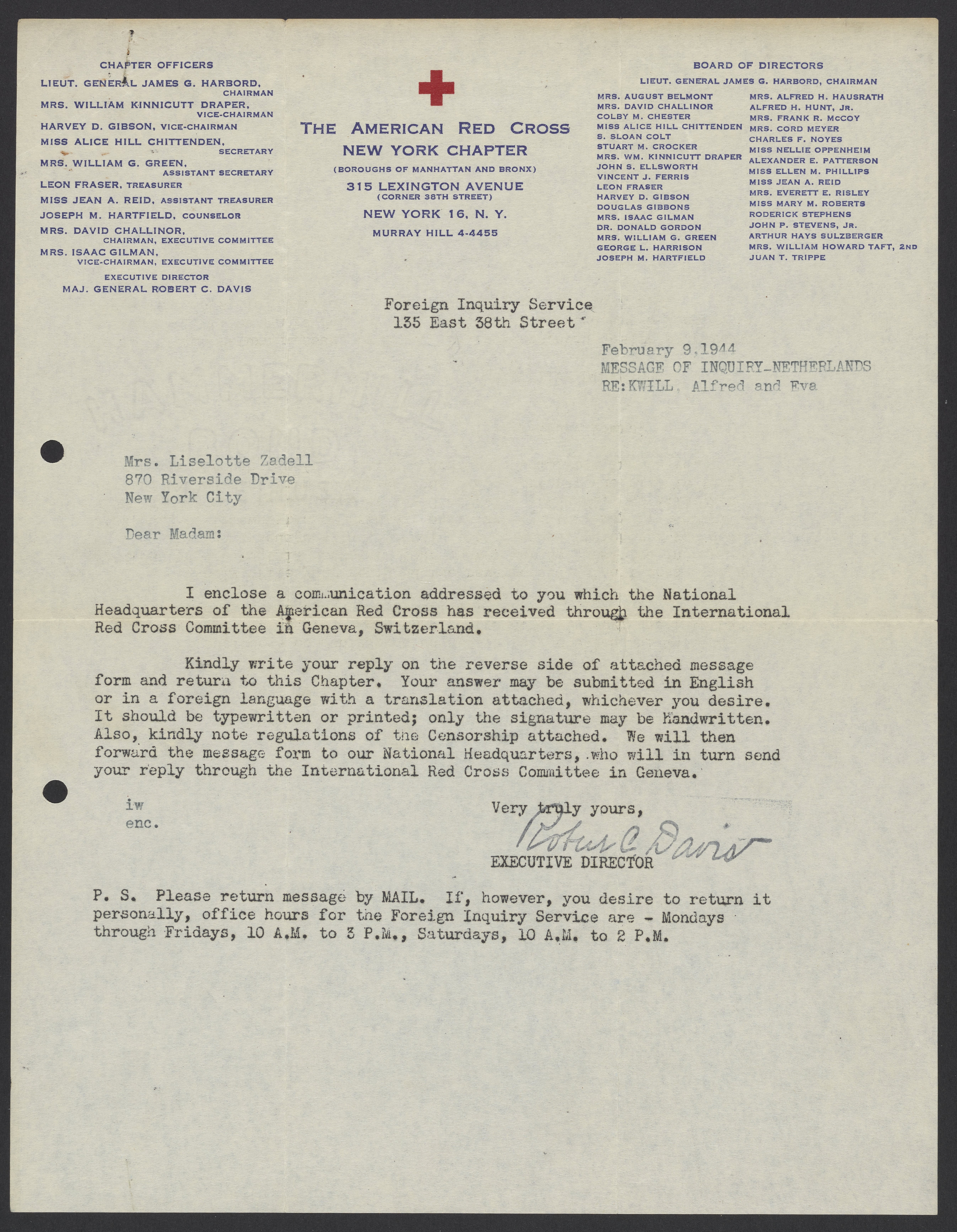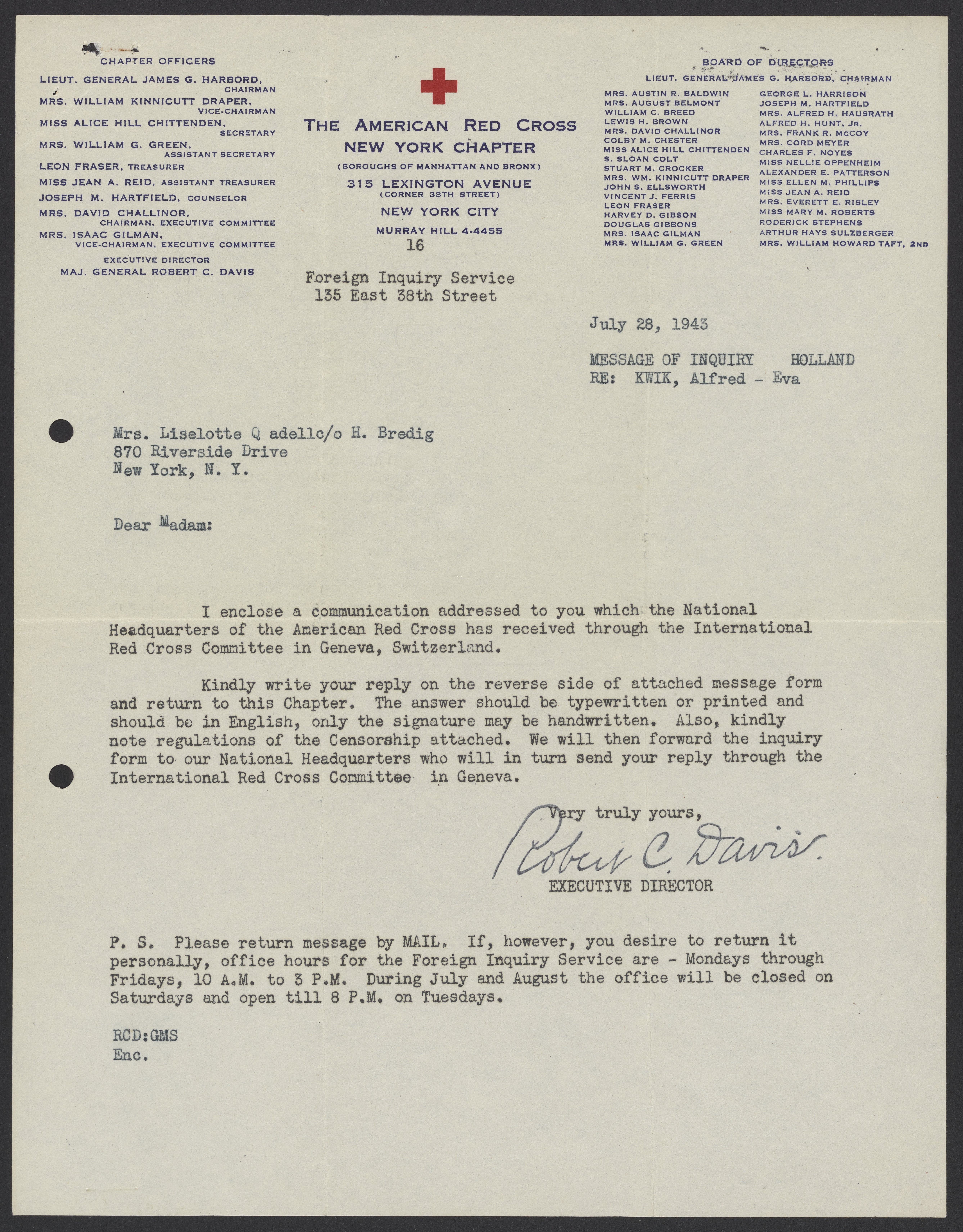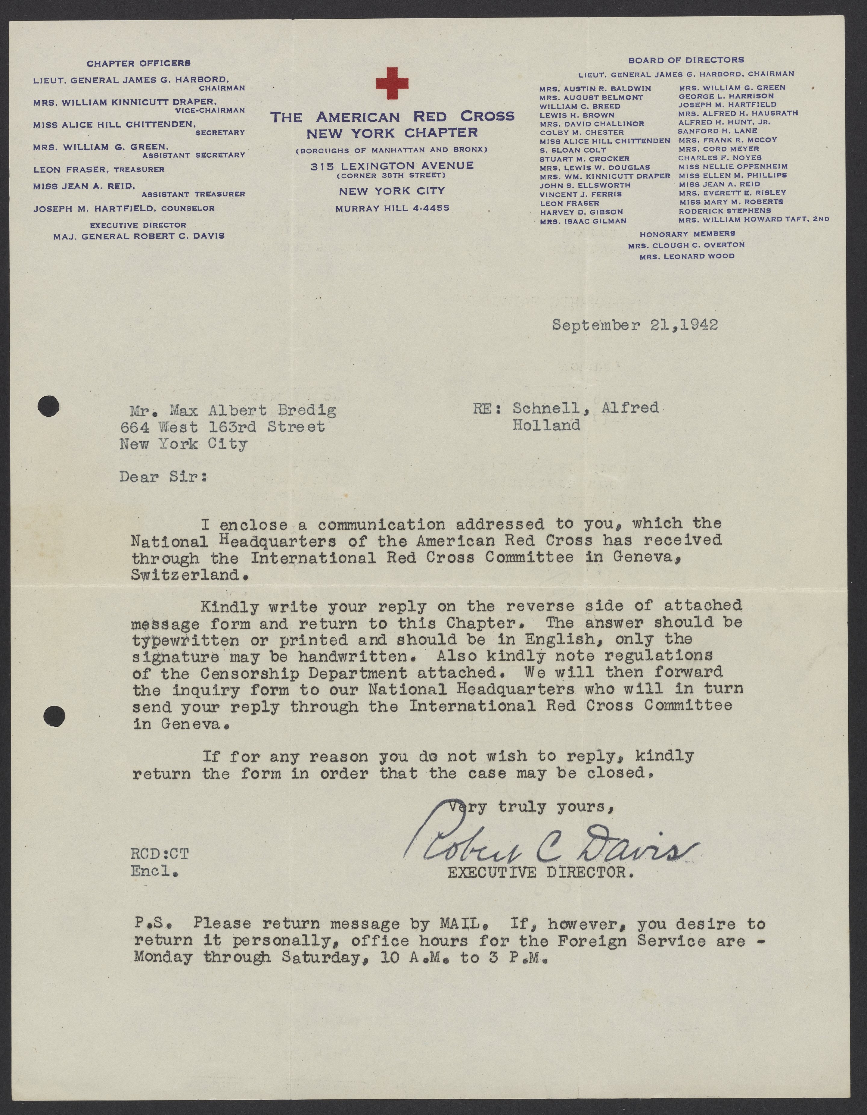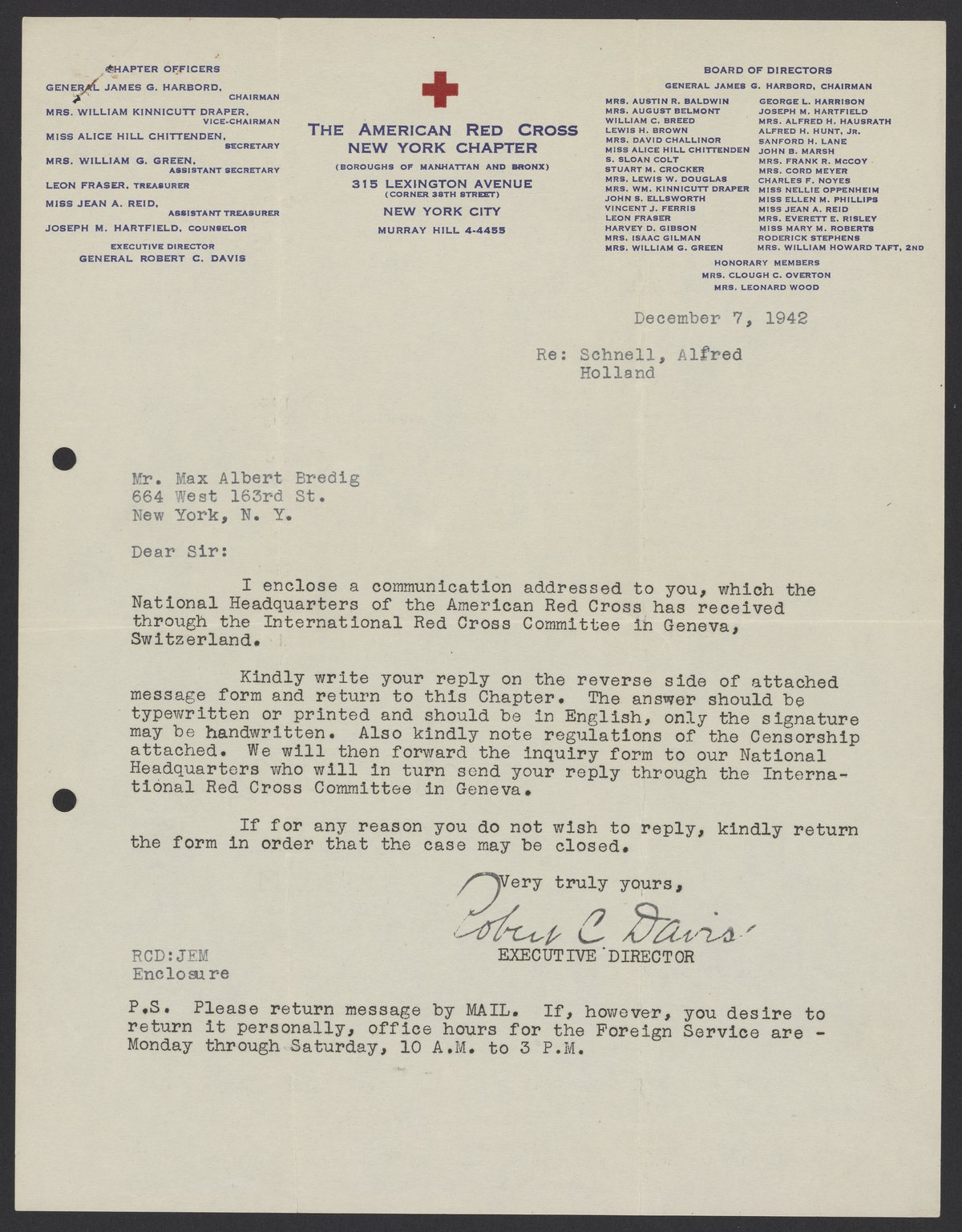 Davis, Robert Courtney. “Letters from the American Red Cross to Max Bredig and Liselotte Zadek, 1942-1945,” 1942–1945. Papers of Georg and Max Bredig, Box 9, Folder 8. Science History Institute. Philadelphia. https://digital.sciencehistory.org/works/q66uyqi.
