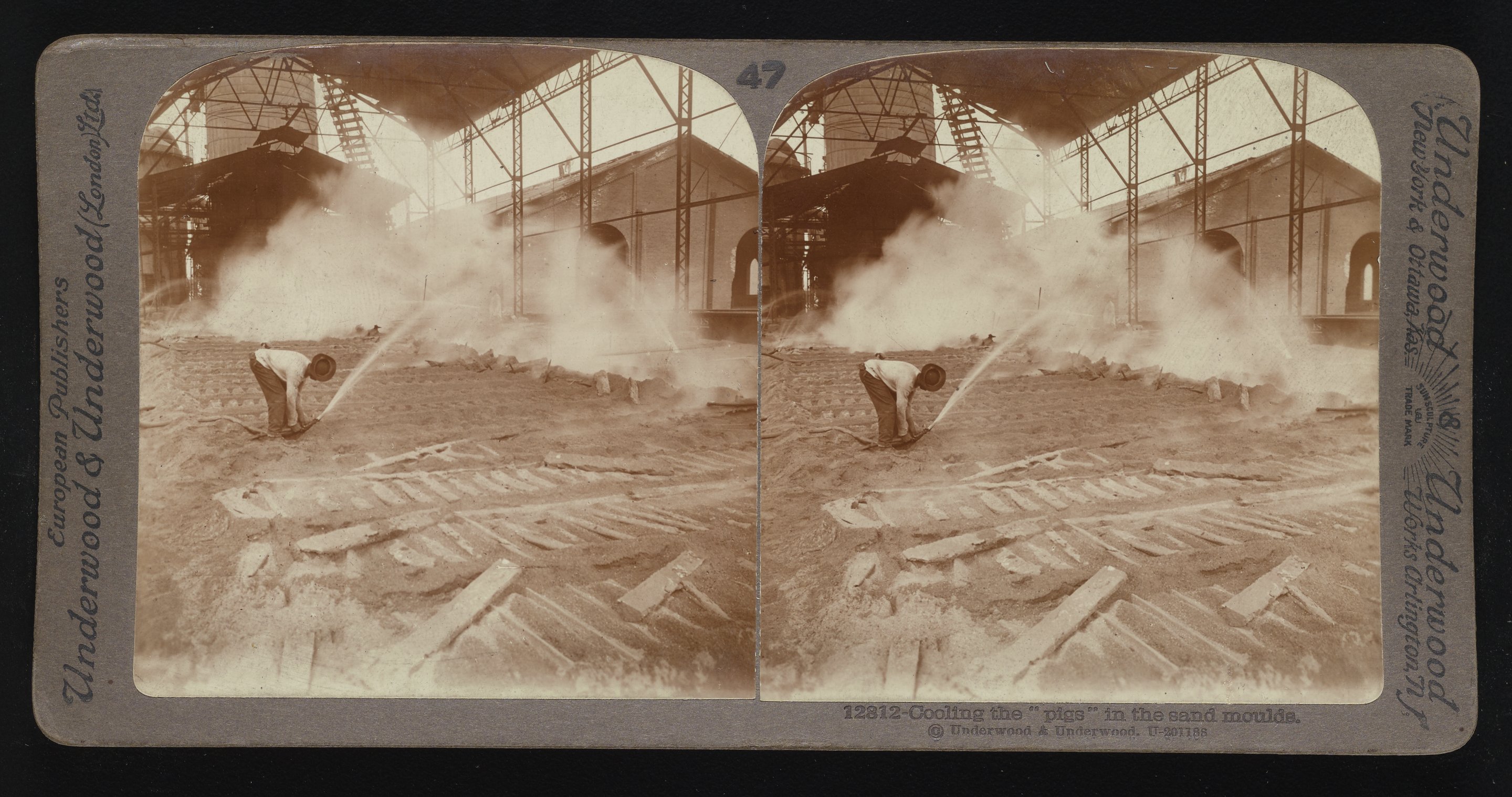 “Cooling the ‘Pigs’ in the Sand Moulds.” Underwood & Underwood, n.d. Underwood & Underwood Stereographs of Manufacturing Industries. Science History Institute. Philadelphia. https://digital.sciencehistory.org/works/q811kj61g.