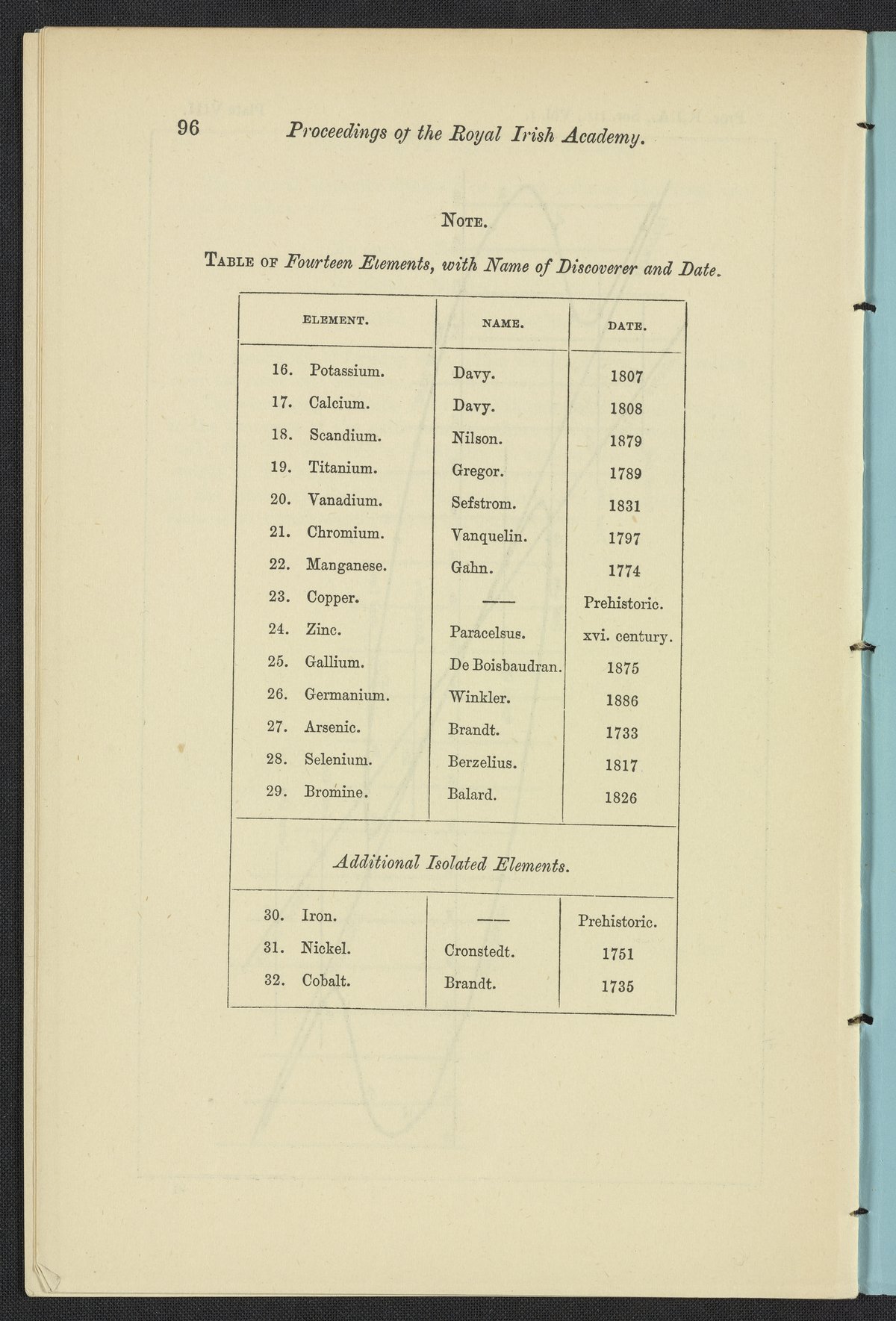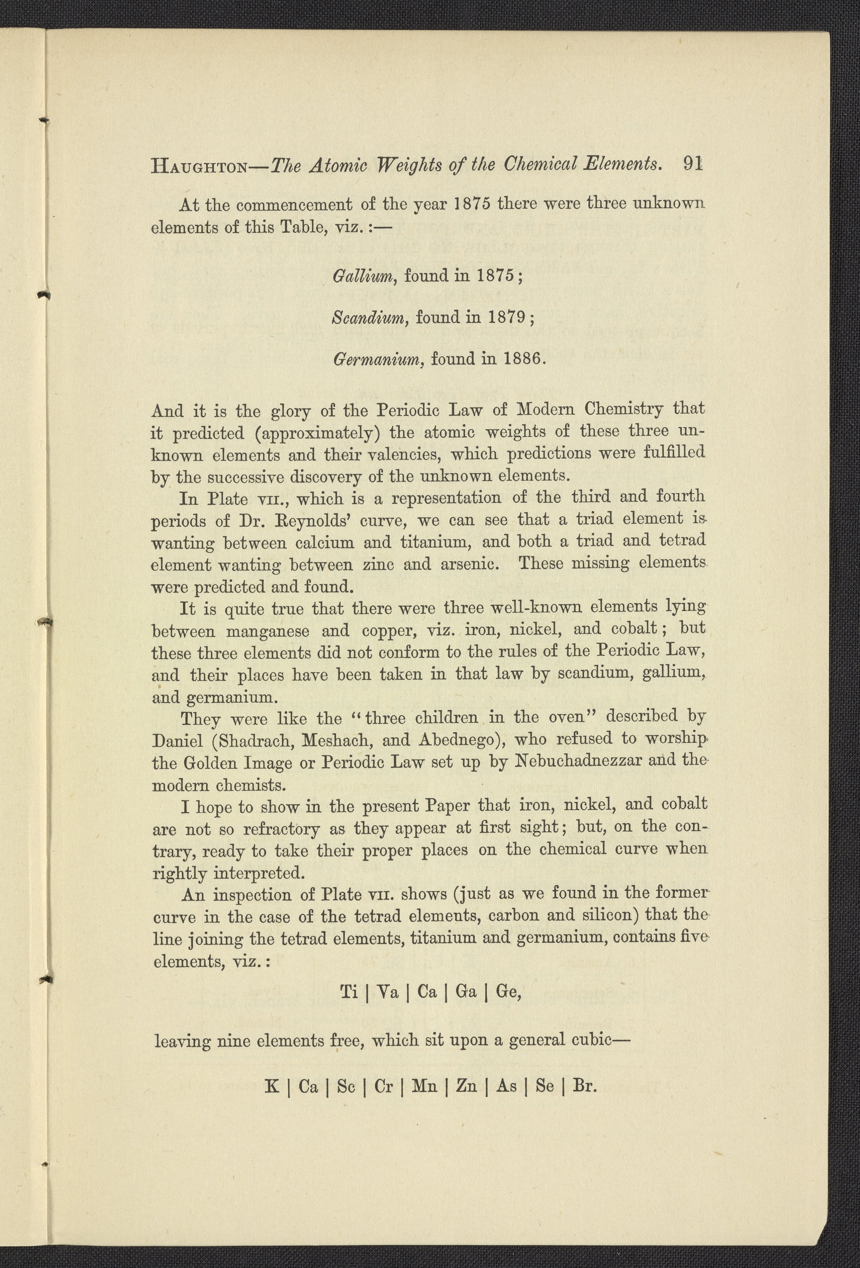 Haughton, Samuel. “Geometrical Illustrations of Newlands' and Mendelejeff's Periodic Law of the Atomic Weights of the Chemical Elements.” Dublin, Ireland, 1889. https://digital.sciencehistory.org/works/q811kk751.