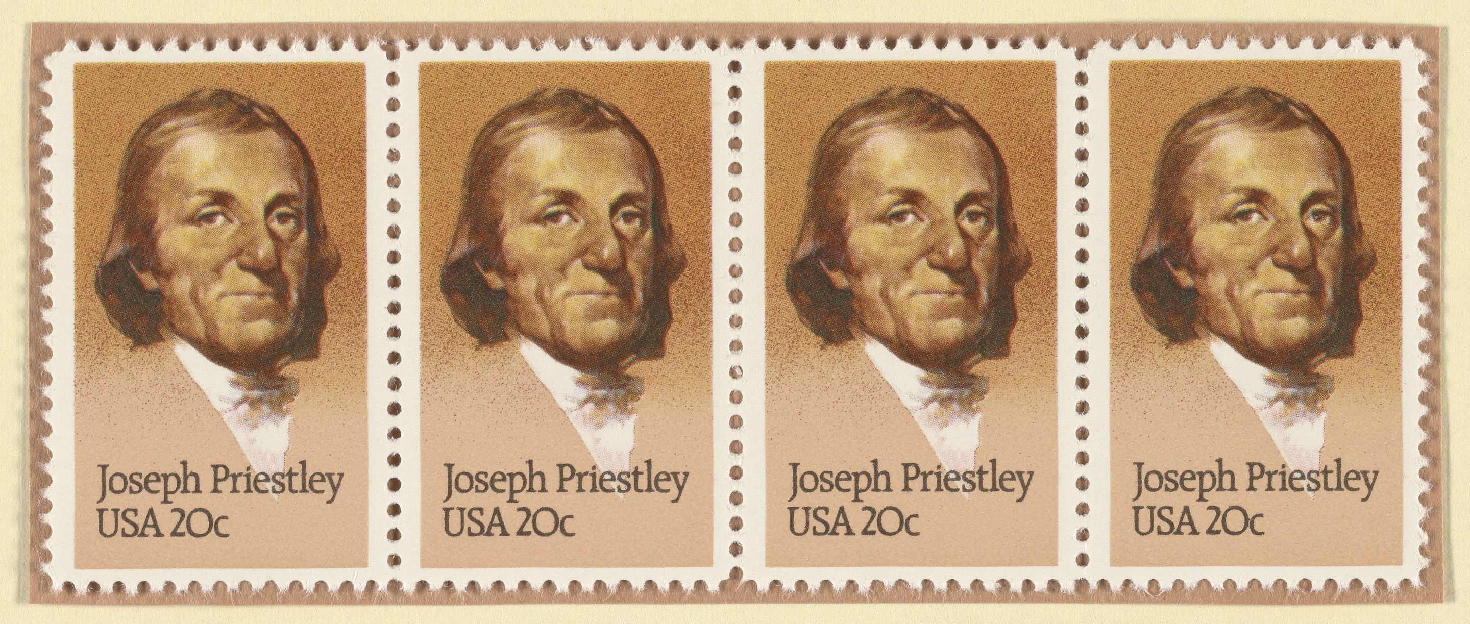 “American Postage Stamps Commemorating Joseph Priestley.” United States, 1983. Witco Stamp Collection, Box 1. Science History Institute. Philadelphia. https://digital.sciencehistory.org/works/qb98mf627.