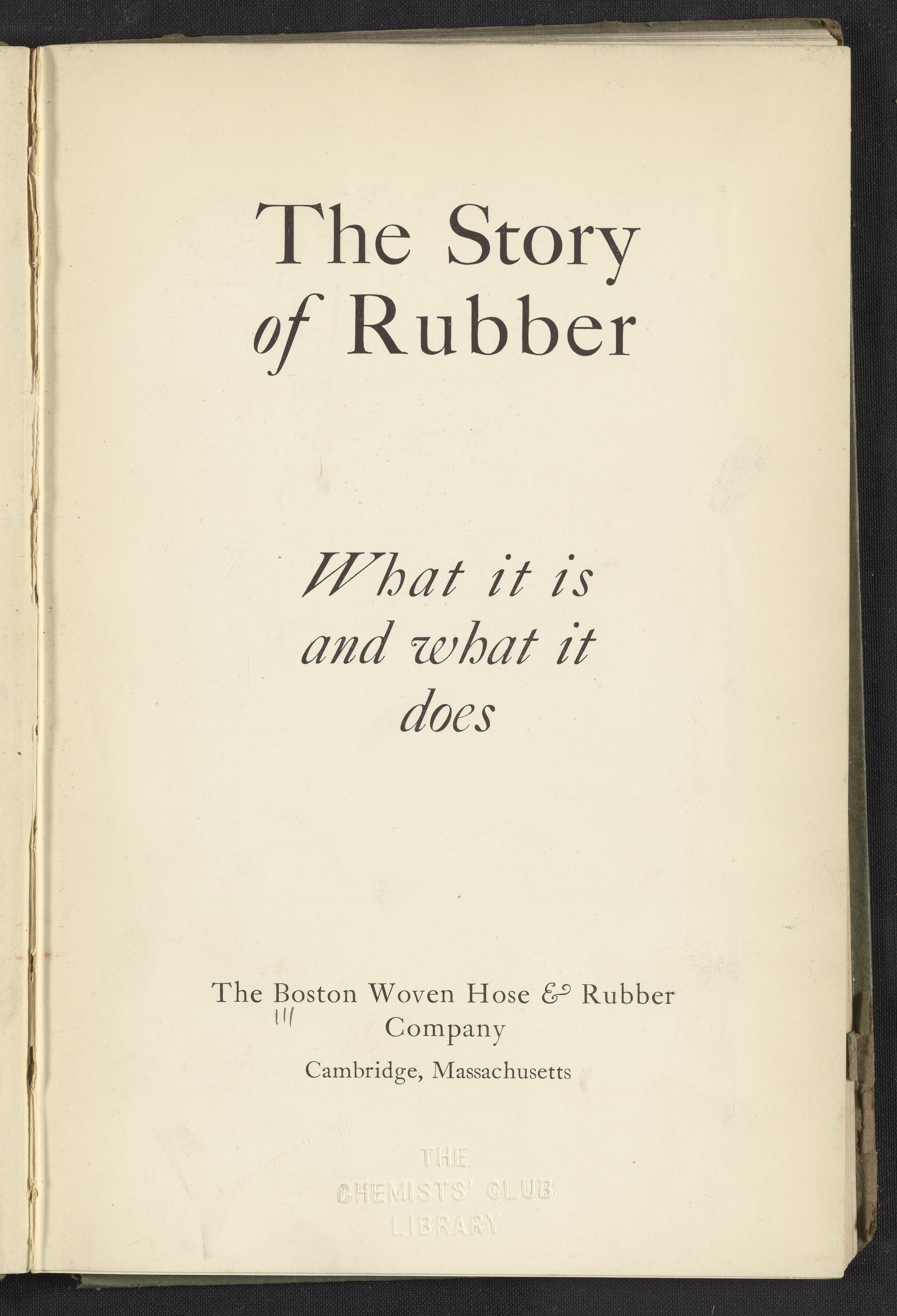 “The Story of Rubber, What It Is and What It Does.” Cambridge, Massachusetts: The Boston woven hose & rubber company, circa 1916. https://digital.sciencehistory.org/works/qb98mg462.
